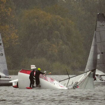 Bei Wind, Wellen und Regen zeigten Dirk & Crew vollen Einsatz – auch eine Kenterung konnte sie nicht stoppen. 💪🌊