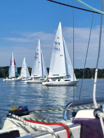 Im schwachen Nordwestwind startete Wettfahrtleiter Erik Vetter zwei Wettfahrten. Obwohl die Bedingungen löcherig waren, waren sie - gemessen an dem, was am Starnberger See oder auf westdeutschen Revieren gesegelt wird - fair.