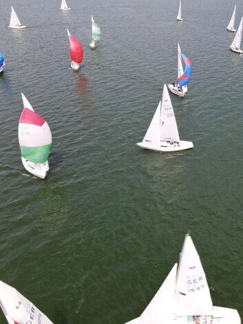 Nach vorzüglichem Grillbuffet am Abend überstanden wir die Nacht gewitterfrei. Am nächsten Tag dann Westwind und die fehlenden drei Wettfahrten konnten gefahren werden.Am Ende siegte die Crew von Dirk Stadler vor dem Düsseldorfer Boot mit Knut Viehweger an der Pinne. Den dritten Platz sicherte sich, mit einer starken Leistung, Tim Claussens Schiff vom Bodensee.