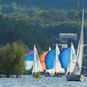 Letztes Wochenende war am Rursee Klenkes Weekend. 10 Schiffe gingen an den Start und konnten drei Rennen fahren.