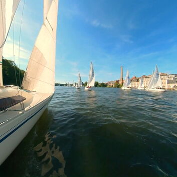 Video vom H-Boot Finale 2023 am Ammersee aufgenommen mit einer 360 Grad Kamera der Klassenvereinigung.