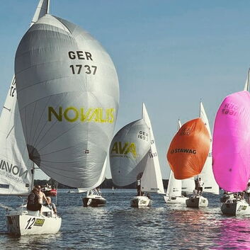 Der Tag der Entscheidung! Zunächst sah es wenig vielversprechend auf dem #müggelsee aus. Die Boote warteten in der Flaute. Dann gab es doch noch drei Rennen. Die Mannschaft der Playmate mit Sven Taube, Felix Krabbe und Markus Keding kam mit den Bedingungen am Besten zurecht und sicherte sich seine sechste (6!) deutsche Meisterschaft.