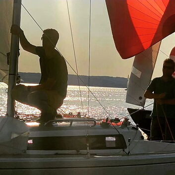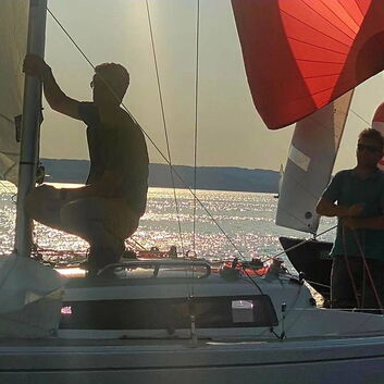 Bei herrlichen Wetter abends noch ein paar Runden segeln.