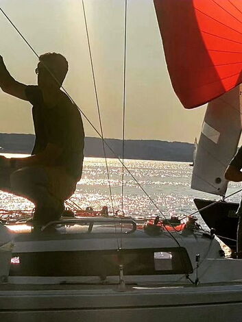 Bei herrlichen Wetter abends noch ein paar Runden segeln.