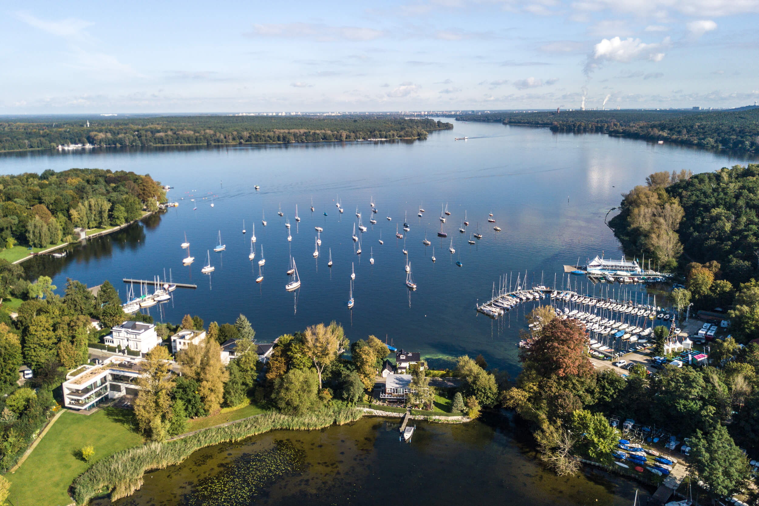 So hatte ich mit einigen anderen Teilnehmern am Dienstag Gelegenheit, mit „Bommeline“, der Frau unseres Mitgliedes Bernd „Bommel“ Zimmermann, auf deren Motorboot die schöne Seenlandschaft von Berlin ausgiebig zu erkunden. An den späteren Wettfahrttagen hat sie sich als Zuschauerboot zur Verfügung gestellt.