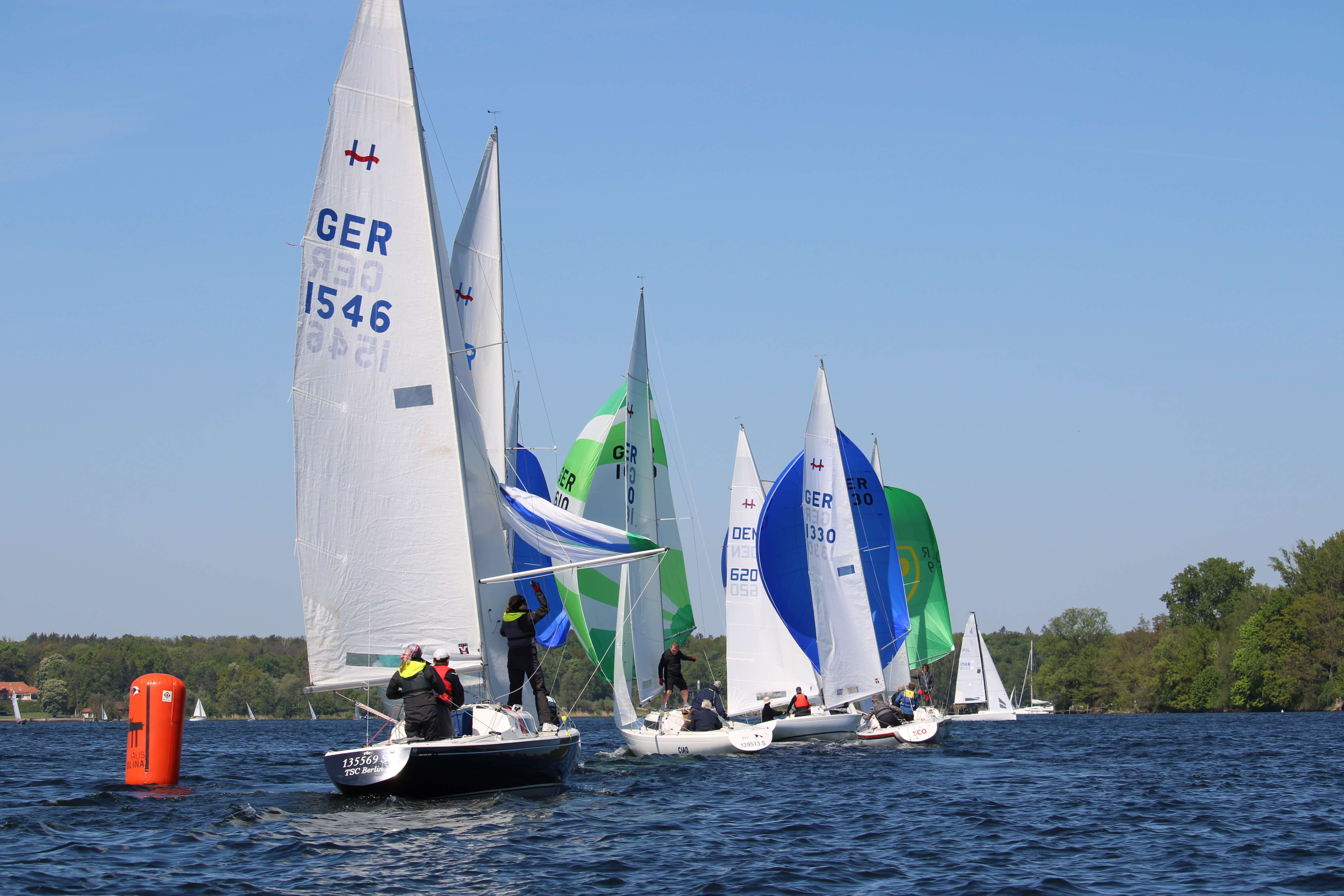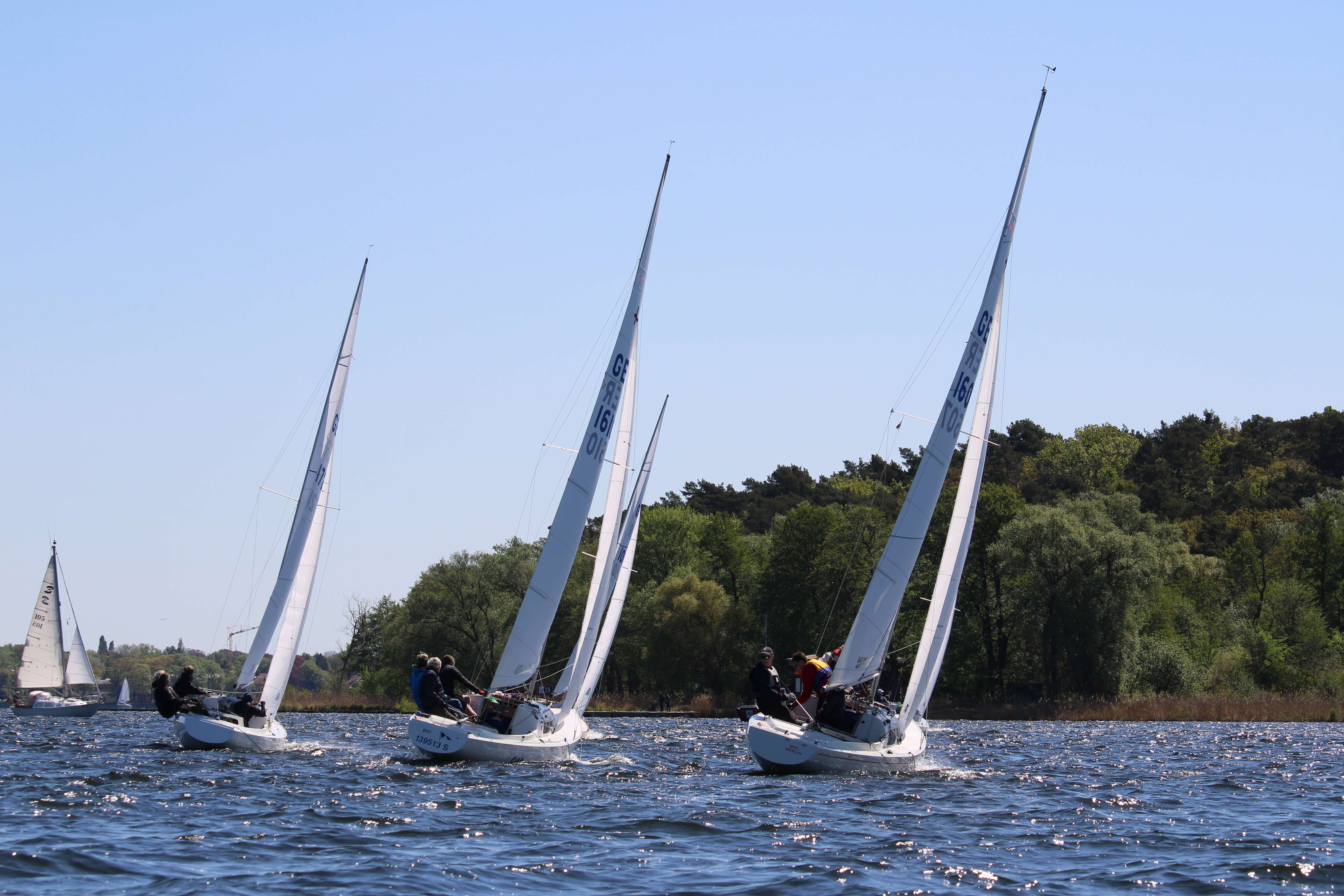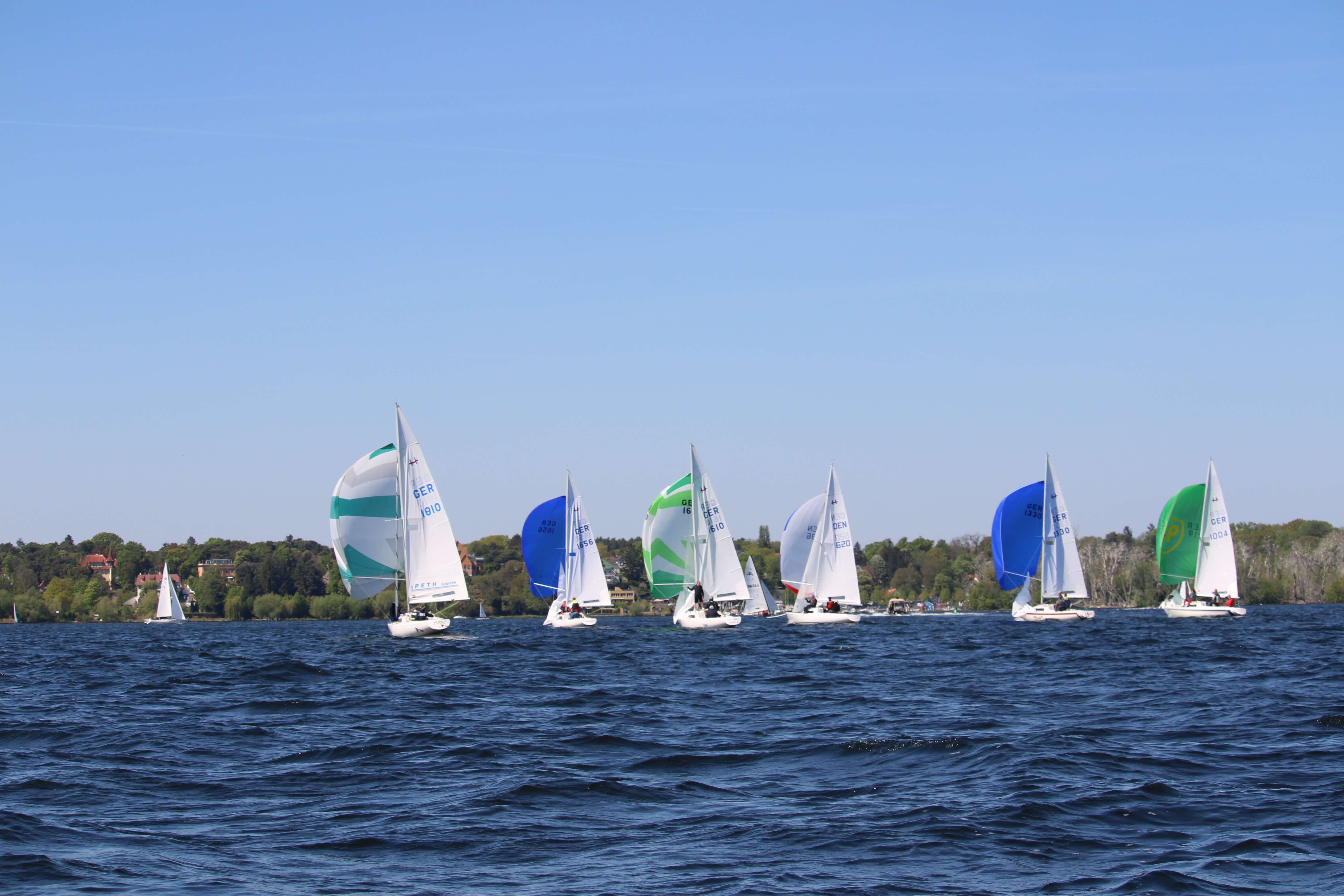 Bei sonnigem Frühlingswetter, aber teils launischen Windverhältnissen aus Nord-Ost bis Süd-Ost, gingen am letzten April-Wochenende 60 Crews aus drei Klassen, darunter 16 H-Boote, bei den Frühlingswettfahrten des Berliner Yacht Clubs auf dem Wannsee an den Start. Mit teilweise zapfigen Temperaturen machte der drehende und böige Wind den Crews zeitweise das Leben schwer – es gab ausgiebige Gurtsequenzen, aber auch ausreichende Leesitzphasen zum Ausruhen. So konnten sechs spannende Rennen mit jeweils etwa einer Stunde Segelzeit beendet werden.