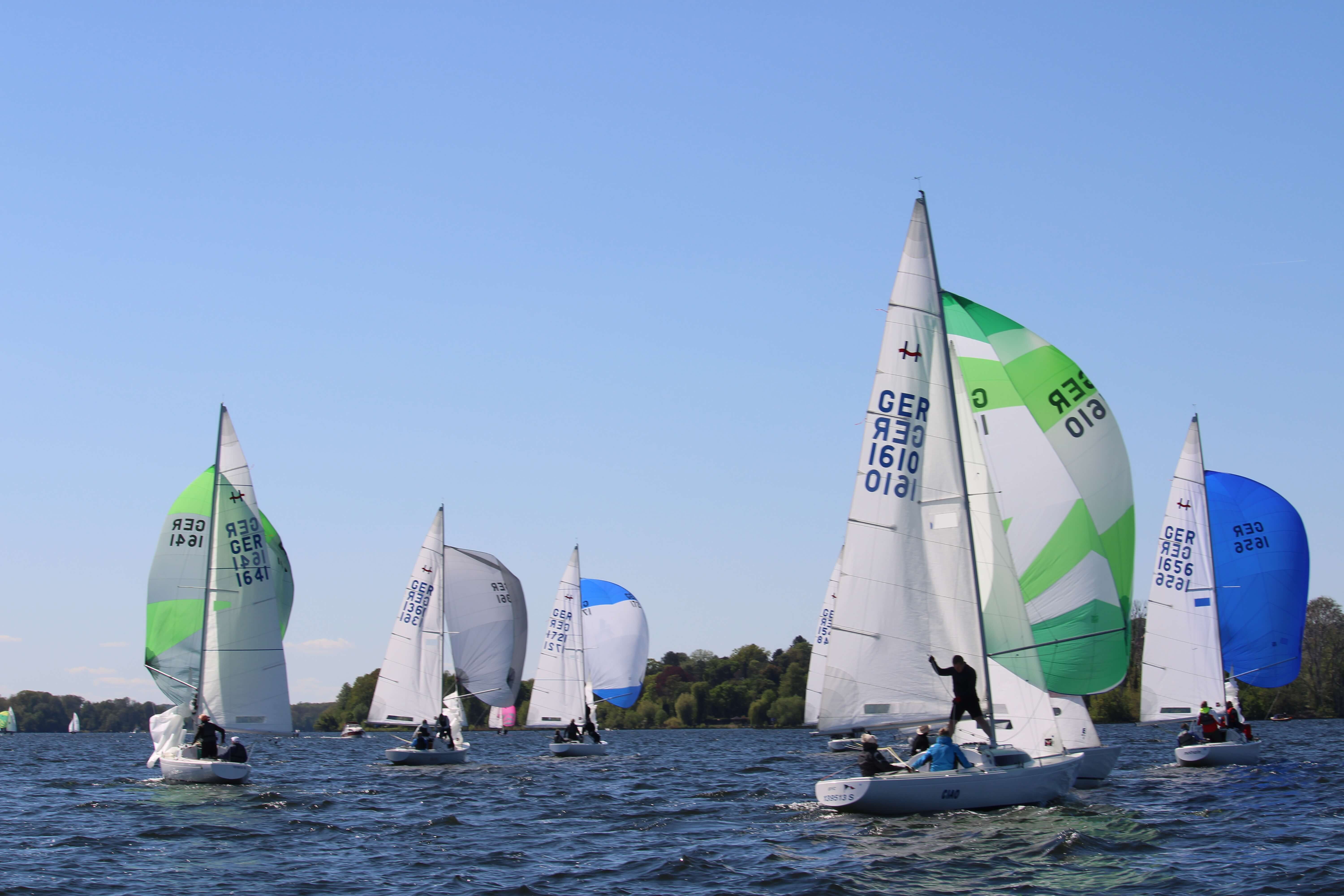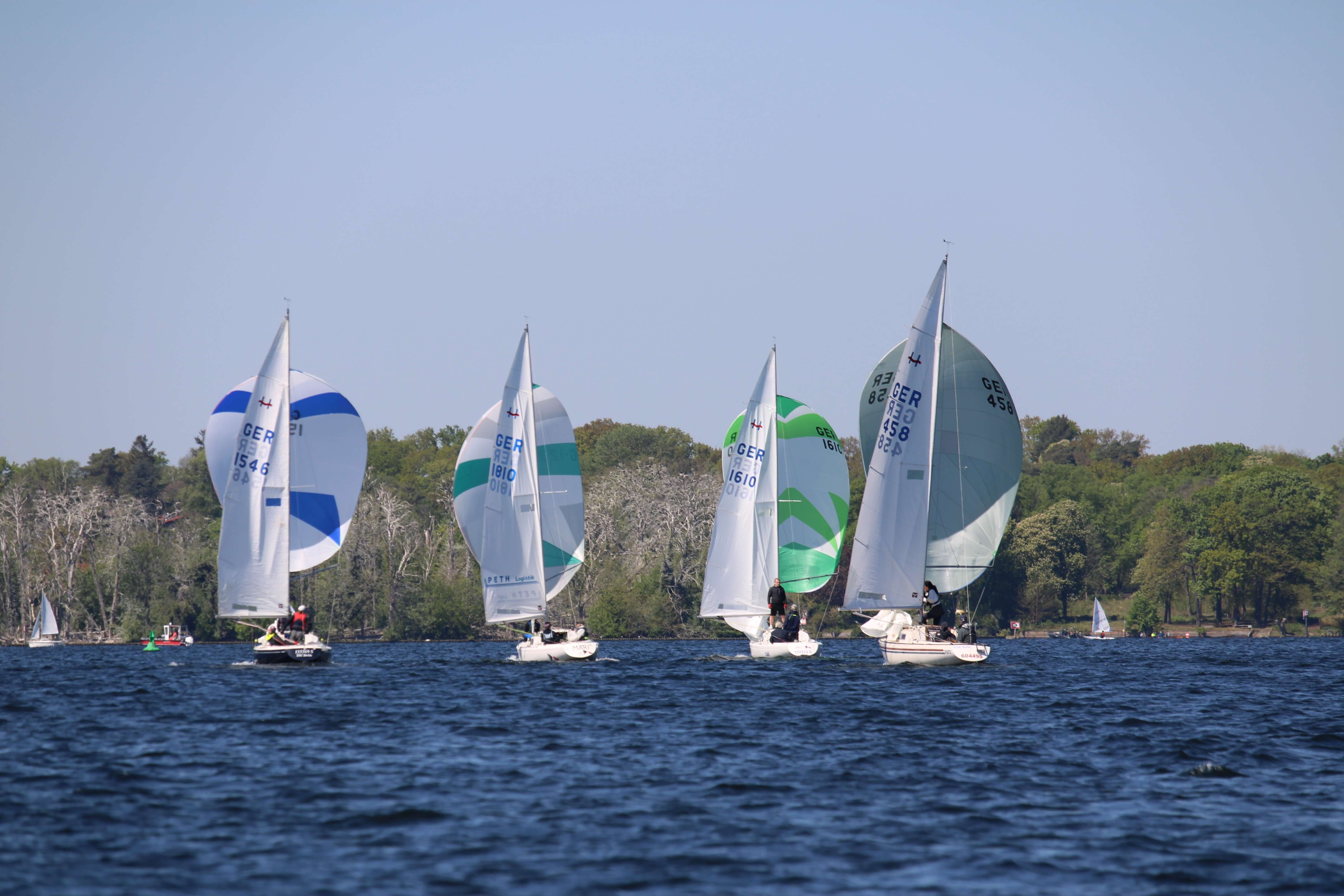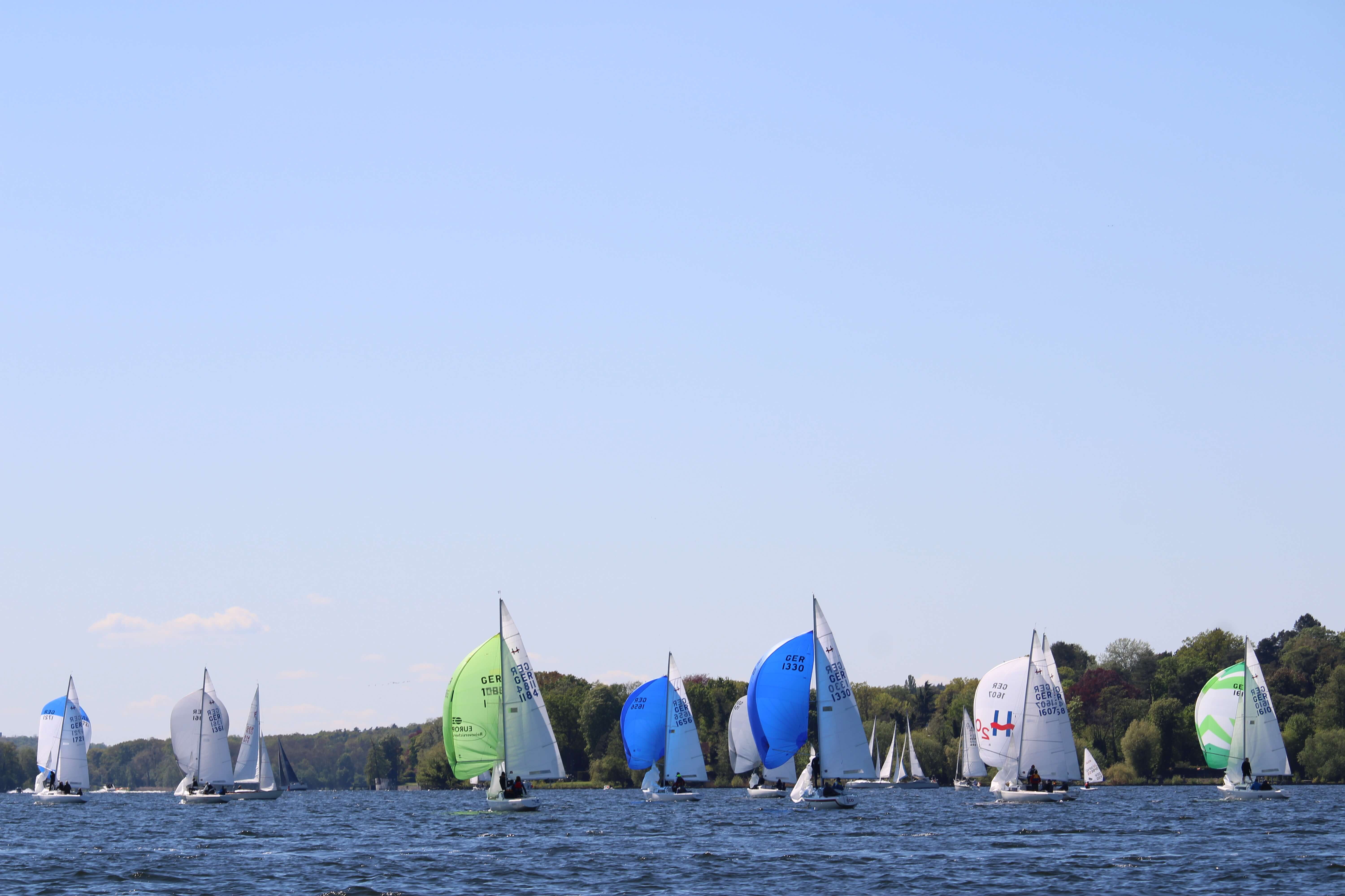 Bei sonnigem Frühlingswetter, aber teils launischen Windverhältnissen aus Nord-Ost bis Süd-Ost, gingen am letzten April-Wochenende 60 Crews aus drei Klassen, darunter 16 H-Boote, bei den Frühlingswettfahrten des Berliner Yacht Clubs auf dem Wannsee an den Start. Mit teilweise zapfigen Temperaturen machte der drehende und böige Wind den Crews zeitweise das Leben schwer – es gab ausgiebige Gurtsequenzen, aber auch ausreichende Leesitzphasen zum Ausruhen. So konnten sechs spannende Rennen mit jeweils etwa einer Stunde Segelzeit beendet werden.