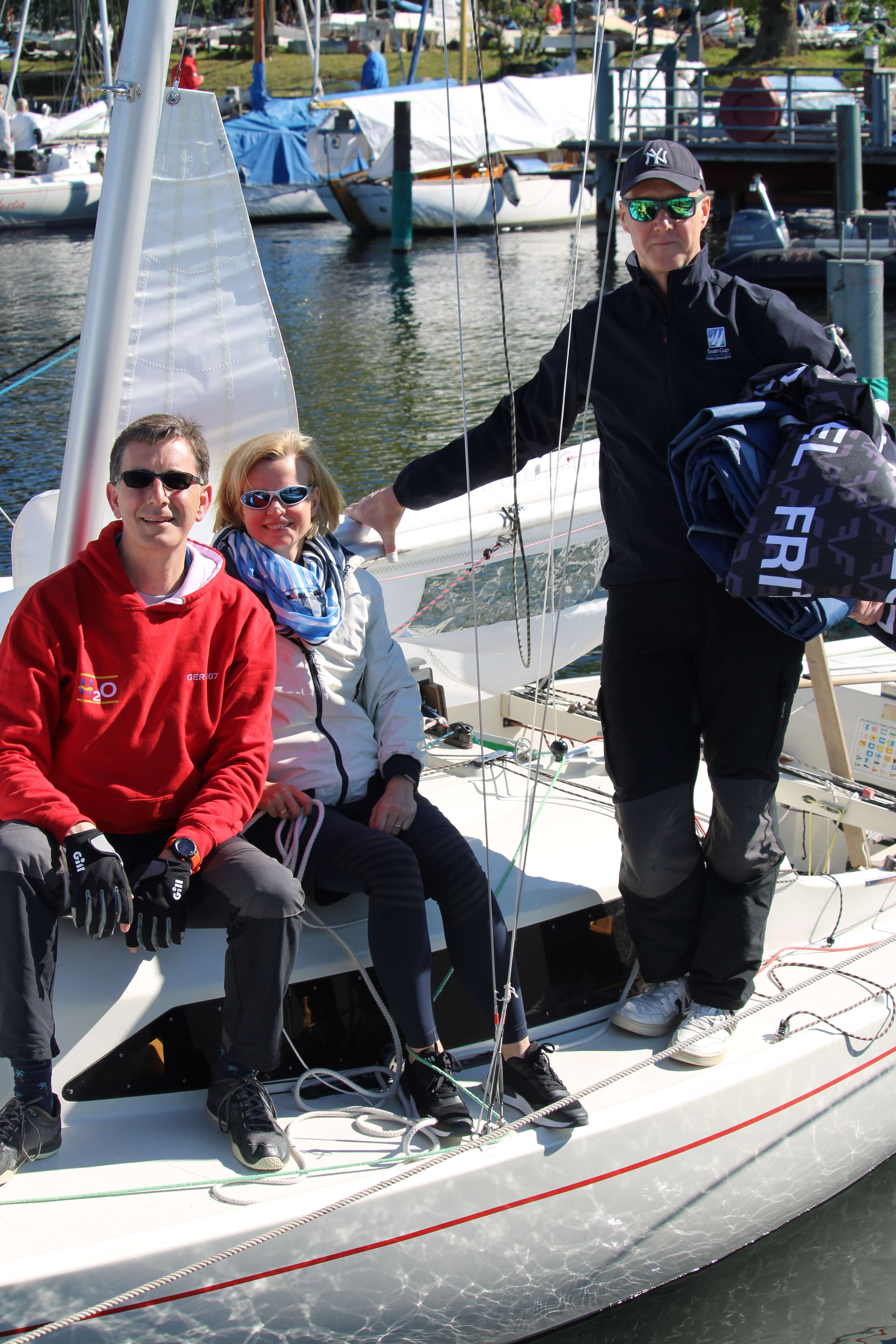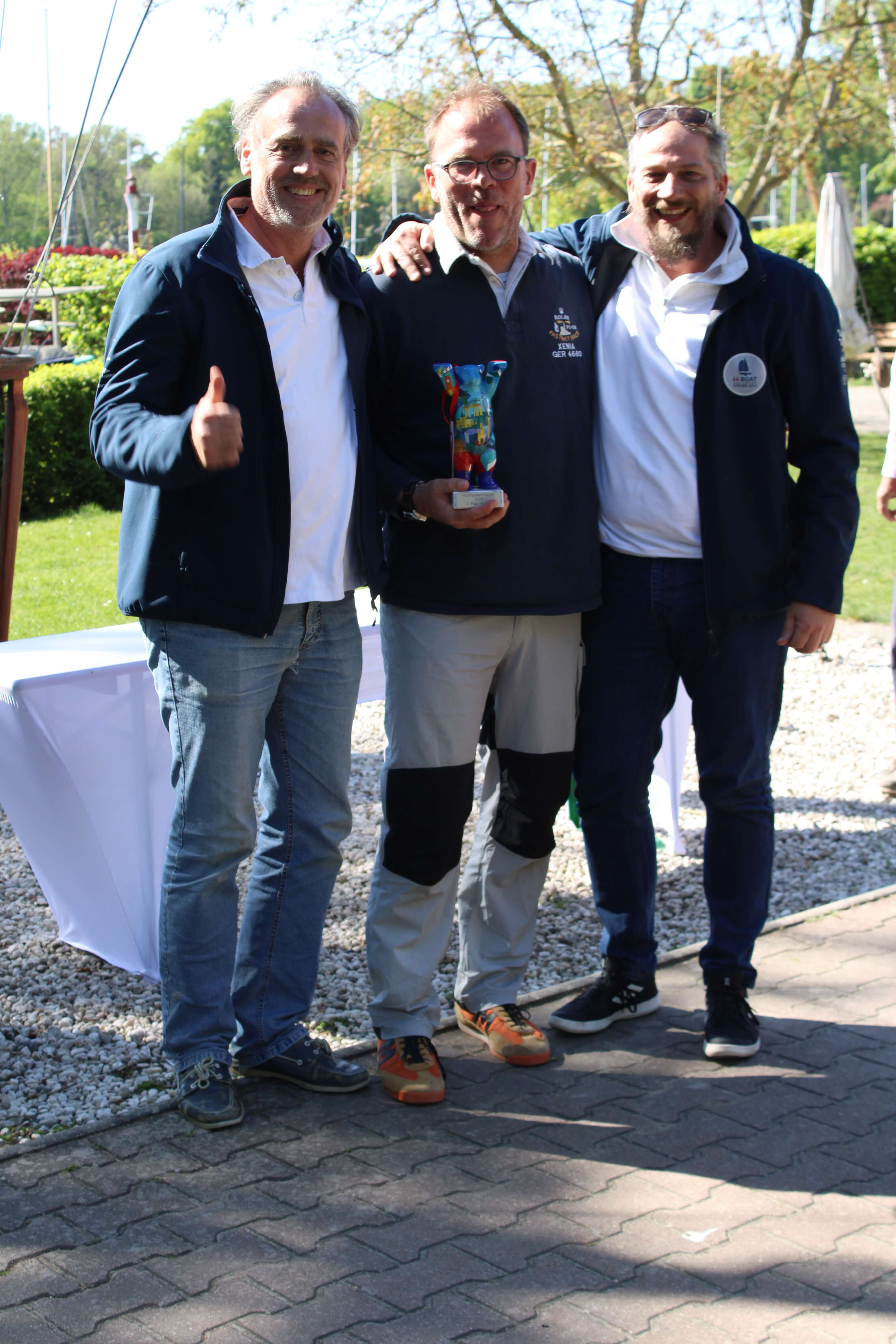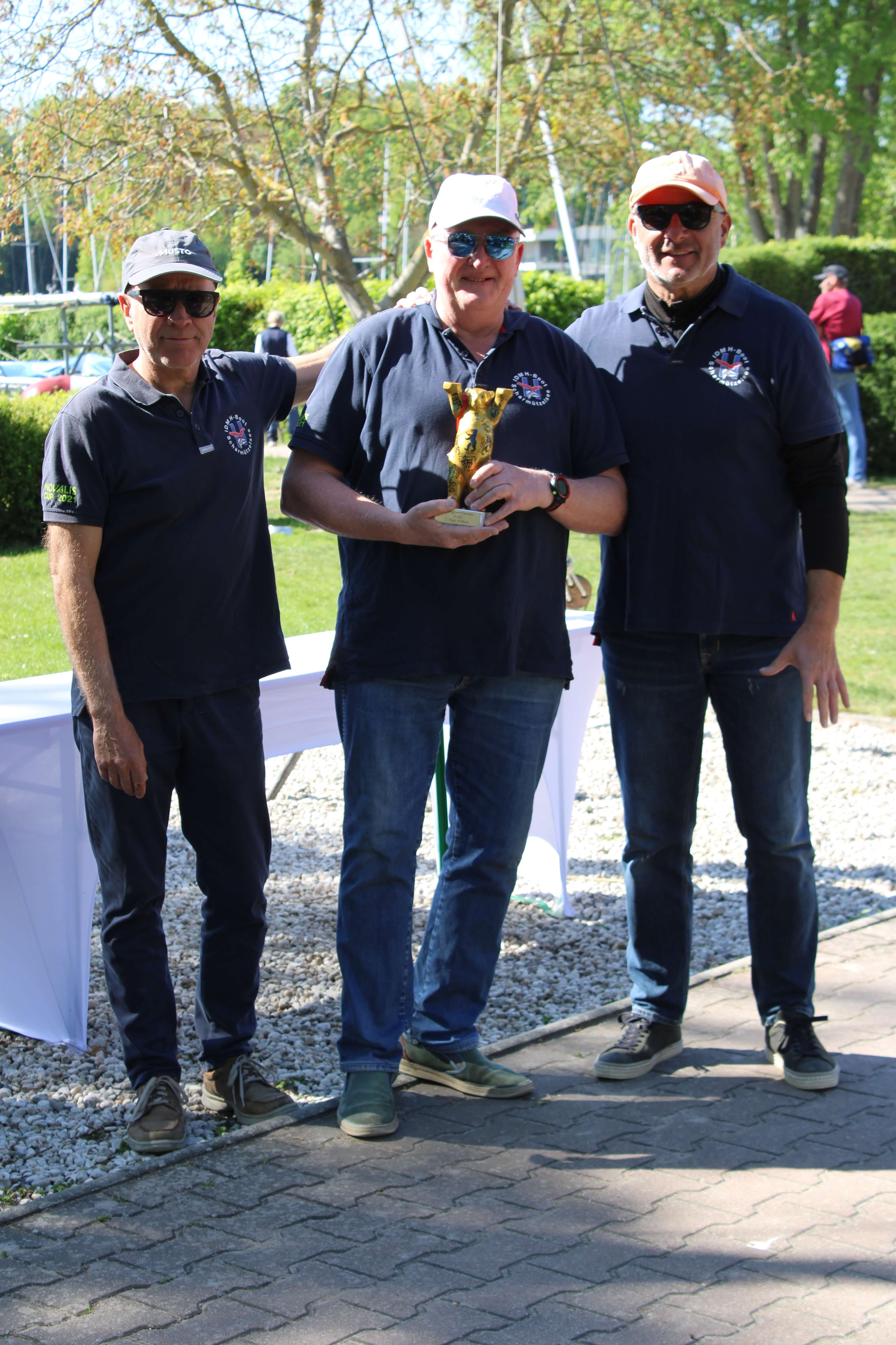 Klarer Sieger wurde das Team Thilo Beuster, Wolfgang Karg und Frank Weinert auf „Günter Kastenfrosch“, das sich mit konstant starken Leistungen (u.a. drei erste Plätze) an die Spitze setzen konnte und nur sieben Punkte aus sechs Wettfahrten benötigte. Egal, wie sie am Start auch abschnitten, kurz drauf haben sie vorne schon wieder den Ton angegeben. Ebenfalls überzeugend war „Amigo “mit Holger Köhne, Sven Ulrich und Nils Noack, der mit zehn Punkten Platz zwei belegte. Thomas Kausen, Jani Funk, Franzi Funk und Jessica Schröder durften das Podium komplettieren. So konnte sich Jessi den ersehnten Bären für Platz drei sichern.