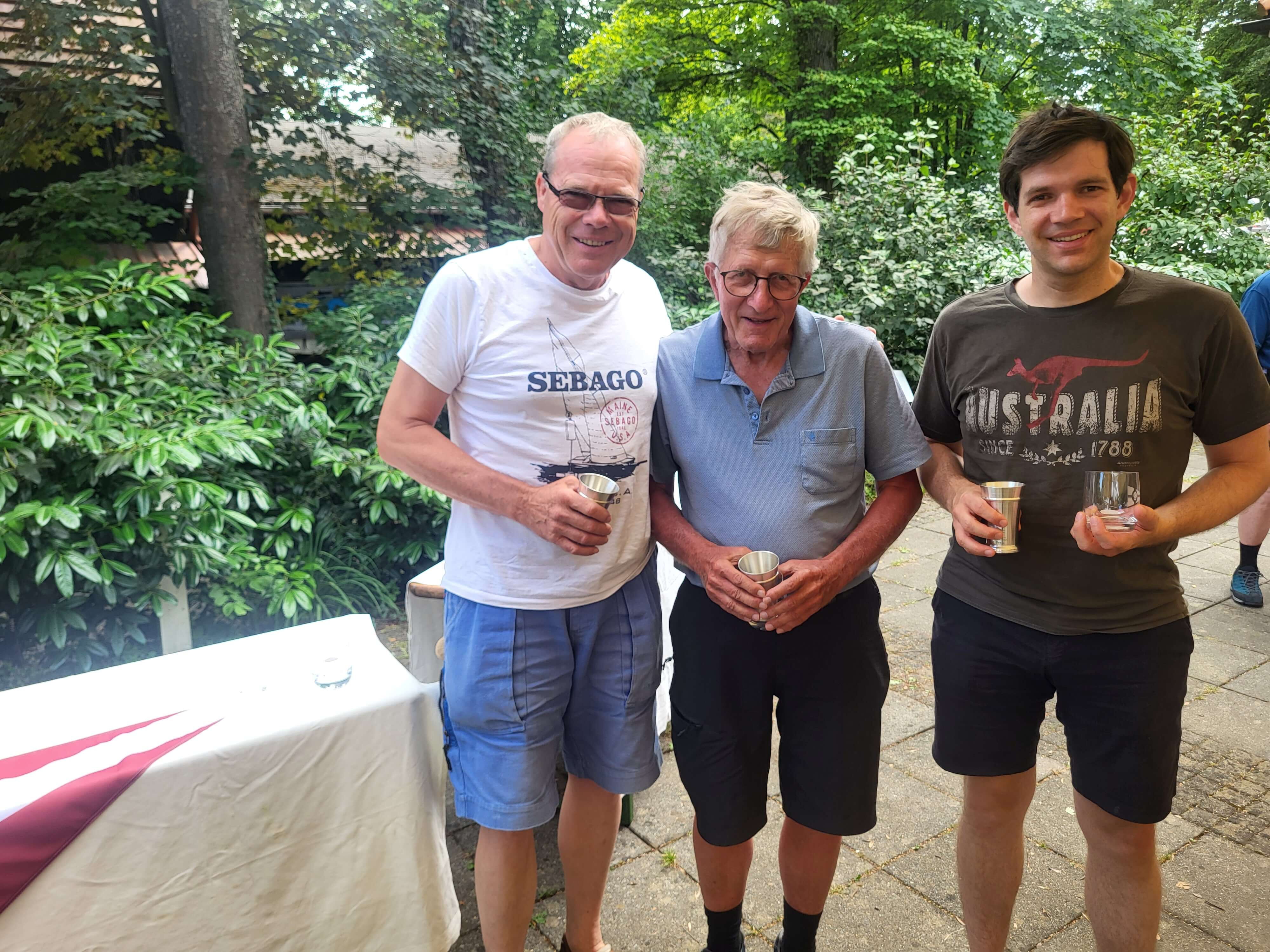 Bei der Steuerleutebesprechung wies Wettfahrtleiter Schorsch Haindl kurz in den Kurs ein. Anschließend gab es eine gute Botschaft für die Ammersee-H-Boat-Family.