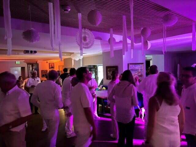 Neben dem sportlichen Wettstreit gab es am Samstagabend die legendäre H-Boote Party. Unter dem Motto „White Night“ wurde gefeiert, was das Zeug hält. Der MYC-Wirt Ante und sein Team verwöhnten die Seglerinnen und Segler mit Freibier und einem köstlichen Grillbuffet, das für große Begeisterung sorgte. Trotz der kalten Temperaturen brachte ein DJ die Stimmung zum Kochen und die Tanzfläche füllte sich schnell. Die Party dauerte bis in die Morgenstunden.