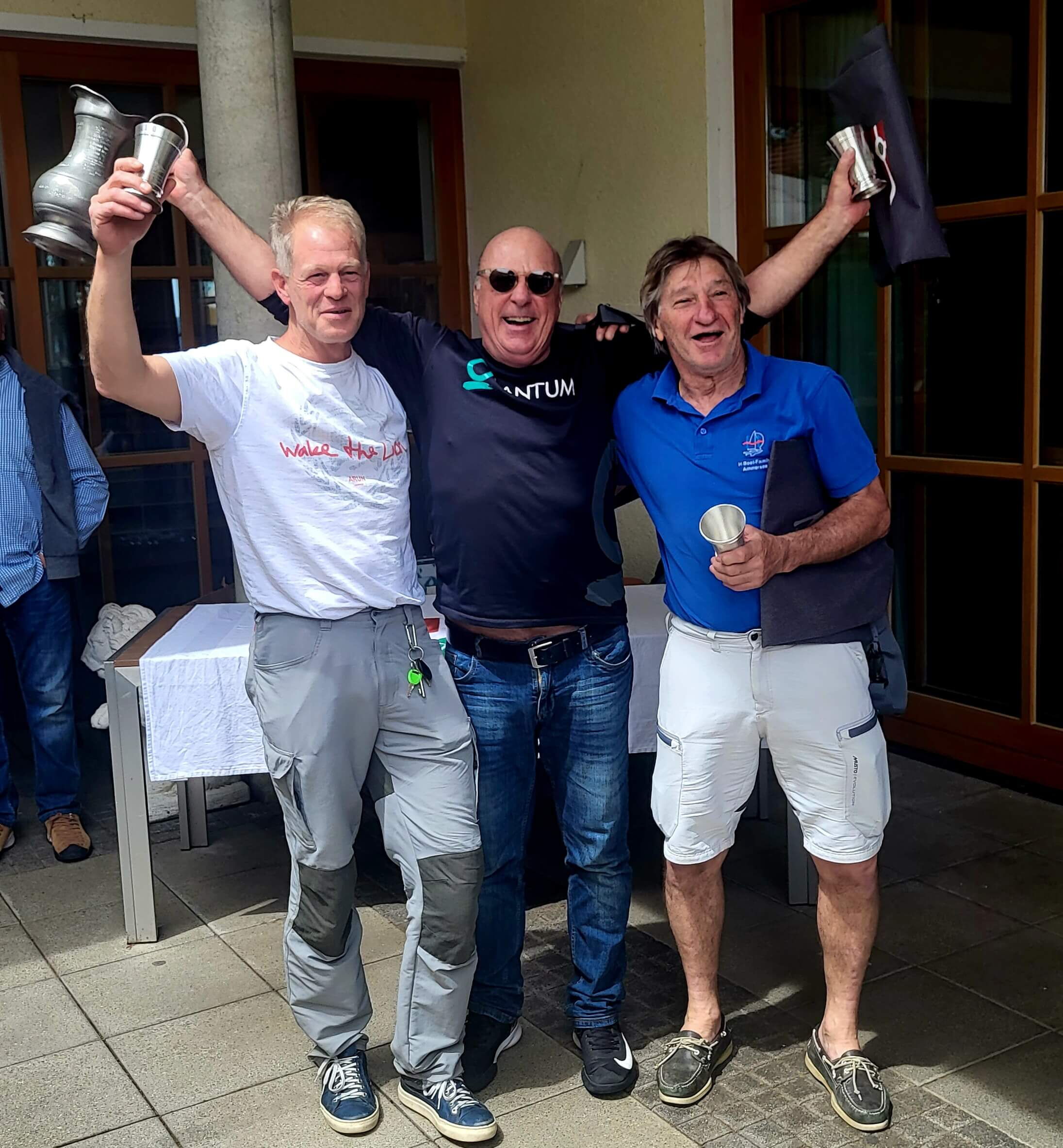 Niki Franke an der Pinne der GER 1531 segelte 2 x auf die 1 und 1 x auf die 2 – und Jörg Bleiholder am Steuer der GER 1695 tat’s ihm gleich und hatte (auch bei 1 Streicher) ebenfalls die Plätze 1, 1 und 2 für sich erreicht – aber dann zählt das letzte Race, und in diesem war Niki ganz vorn, und er sicherte sich mit seiner Mannschaft den 1. Platz vor Jörg und konnte so auch den Gesamtsieg erringen:
