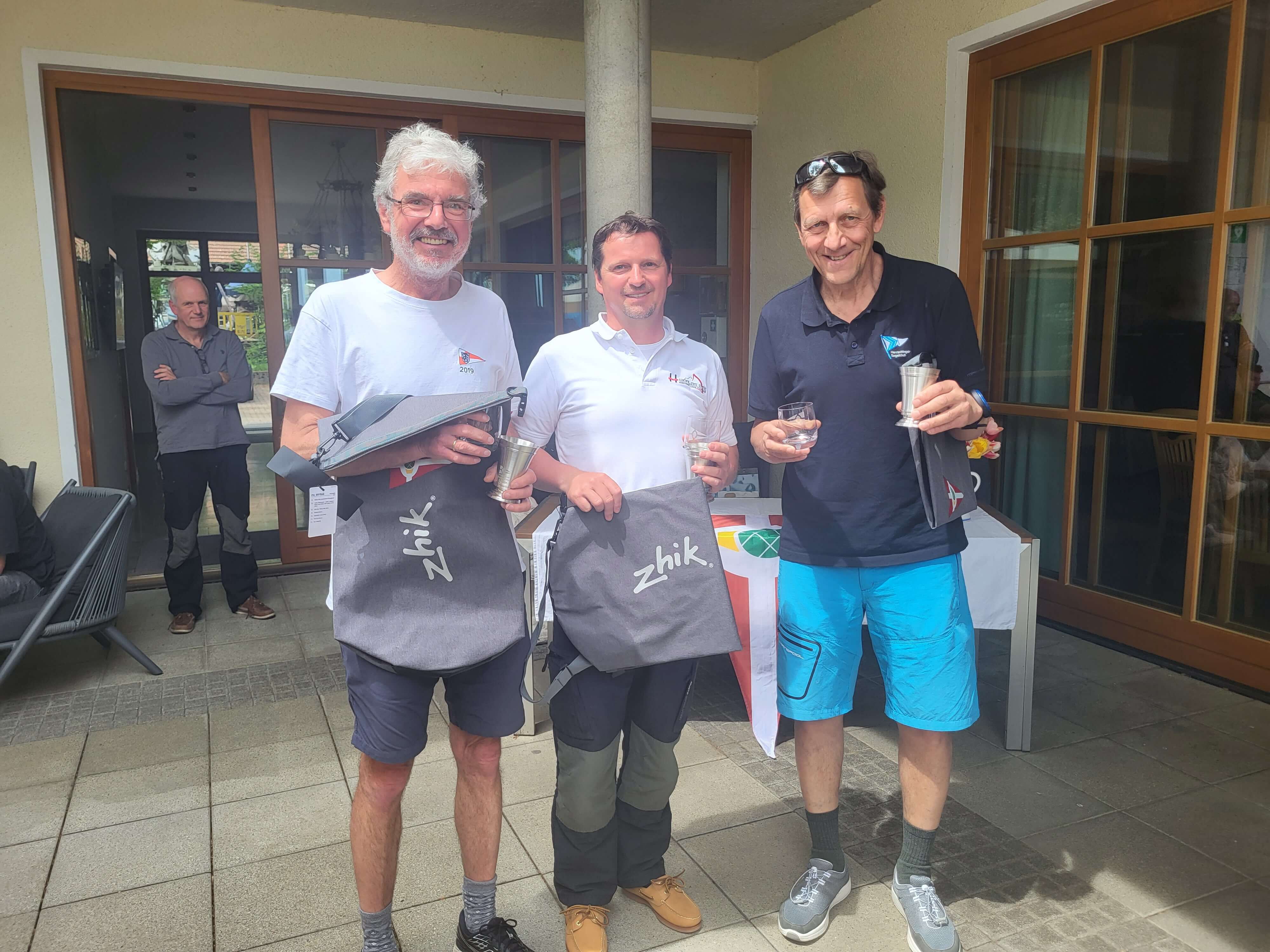 Auch dieser dritte Platz war für Altmeister Peter Teschemacher nicht so leicht zu erreichen, denn ihn verfolgte Friedl Gehrke auf GER 1331 mit Jens Pokorny und Alex Beck an den Schoten, und erreichte ebenfalls 11 Gesamtpunkte, aber aufgrund der einmal besseren Platzierung 2 der Mannschaft der GER 1717 musste dieser auch der Vortritt auf das Podest gelassen werden.