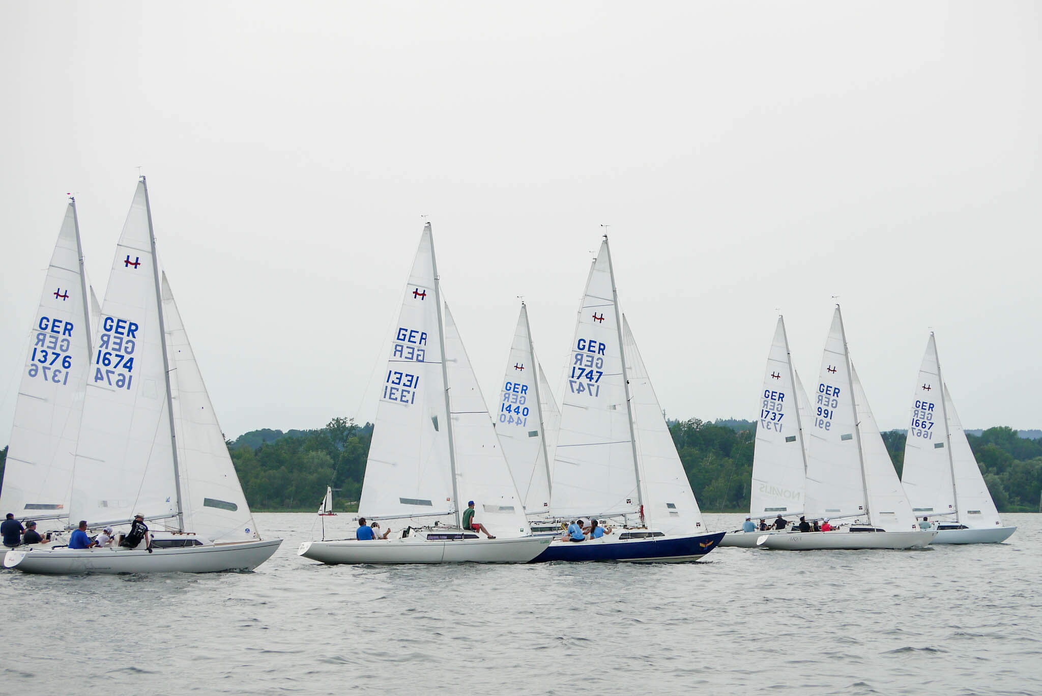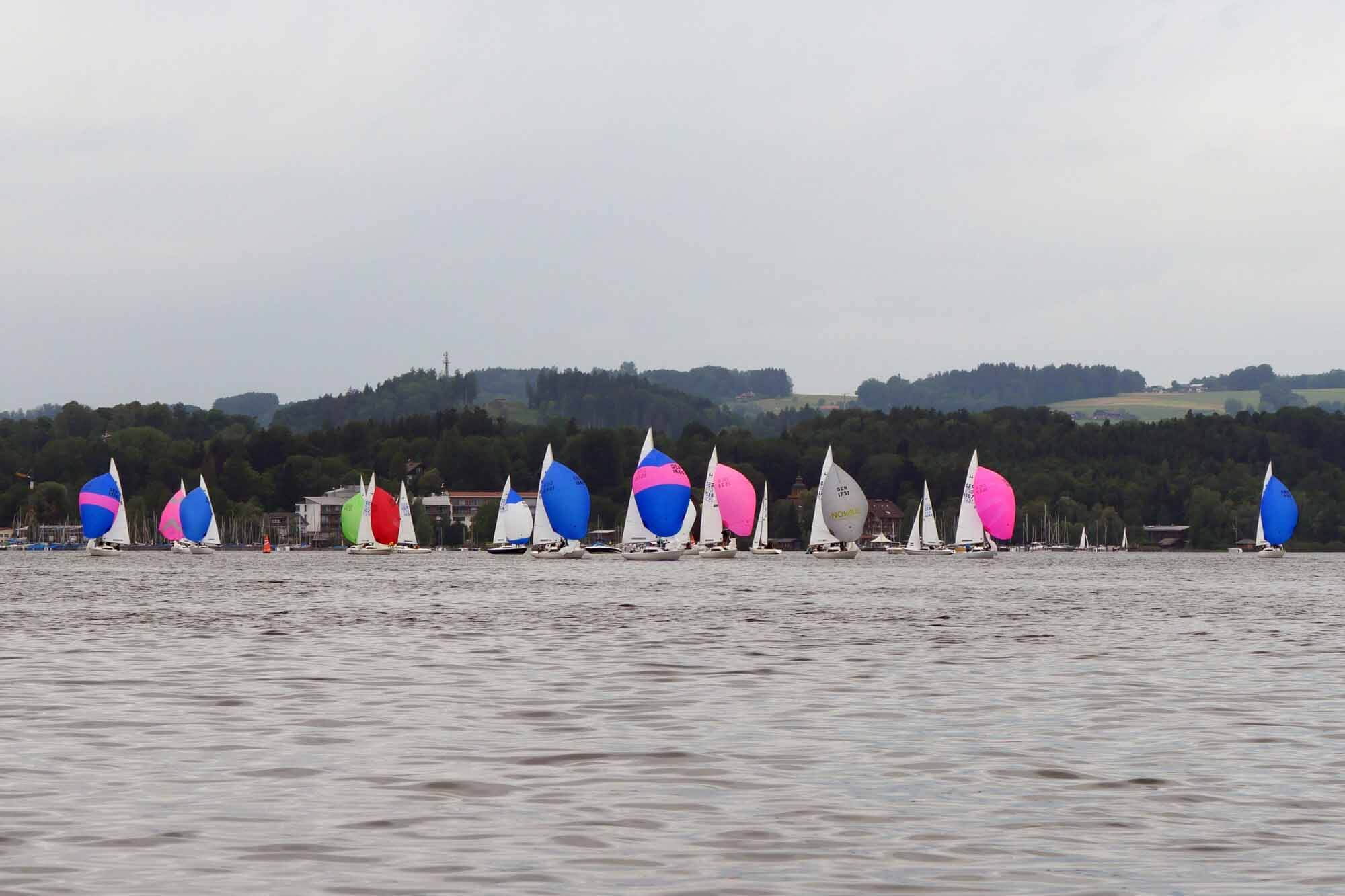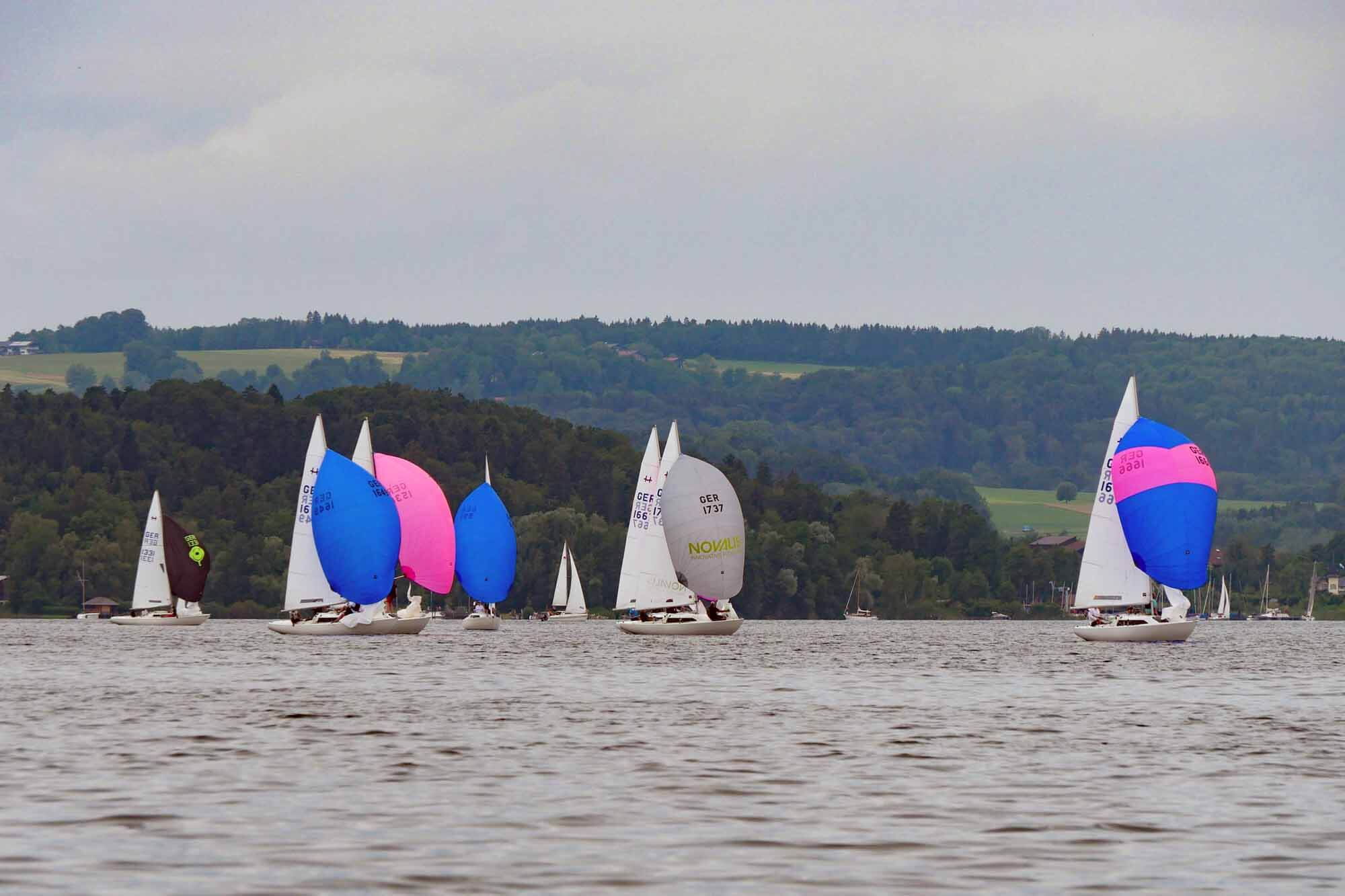 Nach vorzüglichem Grillbuffet am Abend überstanden wir die Nacht gewitterfrei. Am nächsten Tag dann Westwind und die fehlenden drei Wettfahrten konnten gefahren werden. Am Ende siegte die Crew von Dirk Stadler vor dem Düsseldorfer Boot mit Knut Viehweger an der Pinne. Den dritten Platz sicherte sich, mit einer starken Leistung, Tim Claussens Schiff vom Bodensee.