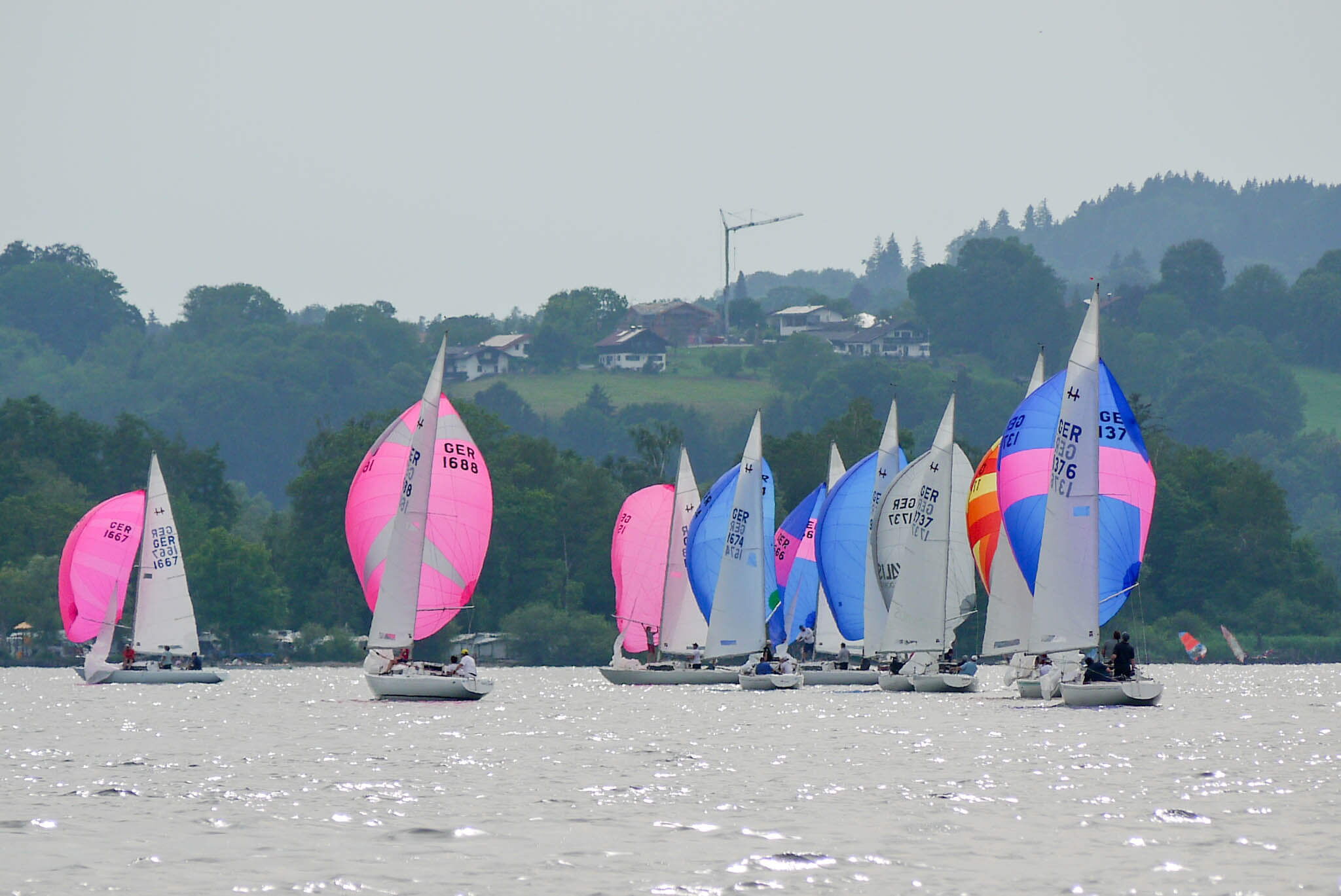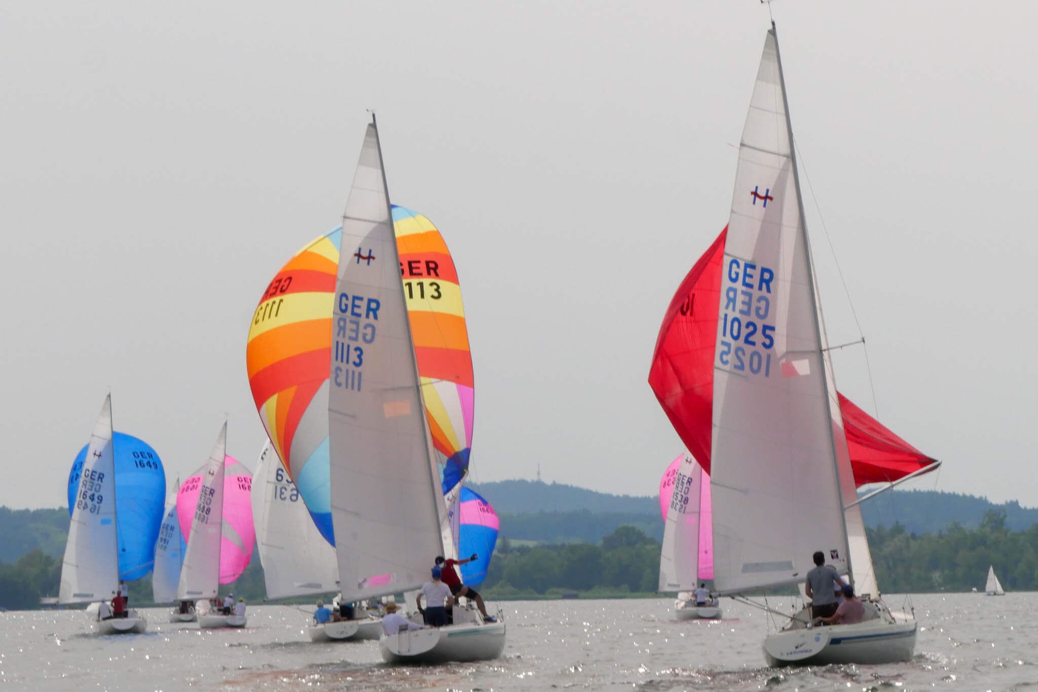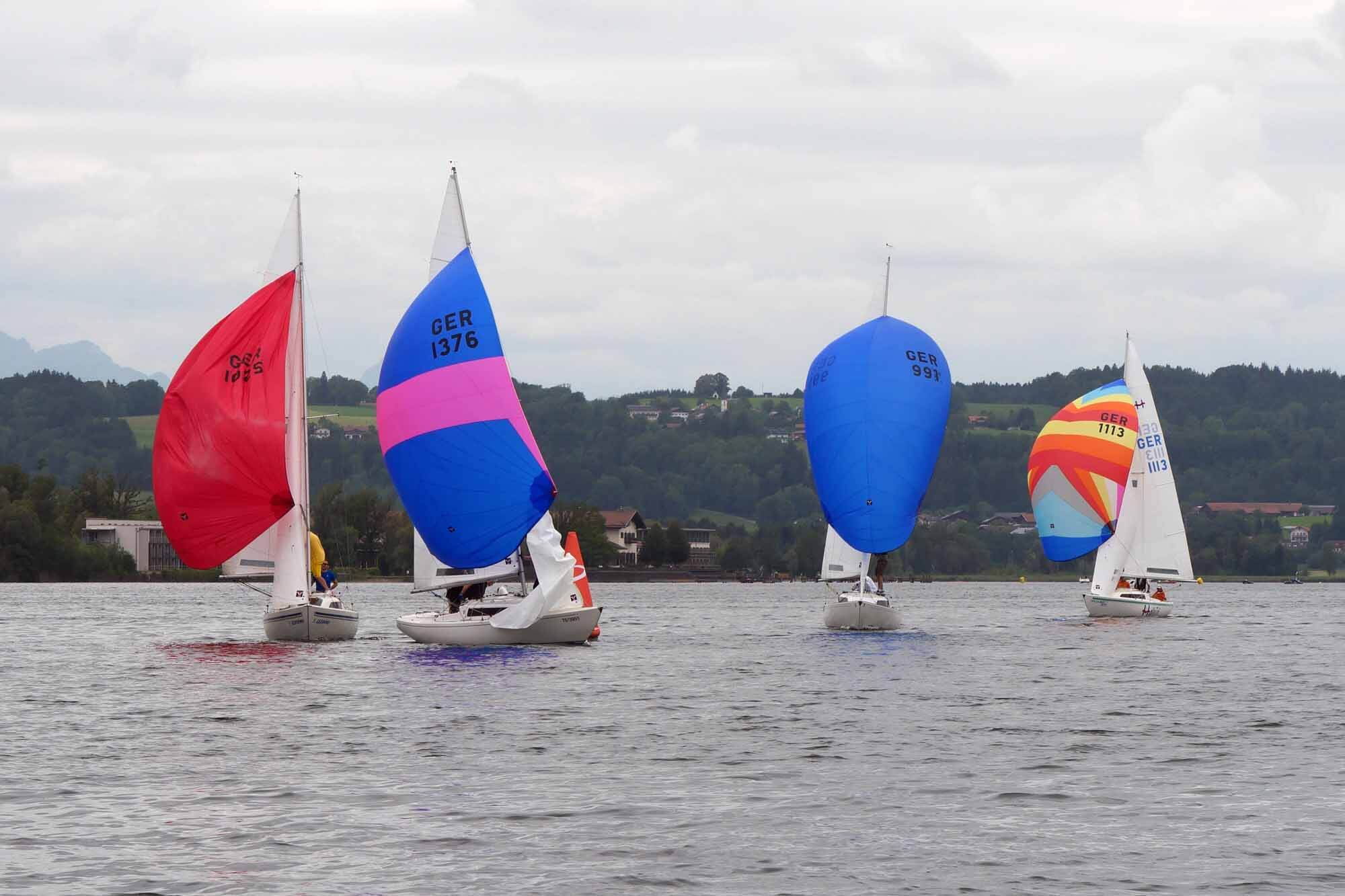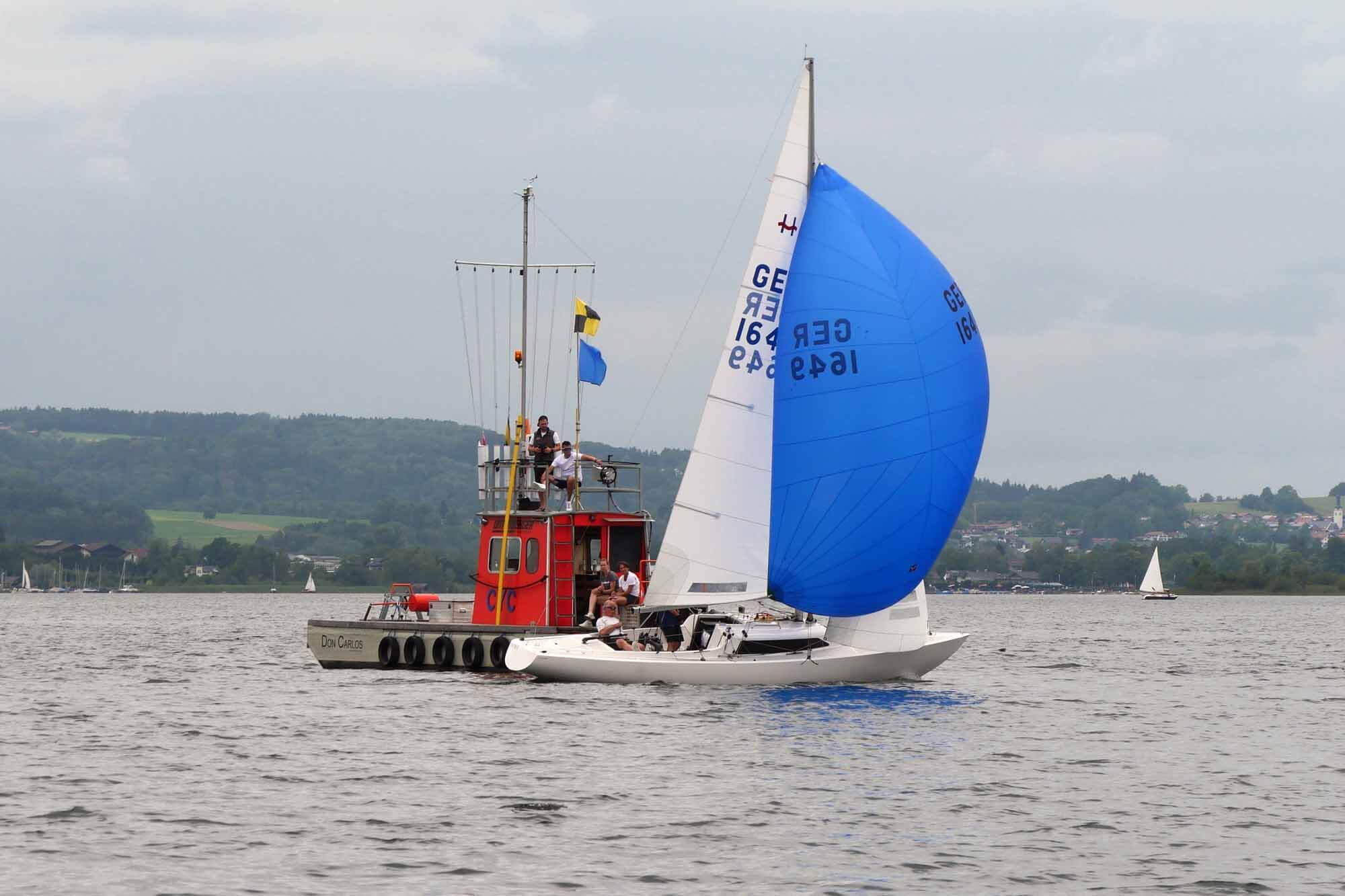 Nach vorzüglichem Grillbuffet am Abend überstanden wir die Nacht gewitterfrei. Am nächsten Tag dann Westwind und die fehlenden drei Wettfahrten konnten gefahren werden. Am Ende siegte die Crew von Dirk Stadler vor dem Düsseldorfer Boot mit Knut Viehweger an der Pinne. Den dritten Platz sicherte sich, mit einer starken Leistung, Tim Claussens Schiff vom Bodensee.