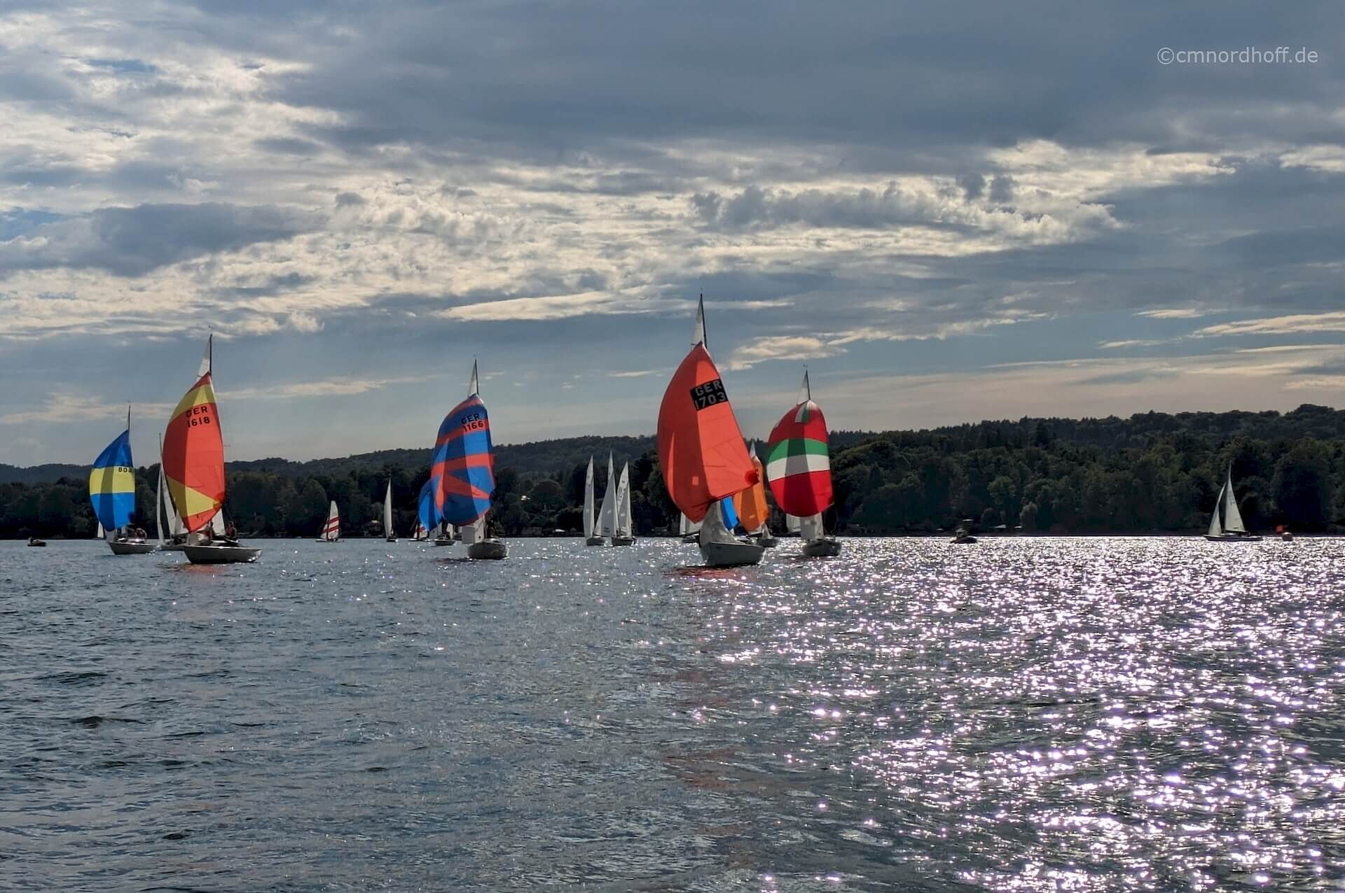 Es gab wenig Wind beim Elfi-Pokal am Bayerischen Yachtclub und somit musste gewartet werden. Am Samstagnachmittag ließ Wettfahrtleiter Nils Sternbeck die 37 Schiffe auslaufen und konnte die einzige Stunde des Wochenendes mit Wind für eine reguläre Wettfahrt nutzen. Diese gewann die Crew um Basti Henning, der den erkrankten Fips Ullherr an der Pinne vertrat. Am Sonntag gab es keinen segelbaren Wind mehr. Als beste Dame im Feld erhielt Louisa Erhard eine hochwertige Uhr überreicht.