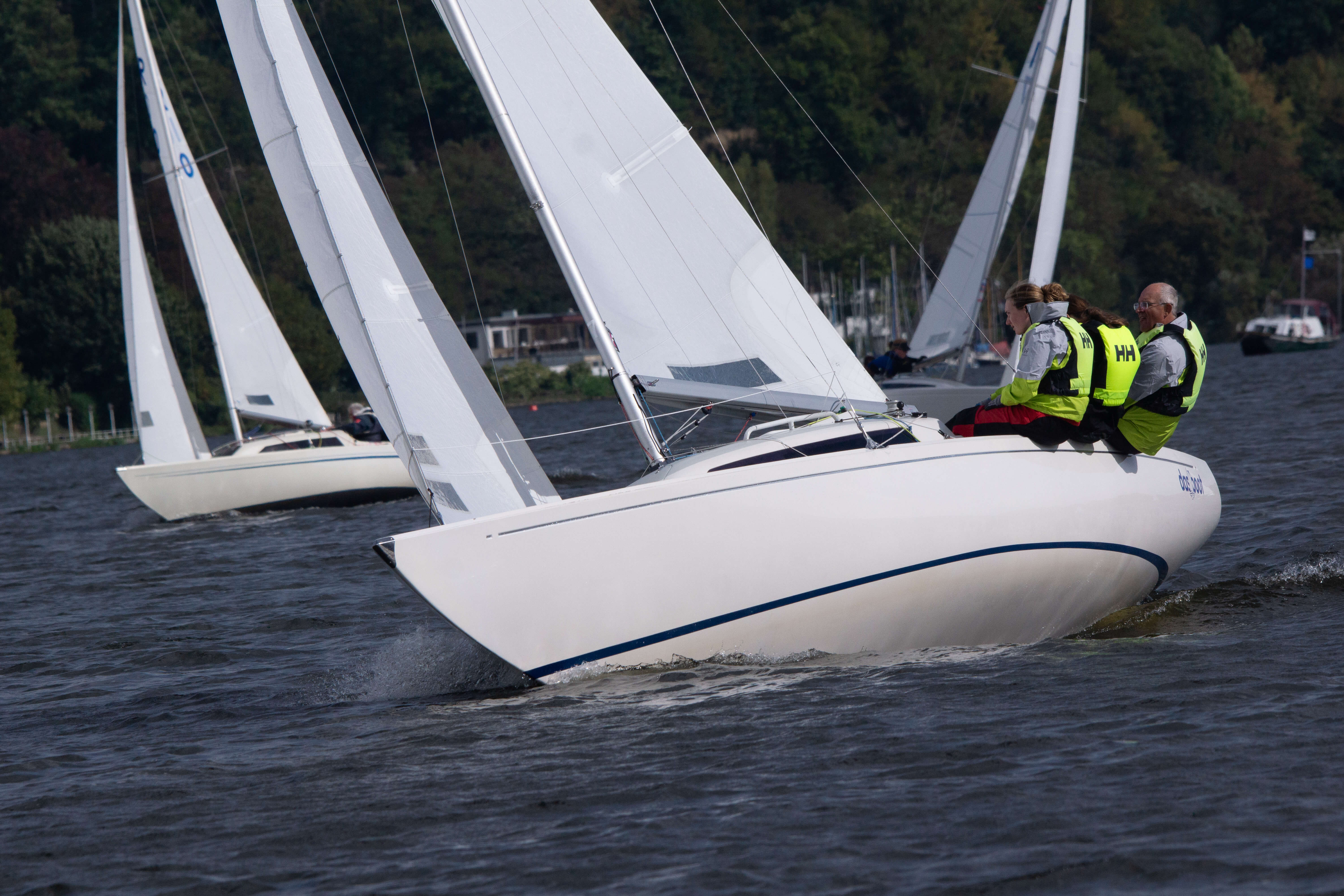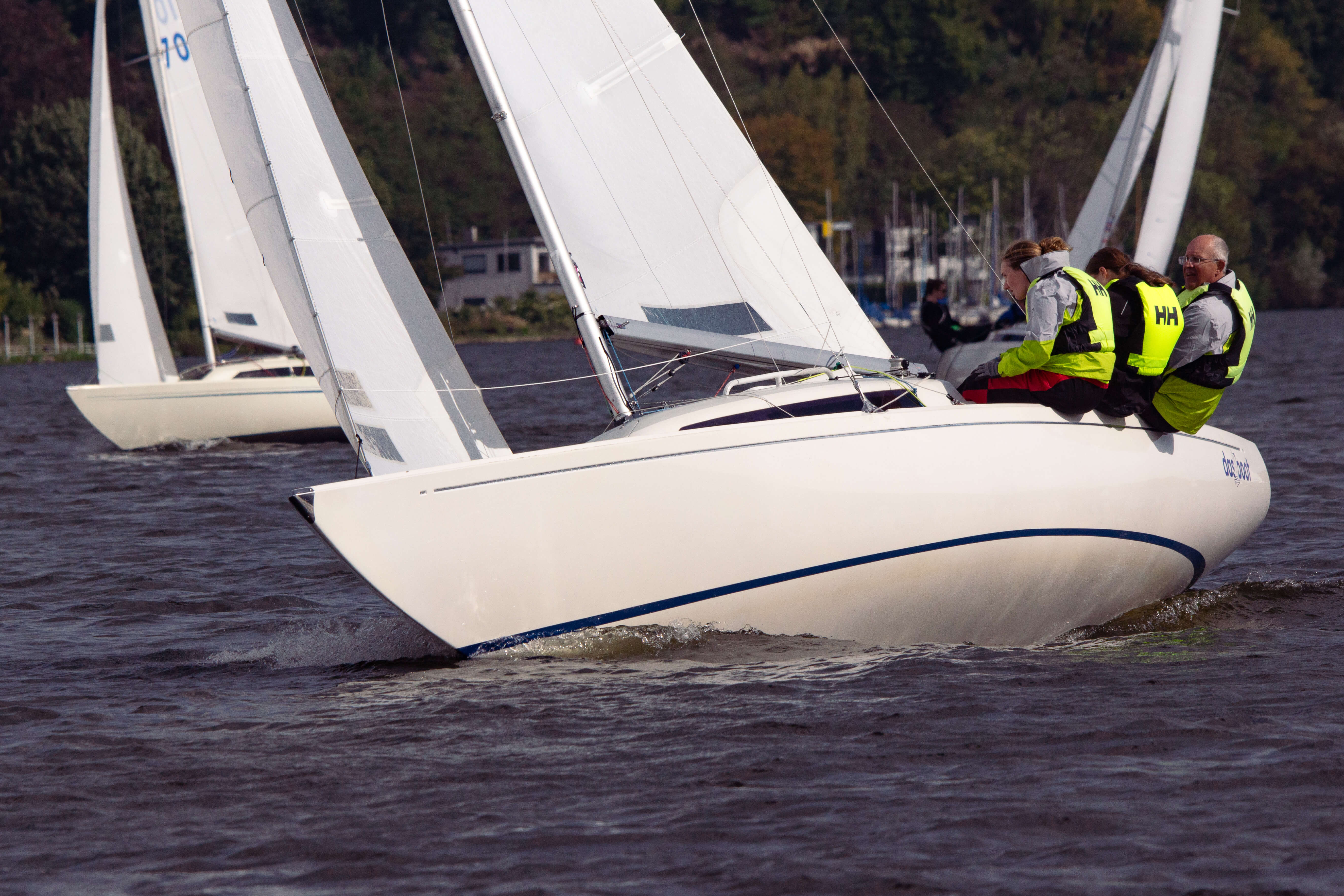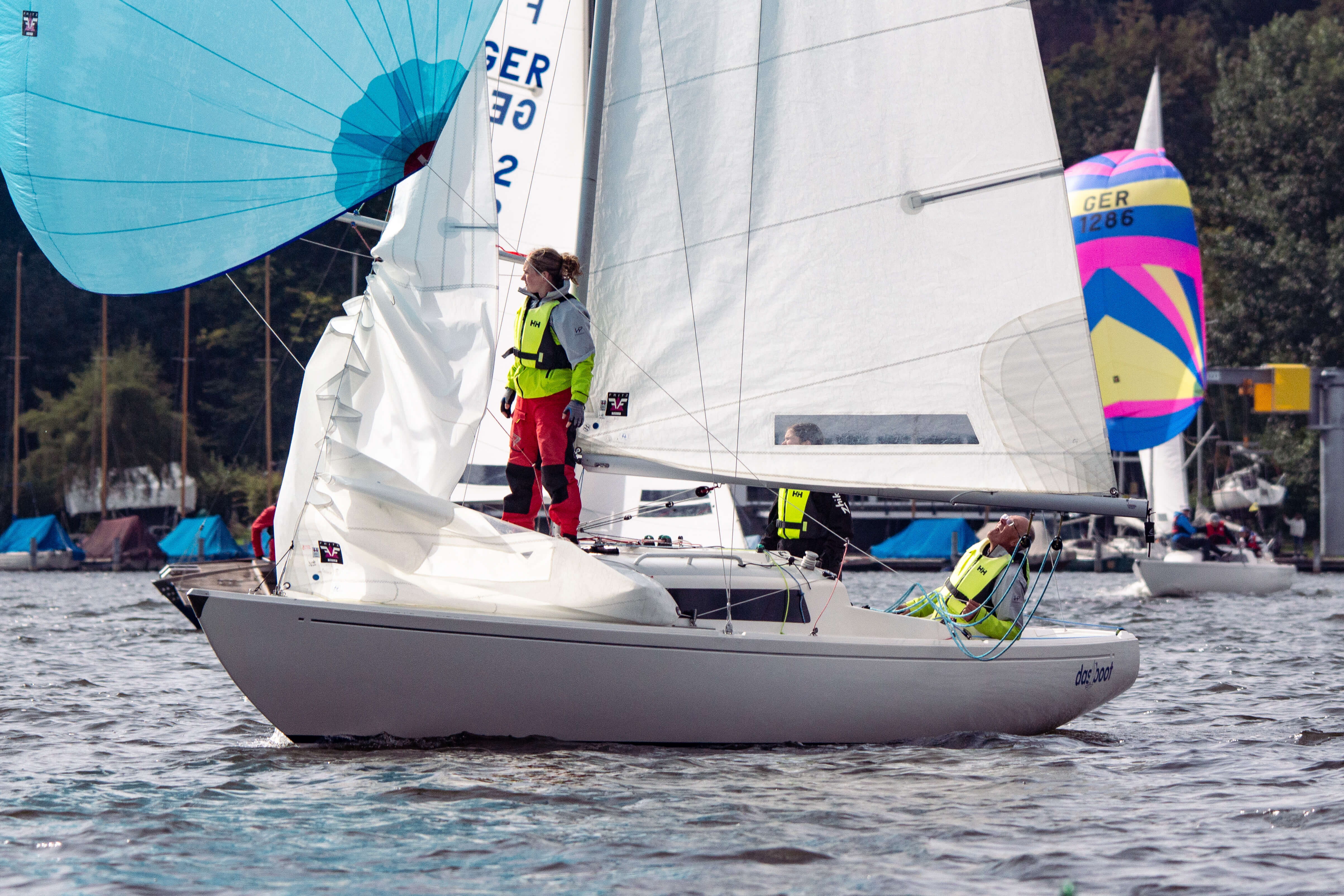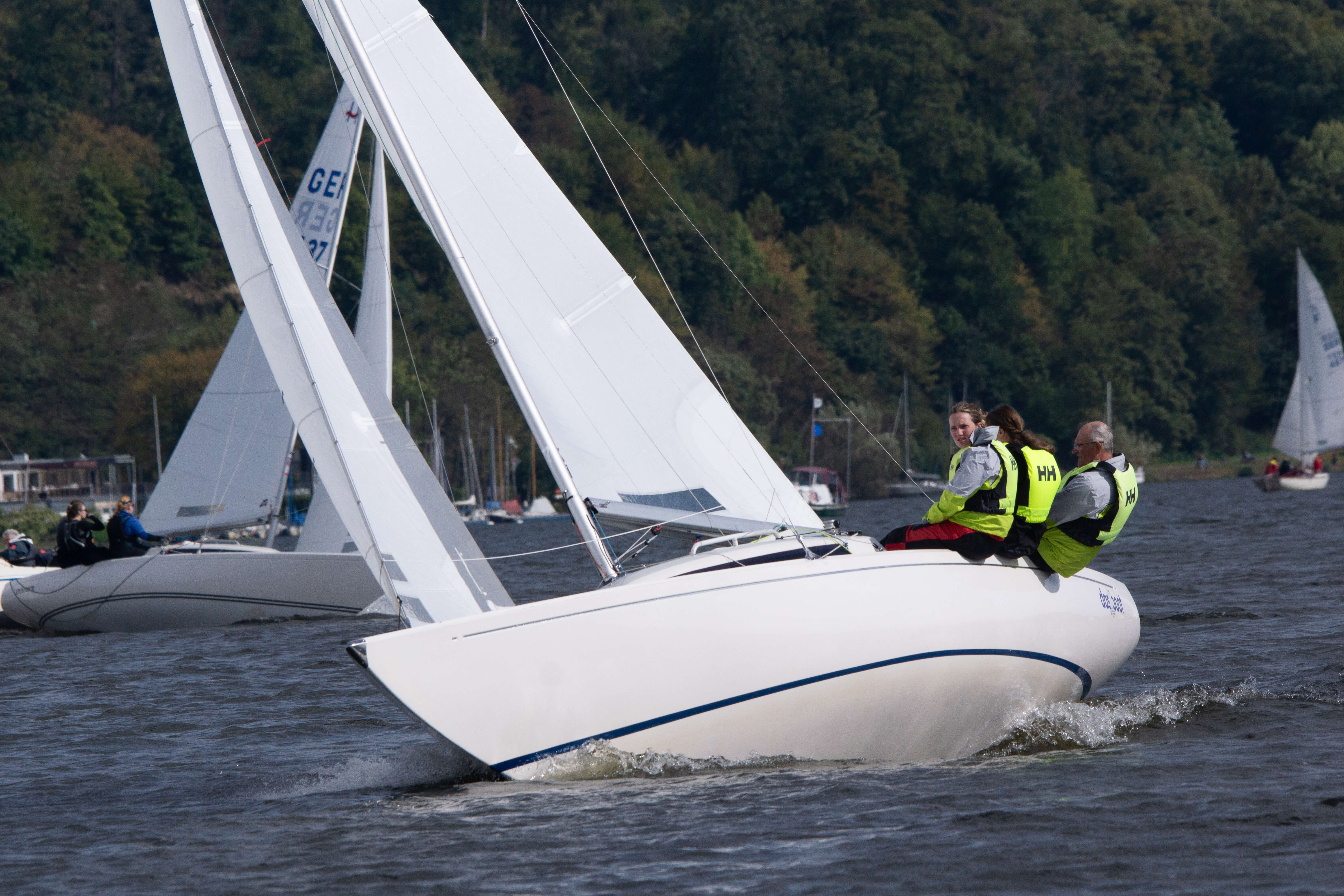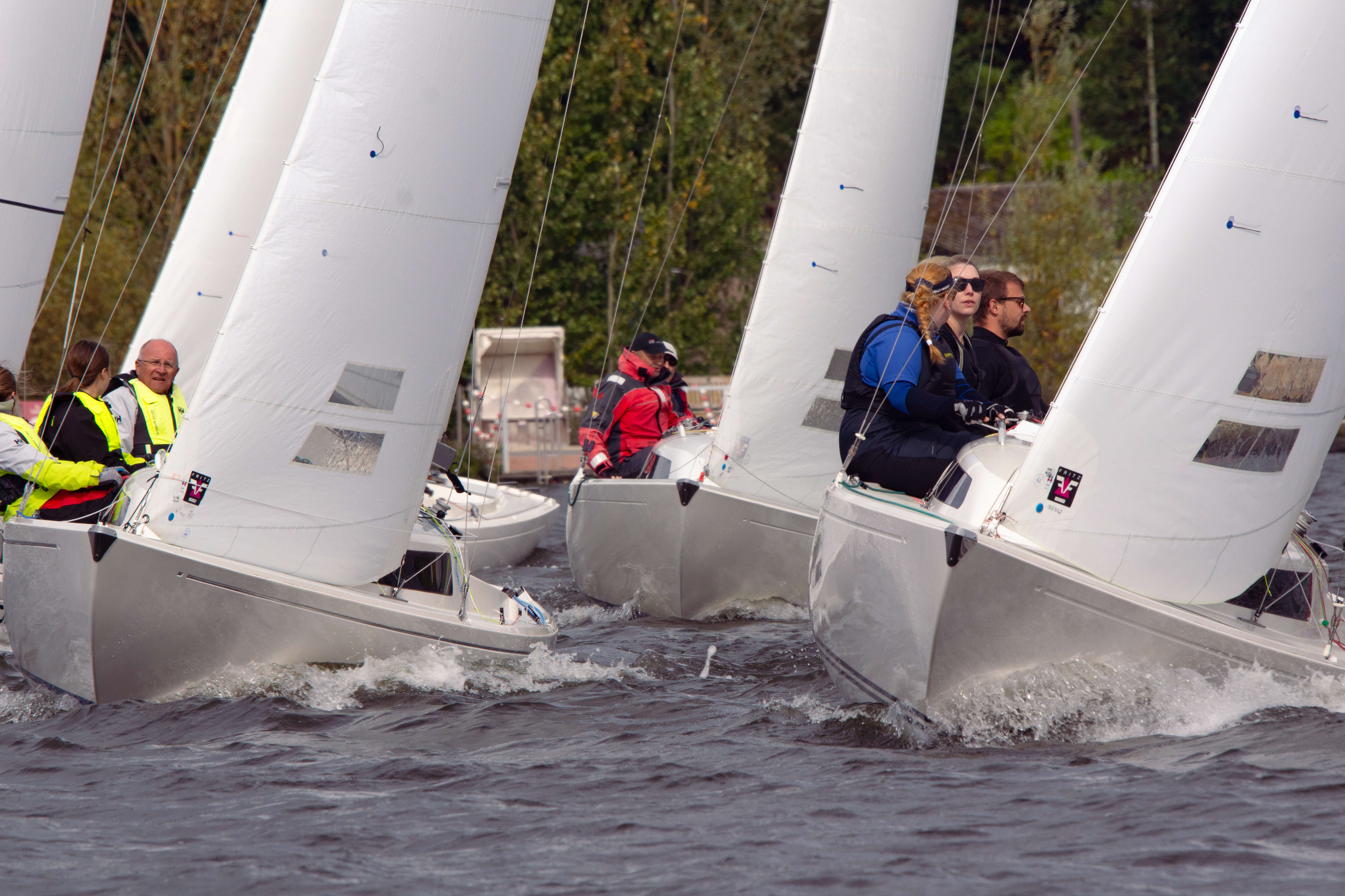 Nach den ersten drei Wettfahrten führte Team Zander das Zwischenergebnis an, doch das Feld lag eng beieinander. Über das gesamte Wochenende hinweg lieferten sich Team Zander, Team Miethe und Team Behrendt spannende Duelle, bei denen sich die Führungspositionen ständig abwechselten. Mal rundete das eine Team zuerst die Luvtonne, dann setzte sich auf dem Downwind ein anderes ab, bevor auf der nächsten Kreuz wieder alles offen war. Es blieb bis zum Ziel fast immer knapp, und die Positionen wurden regelmäßig neu gemischt. Genau so, wie man sich sportlich faires und enges Regattasegeln wünscht.