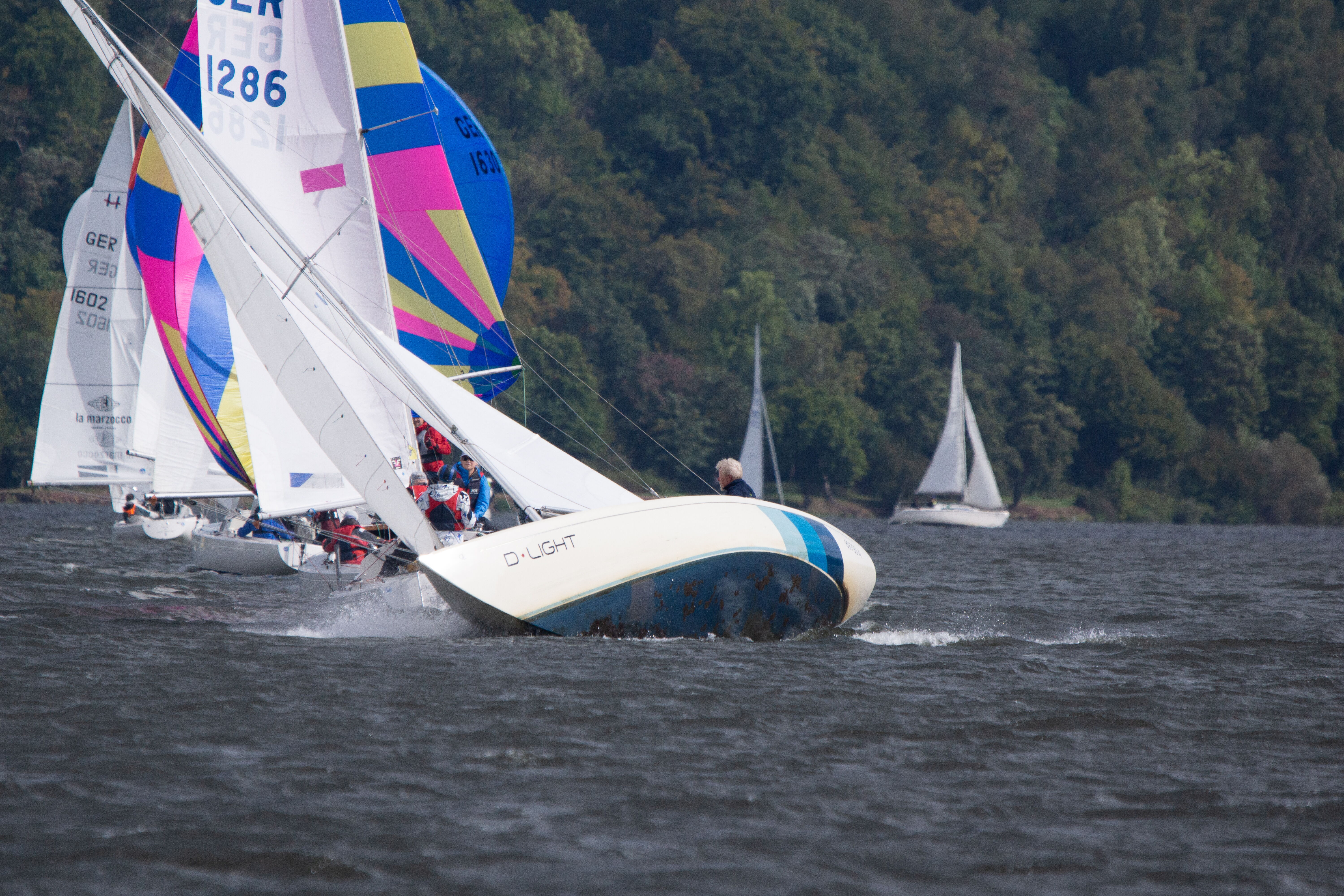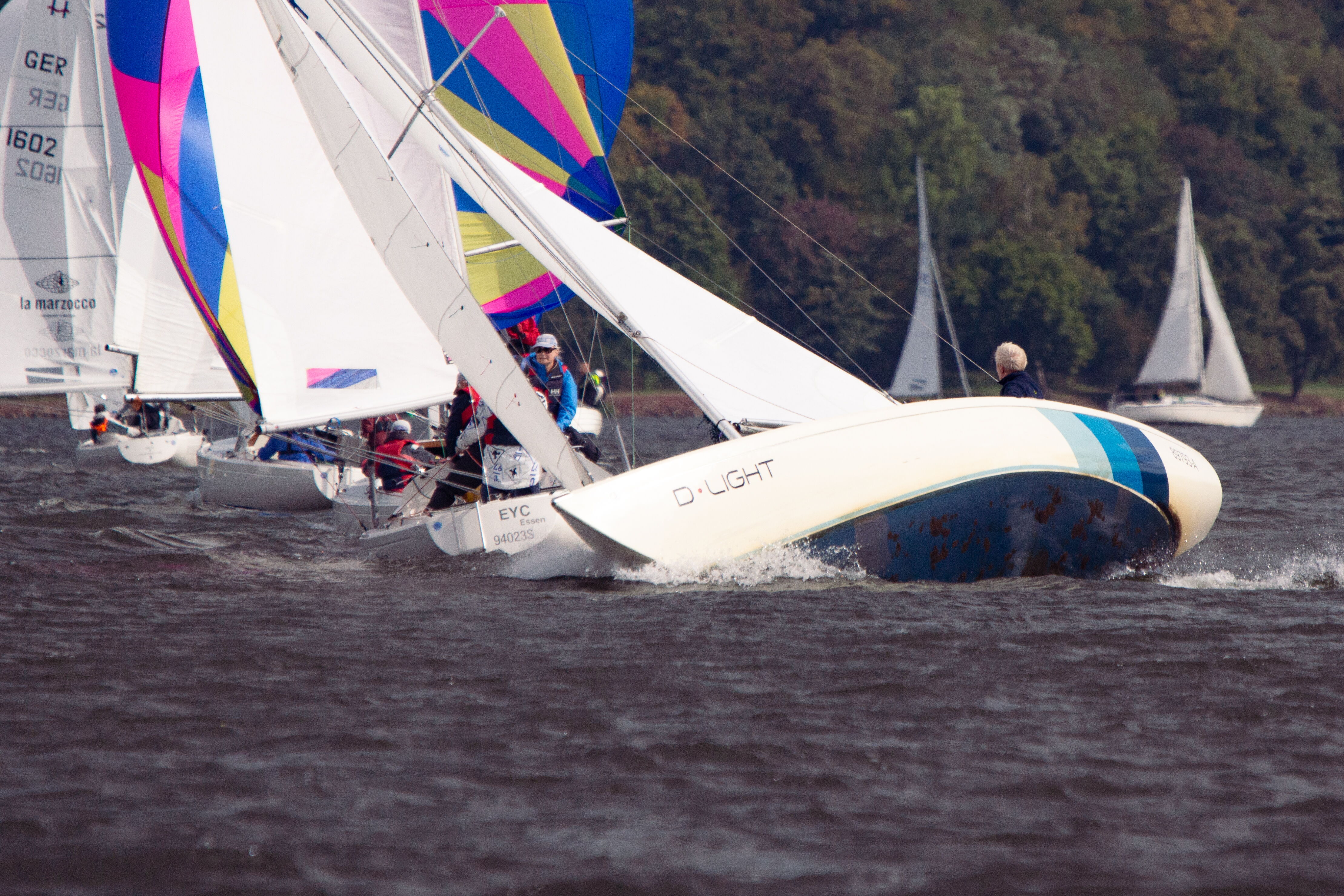 Bei Westwind und 3–4 Beaufort mit strahlendem Sonnenschein zeigte sich der Baldeneysee von seiner besten Seite. Die Wettfahrten führten über eine Kreuz in Richtung ETUF, was für taktisch interessante Segelbedingungen sorgte. Am Samstag konnten drei Wettfahrten gesegelt werden, am Sonntag folgten zwei weitere, sodass die Serie vollständig abgeschlossen wurde.