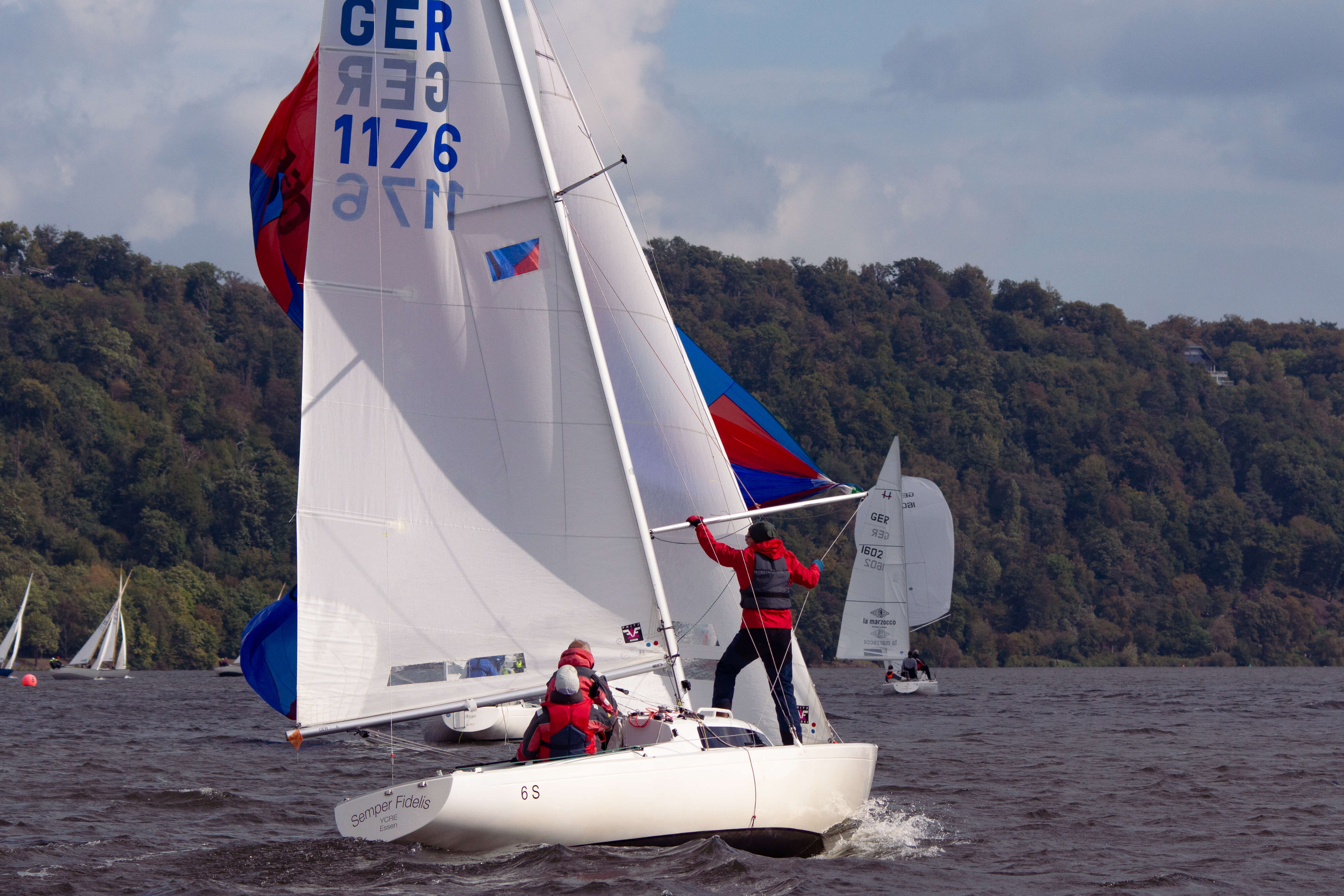 Nach einer längeren Pause fand in diesem Jahr erstmals seit 2020 wieder eine Essener Segelwoche für die H-Boote statt. Der Yacht-Club Ruhrland Essen (YCRE) lud am Samstag und Sonntag zu diesem traditionsreichen Event auf den Baldeneysee ein. Neben den H-Booten gingen auch Folkeboote und Drachen an den Start. Insgesamt nahmen 28 Boote teil, darunter elf H-Boote, die sich spannende und faire Wettfahrten bei hervorragenden Bedingungen lieferten.