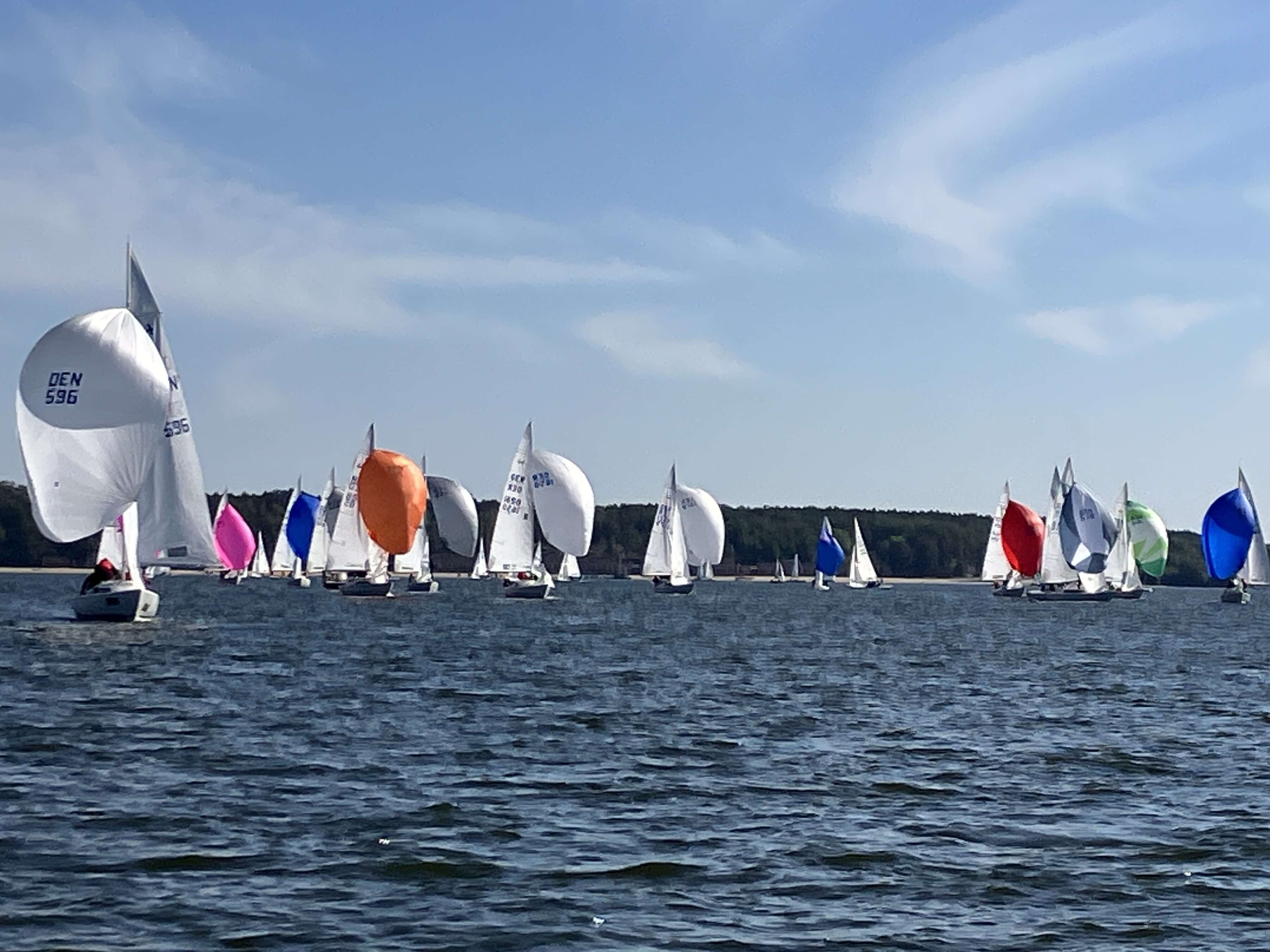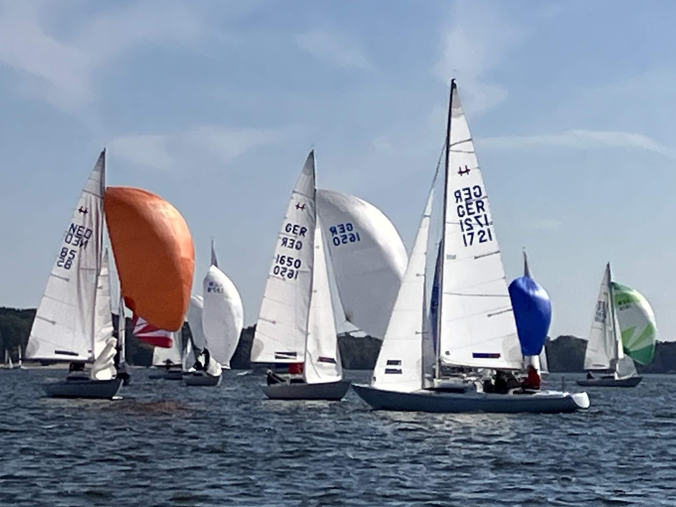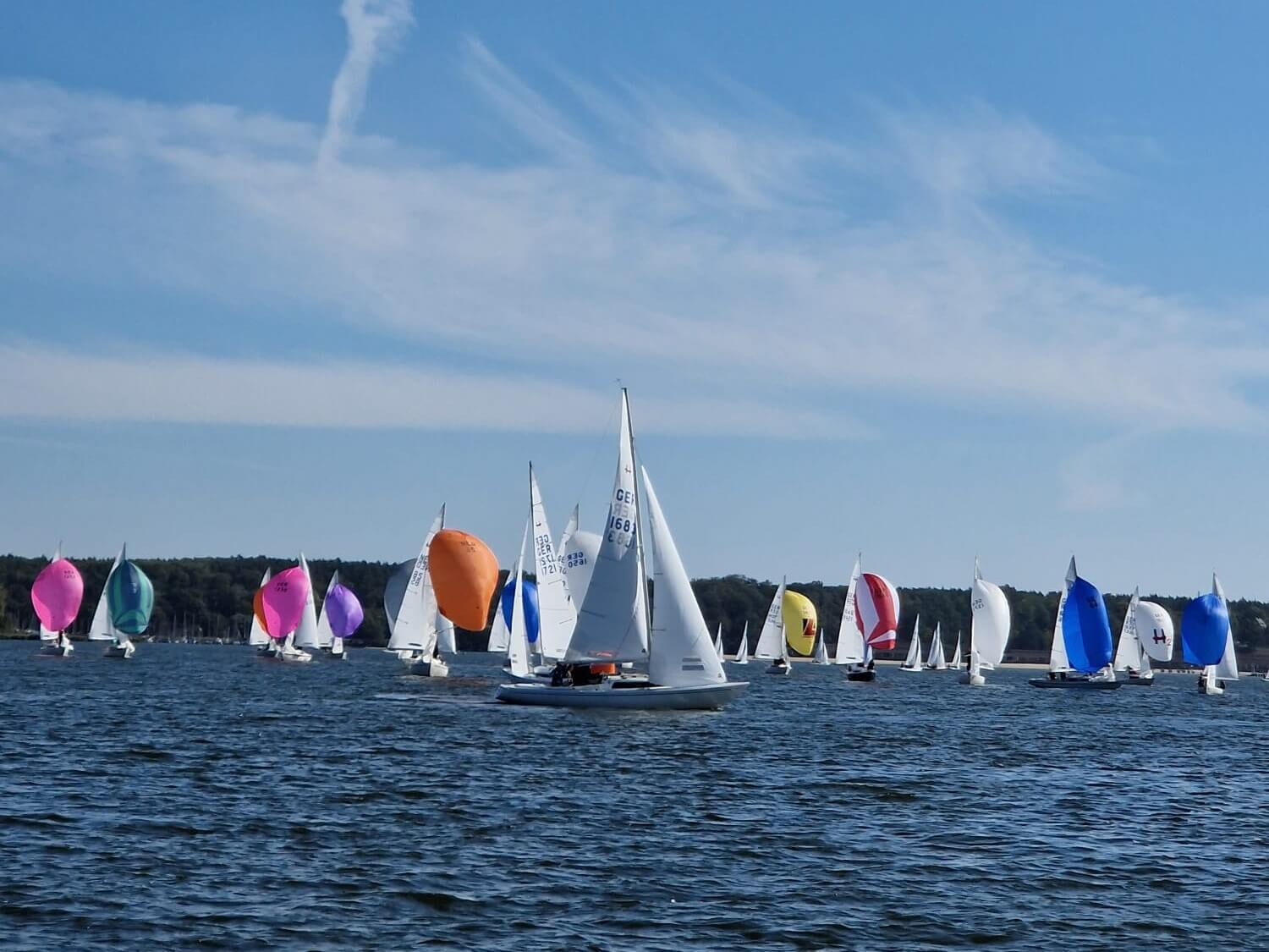 Das Wetter meinte es gut mit uns: Strahlender Sonnenschein, ein wolkenloser Himmel mit angenehmen Temperaturen und leichtem Wind aus Ost. Es konnte eine relativ kurze Bahn im T-Stück von Havel und Wannsee ausgelegt werden, auf der sich die vier Klassen arrangieren mussten. Dank einer fähigen Wettfahrtleitung ging das erstaunlich gut. Der zu Beginn der Regatta etwas böige Wind flaute im Laufe der Wettfahrten immer mehr ab, jedoch konnten immerhin alle fünf ausgeschriebenen Wettfahrten gesegelt werden.