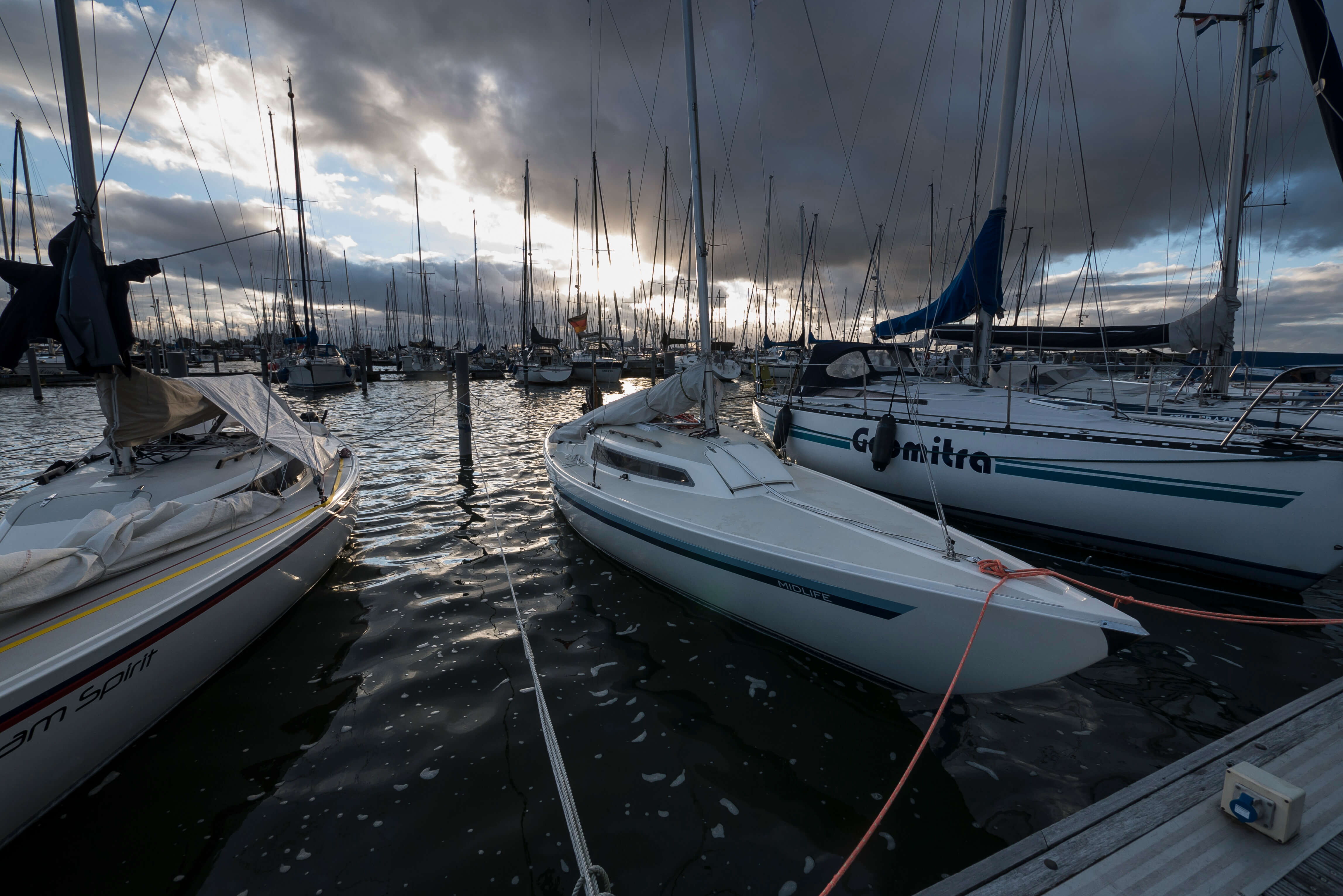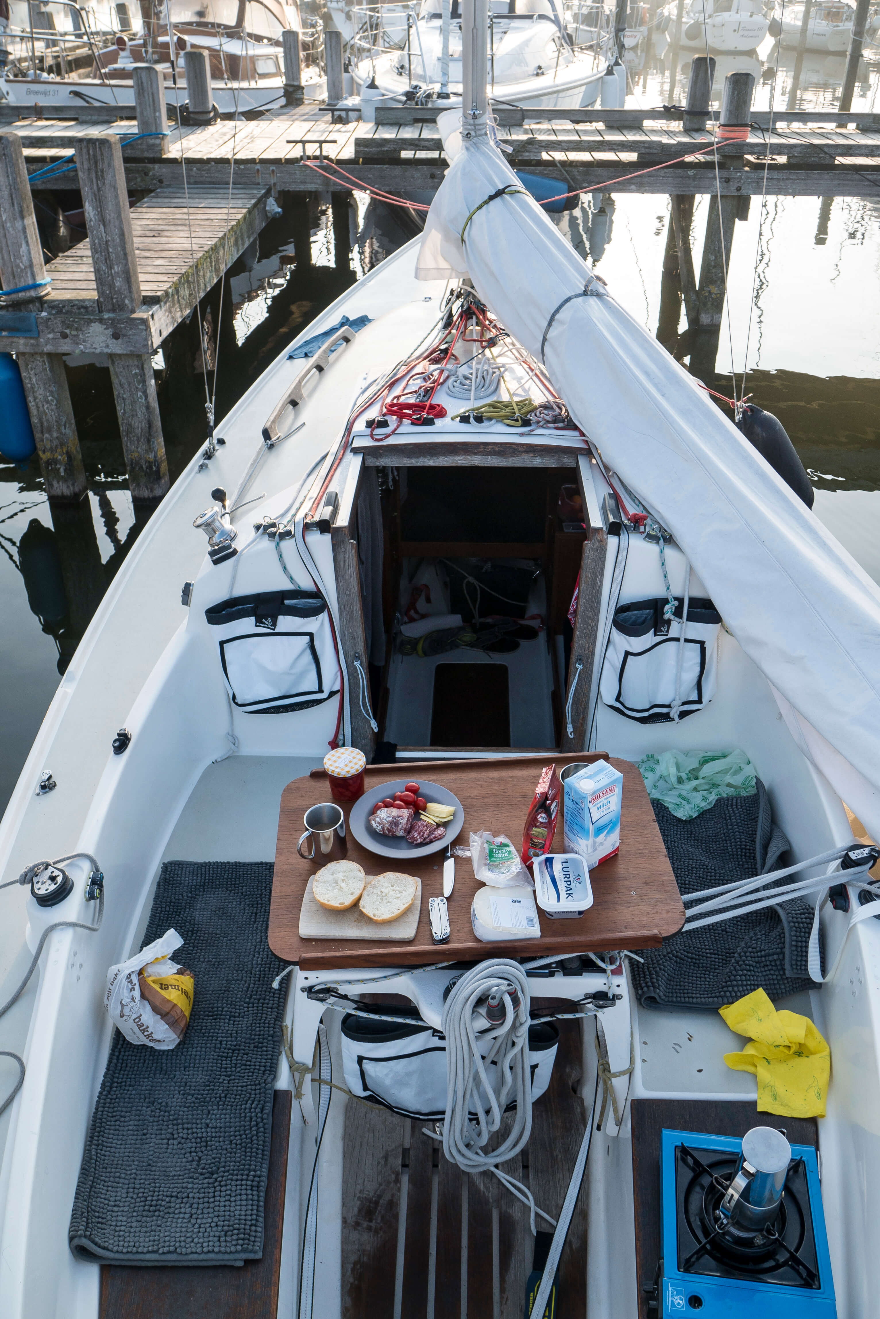 In der Flevomarina nehmen wir am vertrauten Steg unsere Liegeplätze ein und freuen uns über eine gelungene Vollendung des Törns. Es wird abgetakelt und Vorbereitungen zum Auskranen getroffen. Mit dem Hafenmeister werden die Kranzeiten für Sonntagvormittag abgestimmt.