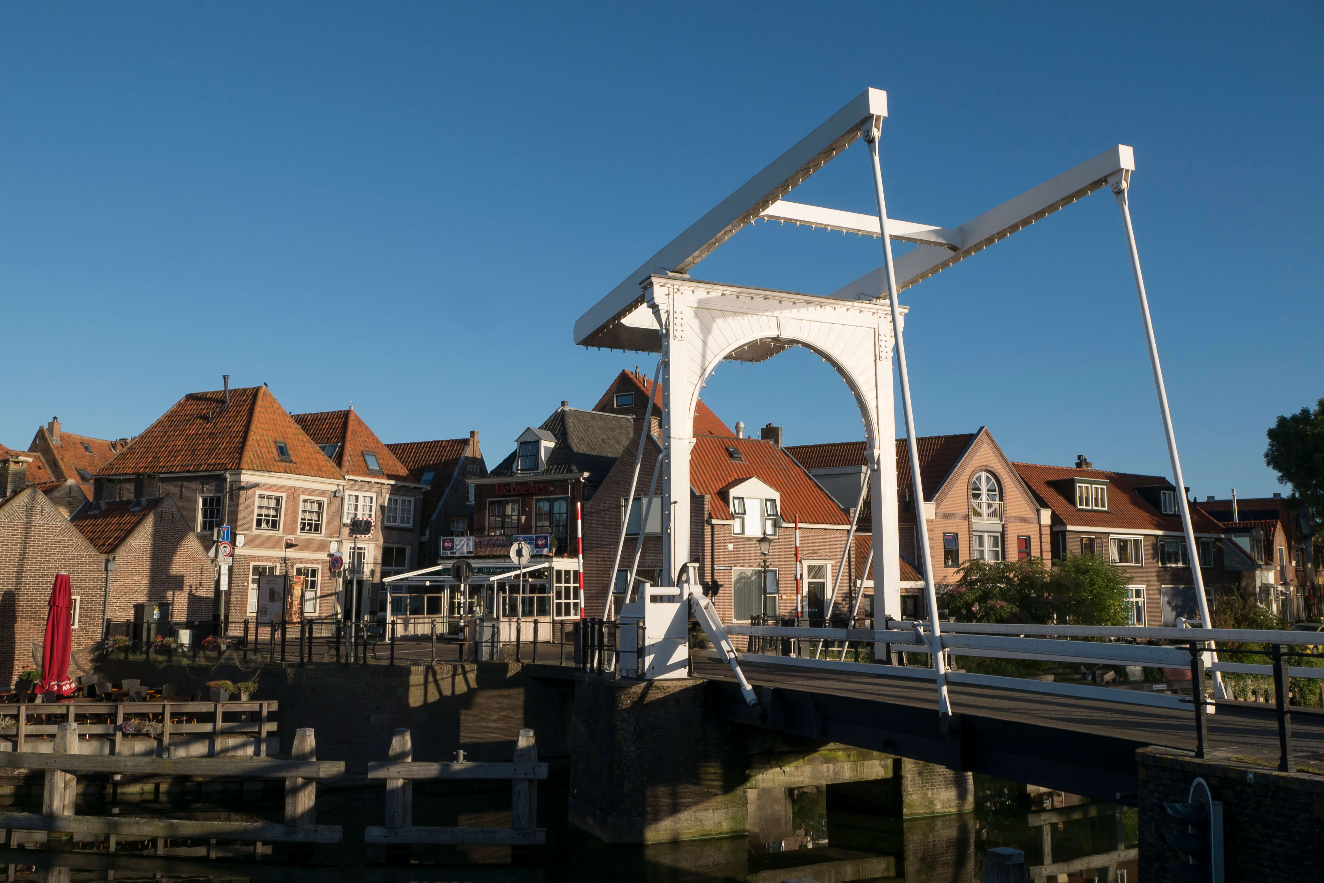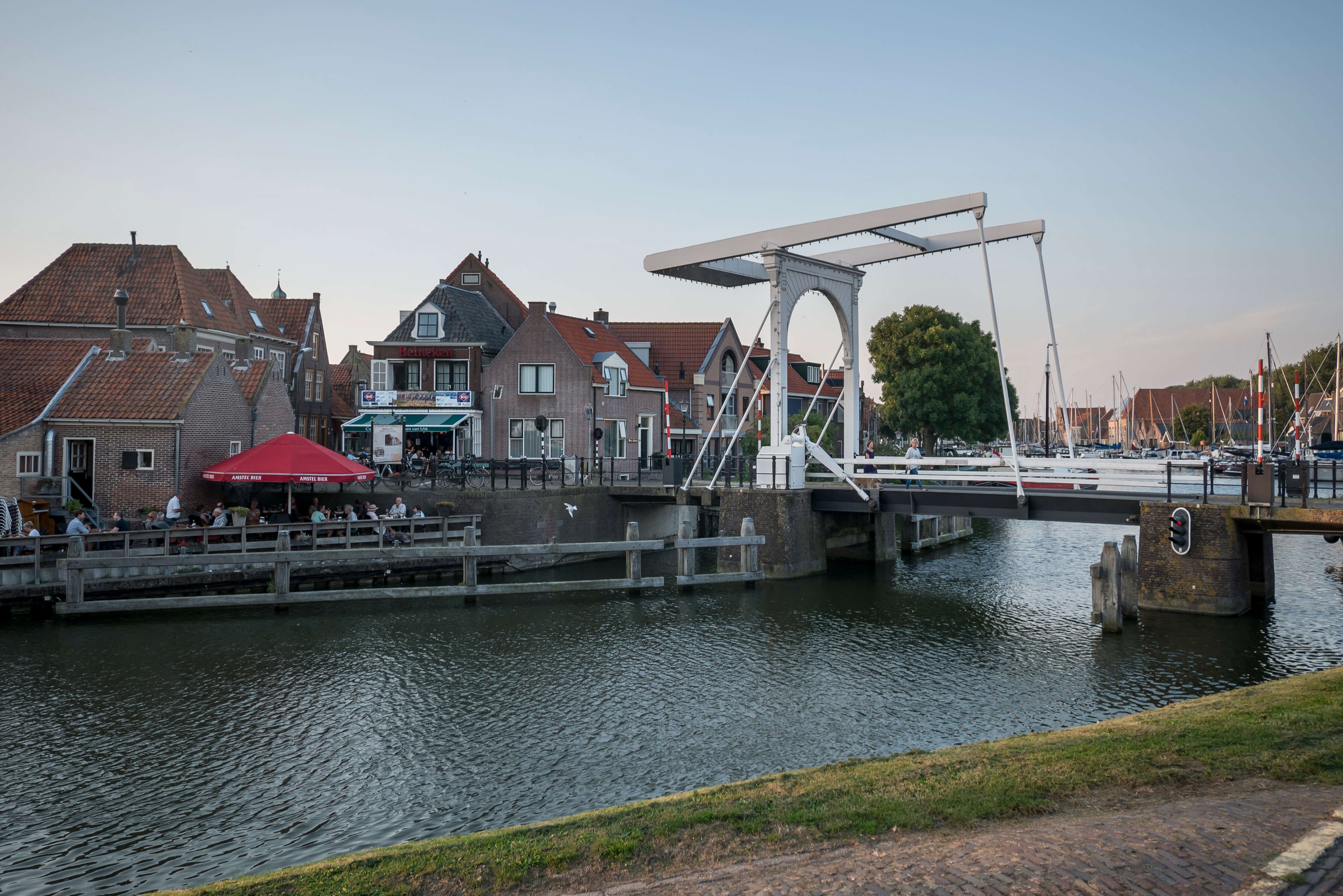 Enkhuizen ist ein altes Seefahrerstädtchen, in dem es viel zu schauen gibt. Bei schlechtem Wetter bietet sich das Zuiderzeemuseum an. Der abendliche Spaziergang lässt uns viele Brücken und historische Gebäude bestaunen. Einige davon mussten unbedingt von innen besichtigt werden, der Gaumenfreuden wegen versteht sich. Im Biergarten wird bei Sonnenuntergang das Ende des Sommers deutlich. Tagsüber mit kurzer Hose und T-Shirt unterwegs, aber abends darf’s etwas mehr Kleidung sein. Die Flottille ist zufrieden. Schon am Abend besprechen wir den Kurs des nächsten Tages. Es soll, soweit die abzusehenden Wetterbedingungen es zulassen, nach Hoorn oder noch weiter nach Monikendam gehen. Beide Häfen liegen im sogenannten Markermeer.