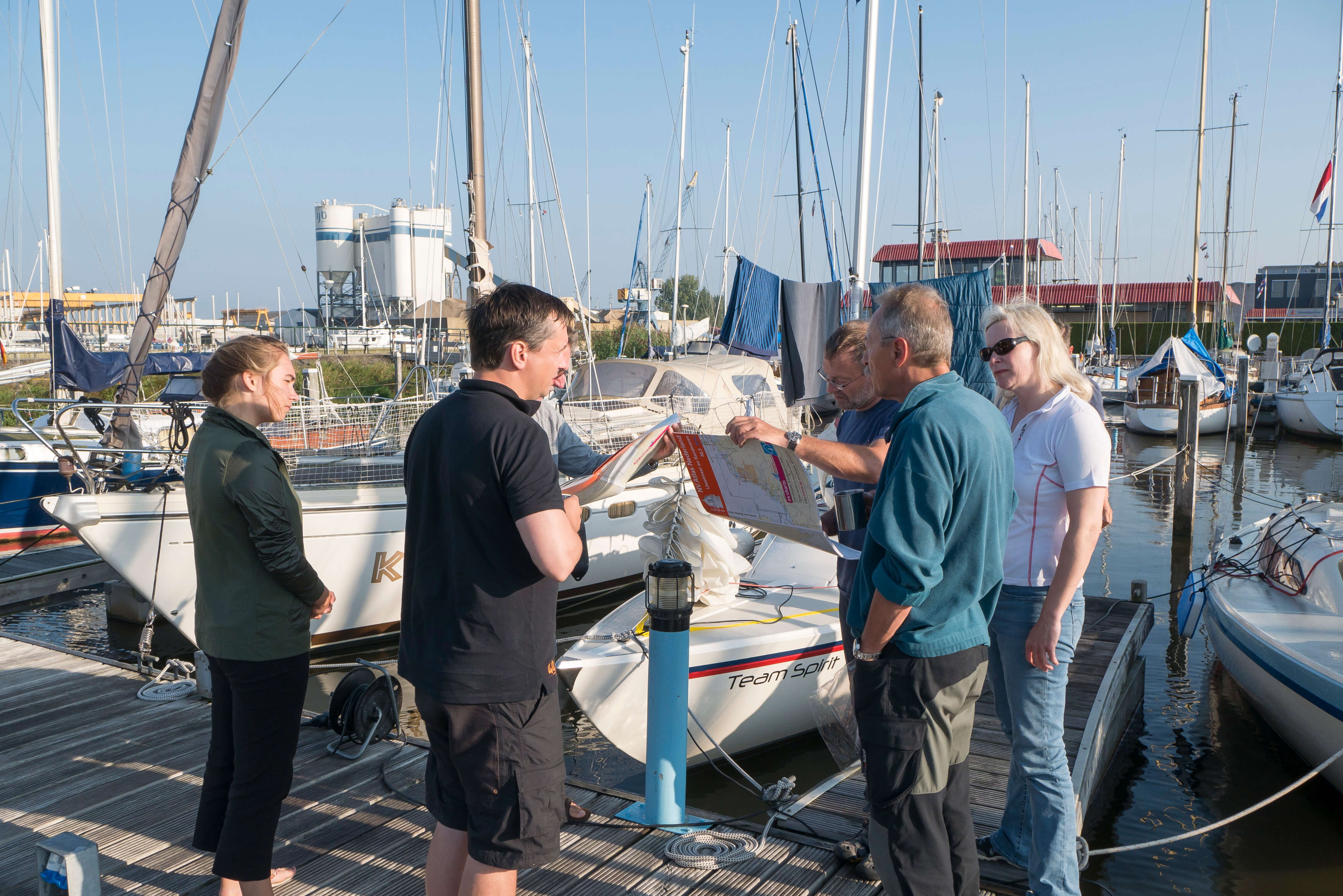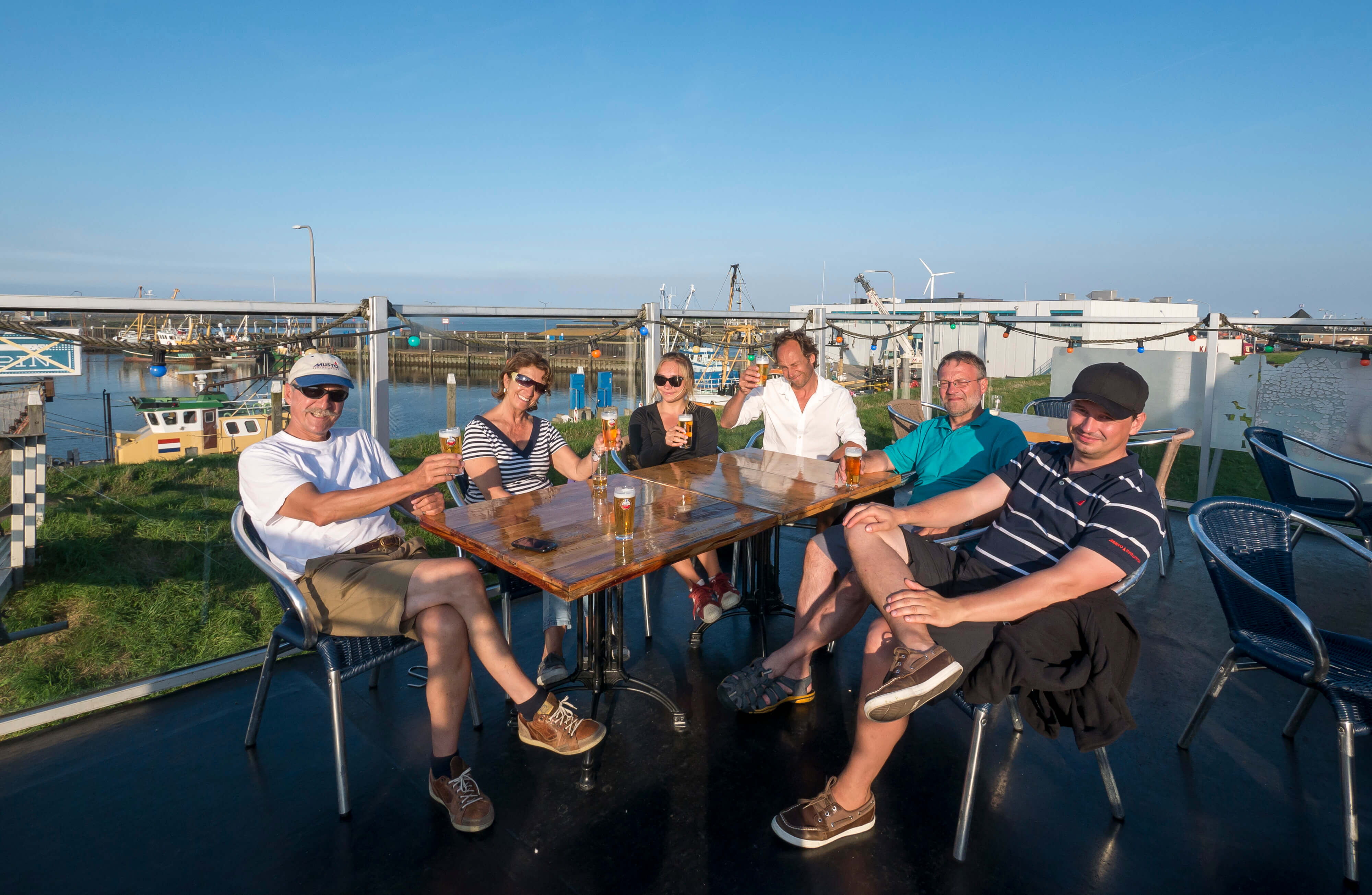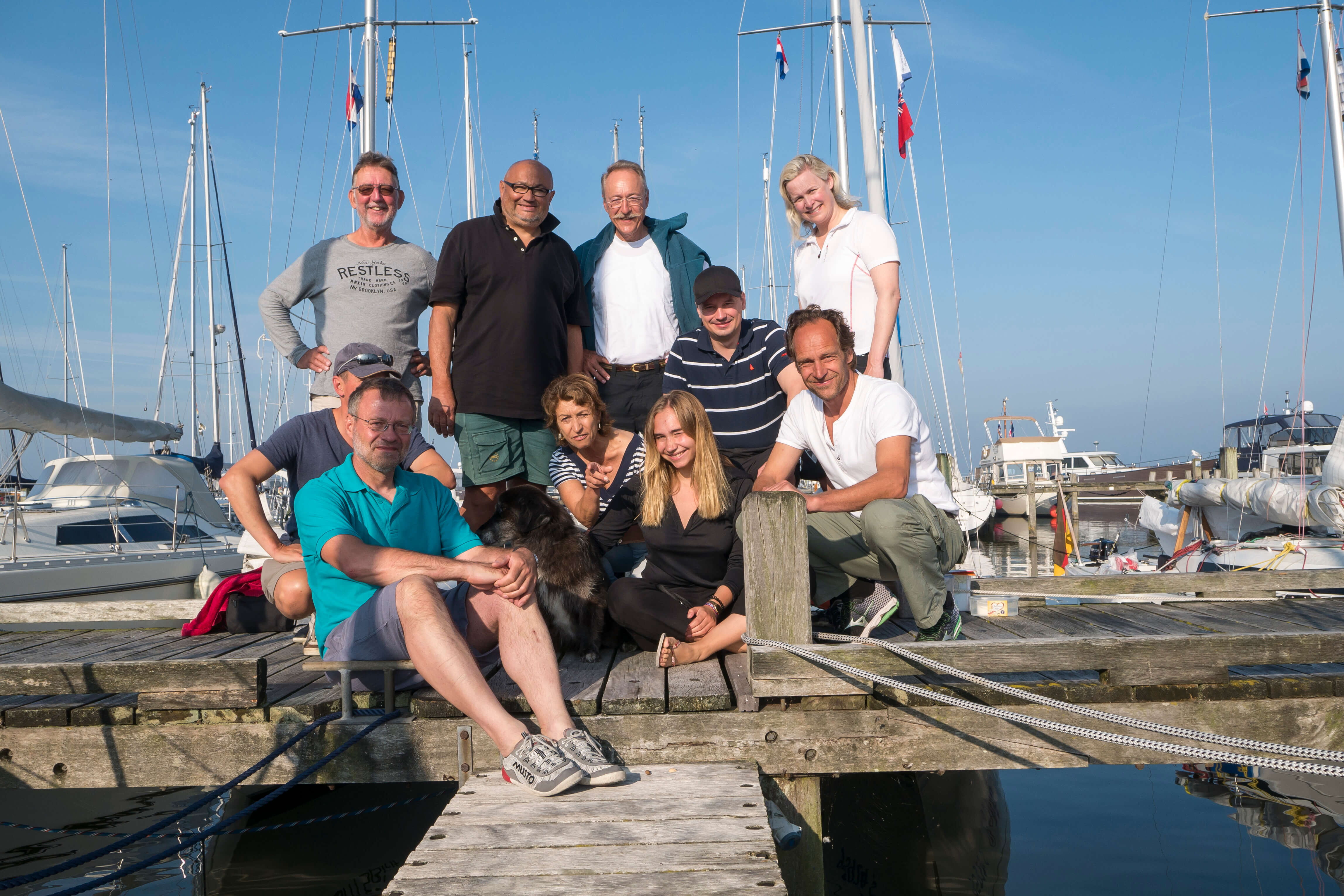 Ausgangs- und Endpunkt sollte Lelystad sein, eine Stadt, die erst durch die Einpolderung der Zuiderzee nach den 30er Jahren entstanden ist. Die Anfahrt mit den Gespannen gestaltet sich unkompliziert und bis Freitagabend sind alle “im Bach“. Der Hafenmeister und sein Team empfangen uns äußerst freundlich. Bei milder Witterung erleben wir einen angenehmen Begrüßungsabend im Hafenbistro. Diejenigen, die sich noch nicht kennen, finden sich bald freundschaft lich ein. Es herrscht gute Stimmung: