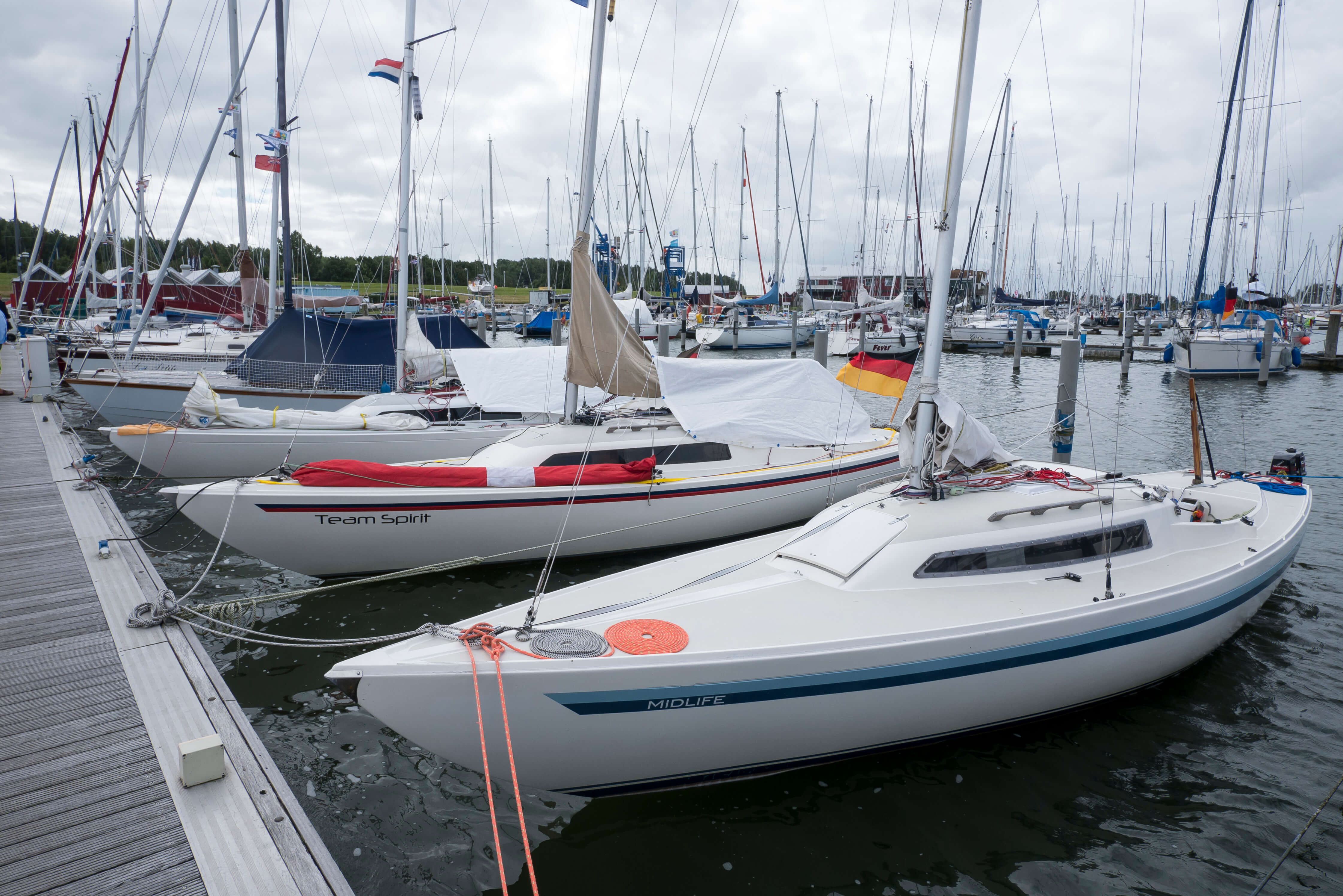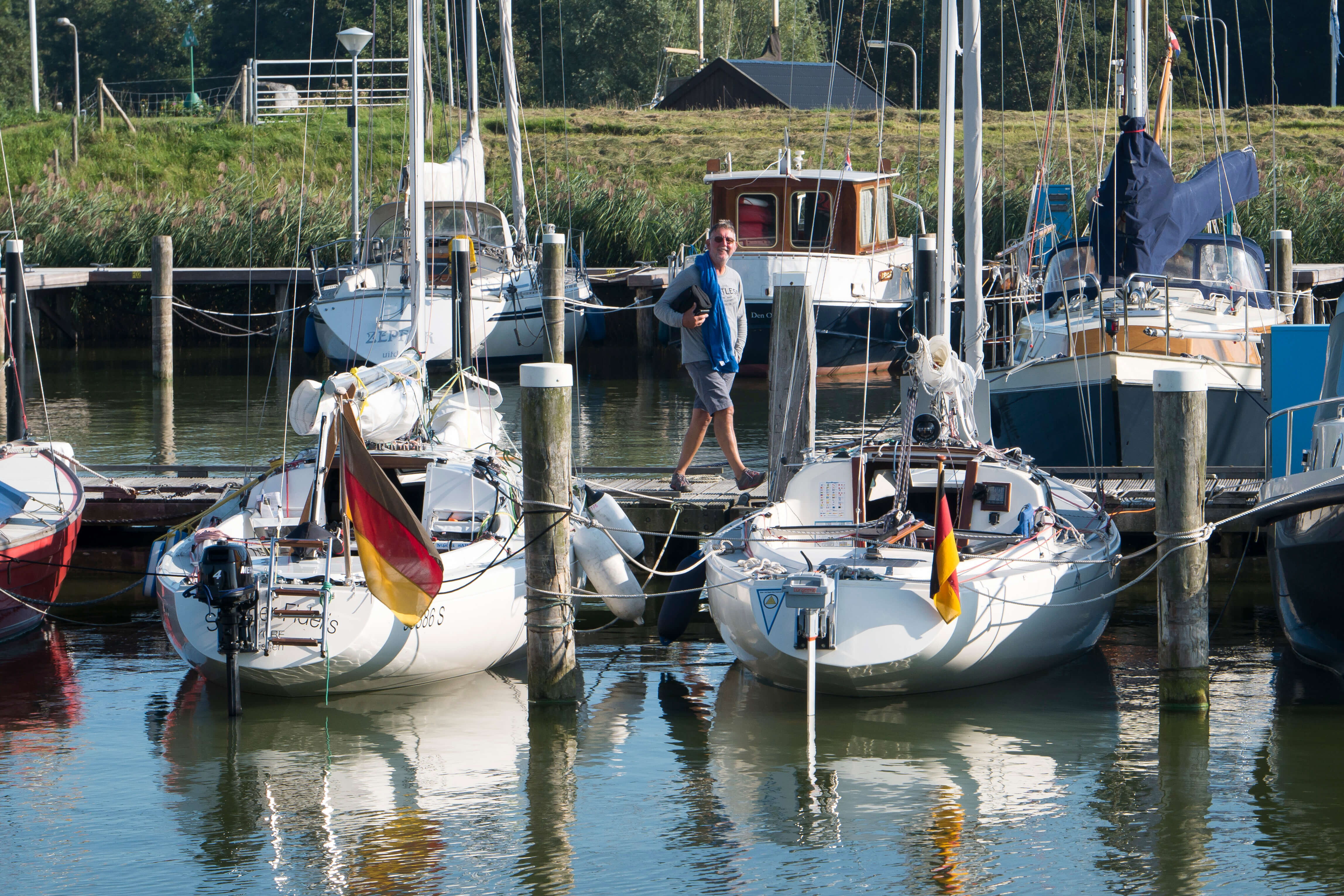Nachdem es im Vorjahr in ein südliches Segelrevier ging, sollte es diesmal etwas nördlicher sein, wo die Flottille von H-Booten sich treffen wollte. Genau gesagt nordwestlich, denn die Niederlande mit ihren friesischen Seeen und dem Ijsselmeer liegen im Nordwesten der Bundesrepublik. Es ist quasi das Hausrevier der nordrheinwestfälischen Segler. Fahrzeit mit Pkw vom Ruhrgebiet rd. 2,5 bis max. 3 h. Für die im Süden und Osten wohnhaften Segler ist es freilich ein bisschen länger zu fahren, zumal mit Gespann.