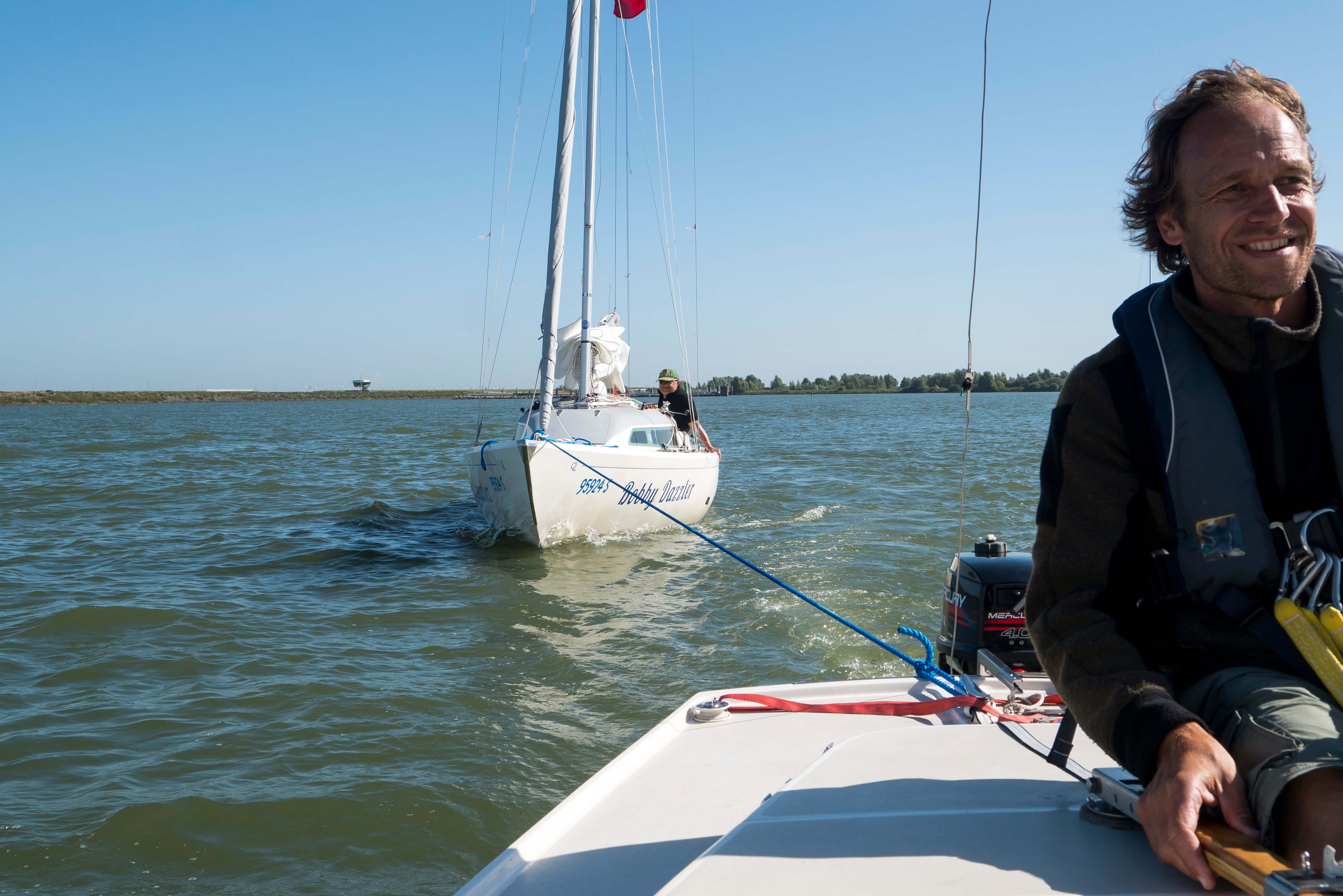 Irgendein lieber Flottillenteilnehmer hat dann ehrenamtlich Frühstücksbrötchen organisiert, zur Freude aller. Los geht es nach dem obligatorischen Briefing. Doch zuvor sollten wir Annette von der “Unicorn“ und Felix von der “Team Spirit“ verabschieden, die unbedingt heim mussten. Sie steuern mit der “Team Spirit“ zum Ausgangshafen zurück. Den Oever, unser nächstes Tagesziel, liegt am westlichen Ende des Abschlussdeiches und hat neben Fischereihafen und Marina eine Seeschleuse, über die man Tag und Nacht die Nordsee bzw. das Wattenmeer erreichen kann. Eine kleine Wanderung hat auch uns dem Wattenmeer mit Blick auf die Insel Texel näher gebracht. Jetzt kommt sogar der Vorschlag, eine Stippvisite nach Texel oder Kornverderzand jeweils via Waddenzee zu machen. Hört, hört!