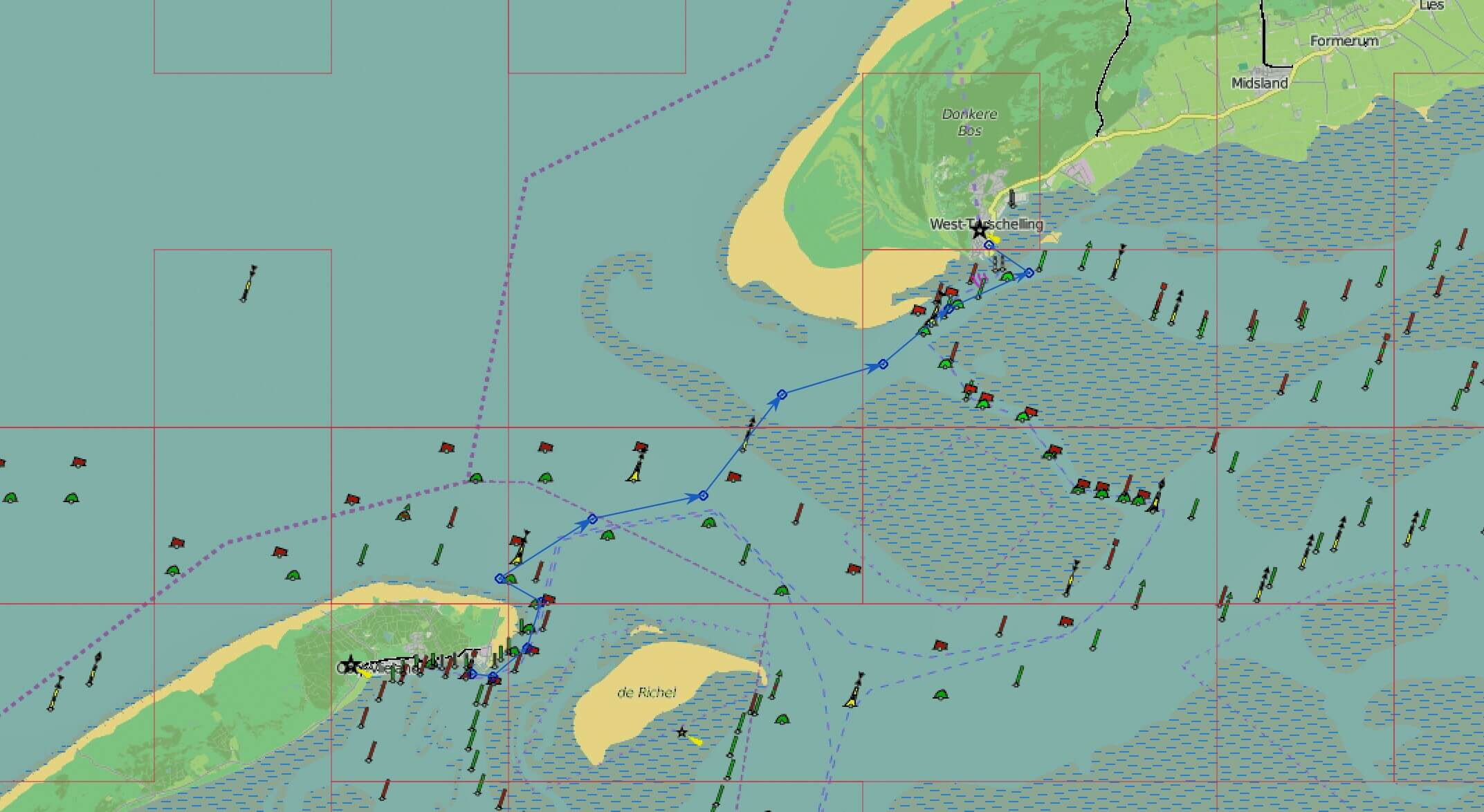 Die Insel Vlieland ist unser nächstes Ziel und dazu benötigen wir für den ersten Teil der Strecke auflaufendes Wasser und für den zweiten Teil ablaufendes. Es gilt also, zu einer bestimmten Zeit an einem bestimmten Punkt unserer Reise zu sein, um beide Tiden mit der günstigsten Strömung zu erwischen. Die Flottille ist gespannt …