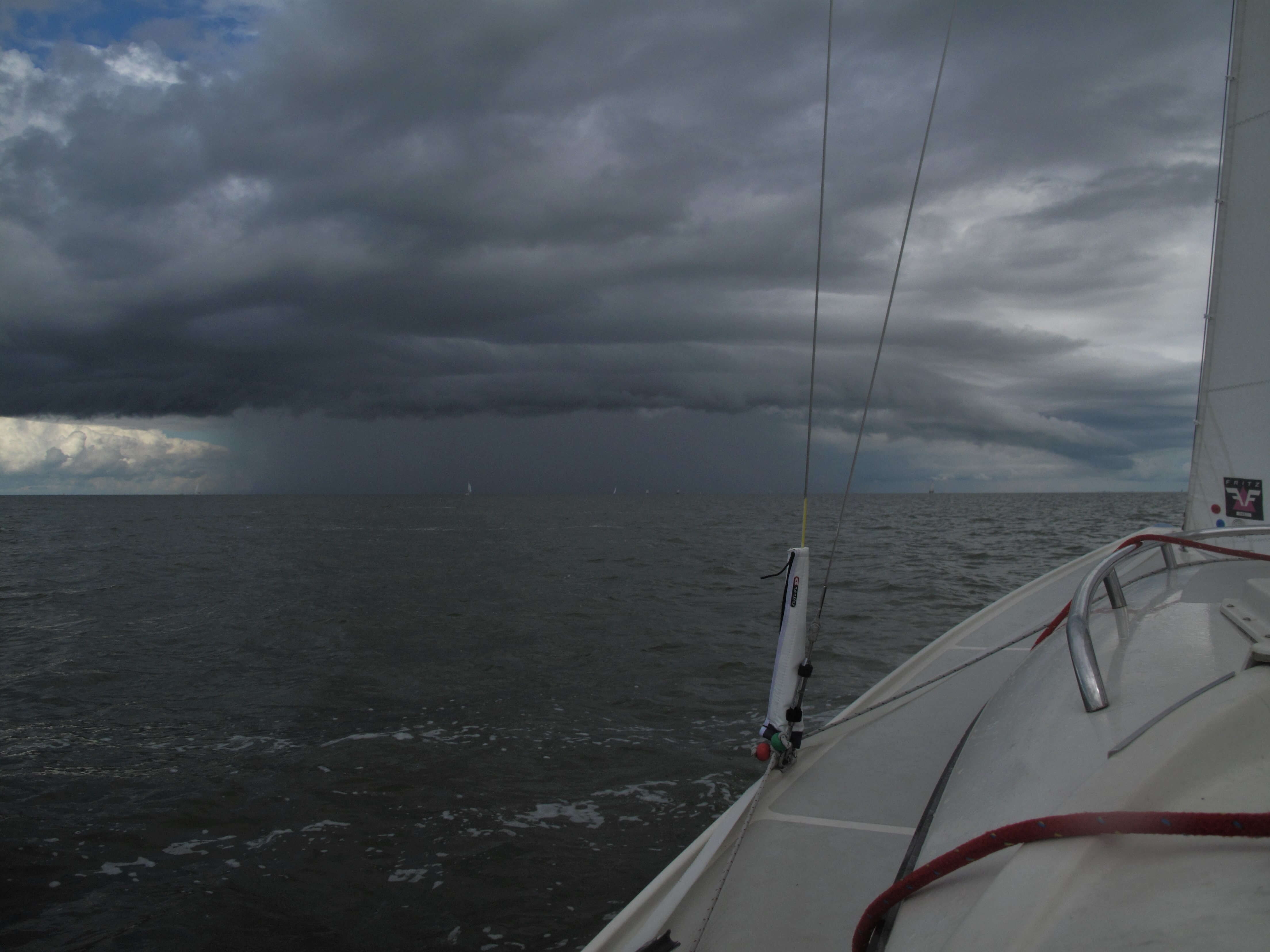 Der nächste Tag ist unser letzter Segeltag, da solls nochmal so richtig zünftig zurück nach Hindeloopen gehen … Zünftig! 3 Gewitter haben uns passiert, aber nur eines geht direkt über unsere kleine Flottille hinweg. Sturzregen macht Reinschiff, Verschlusszustand ist angesagt. Der Zauber ist alsbald vorbei, Ginger und teamspirit laufen nach Warns/Friesland ab, Unicorn und Semper Fidelis laufen Hindeloopen an, wo die Gespanne stehen. Grete hat schon tags zuvor die Tour beendet.