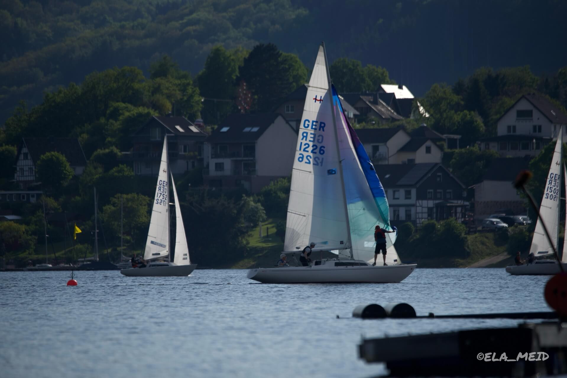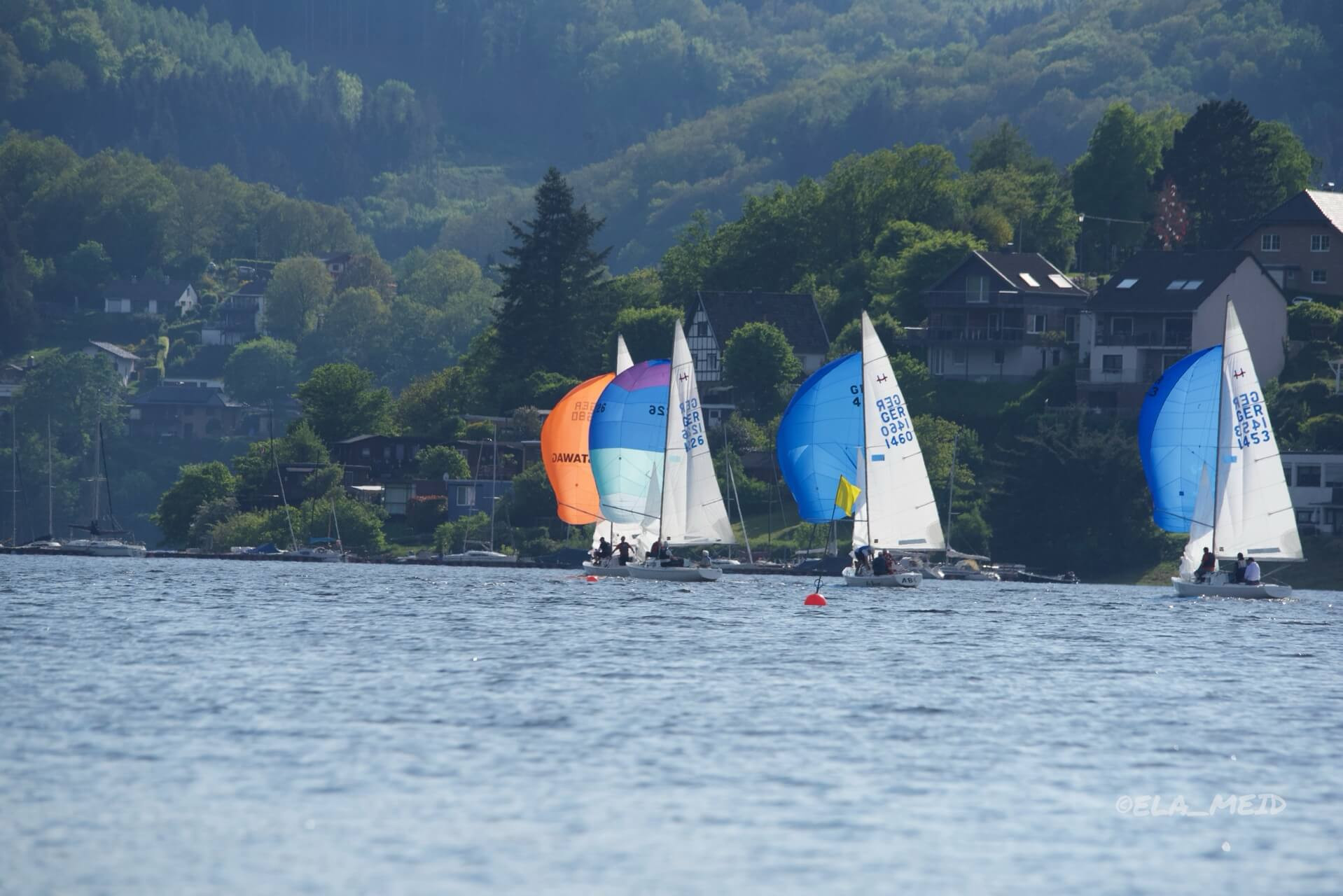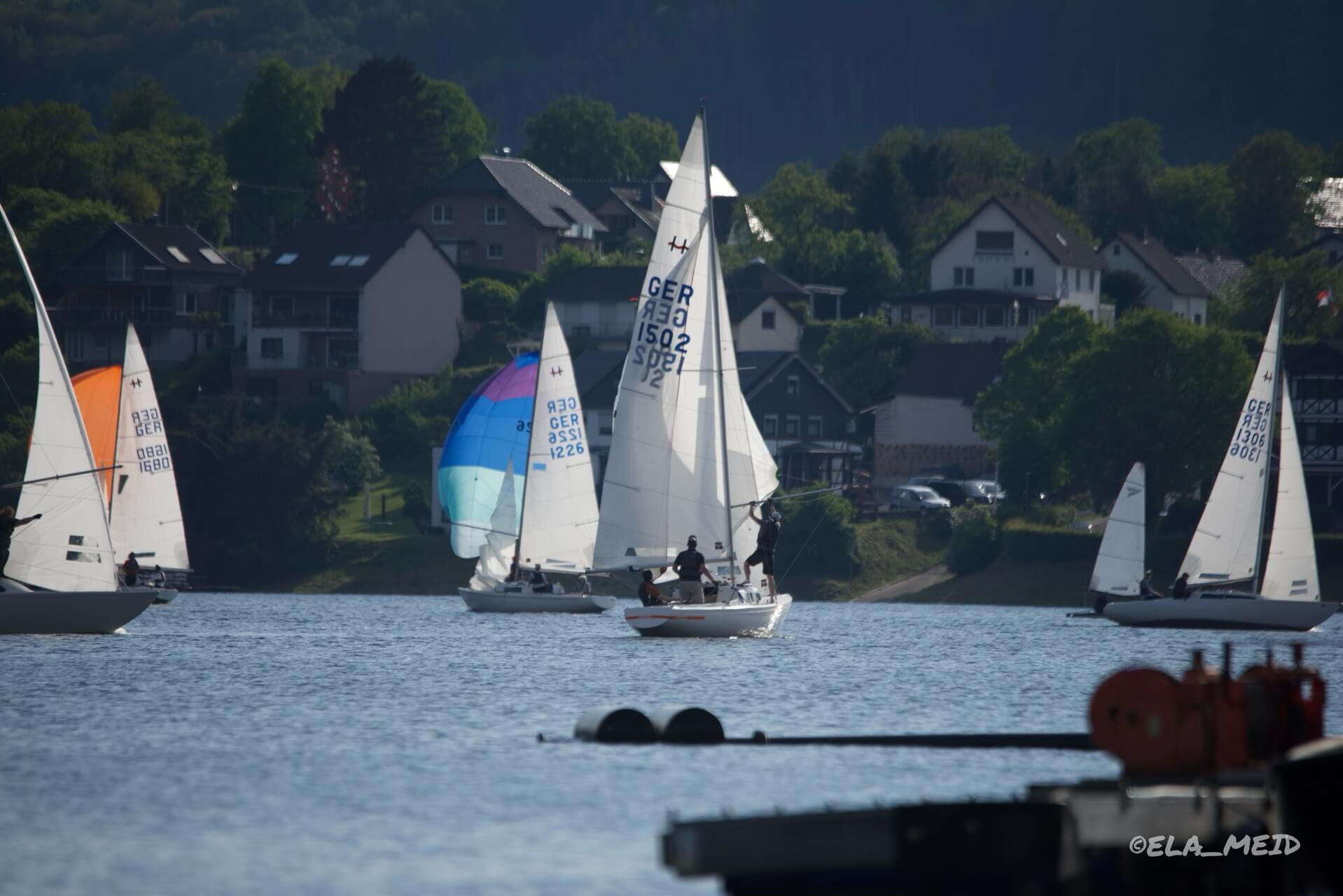 Am Sonntag drehte der Wind leider auf Südost, eine Richtung, bei der am Rursee der Berg „Kermeter“ im Wege steht und für unstete Windbedingungen sorgt, so dass keine Wettfahrt mehr zu Stande kam. Dies tat der guten Laune der Teilnehmer aber keinen Abbruch.