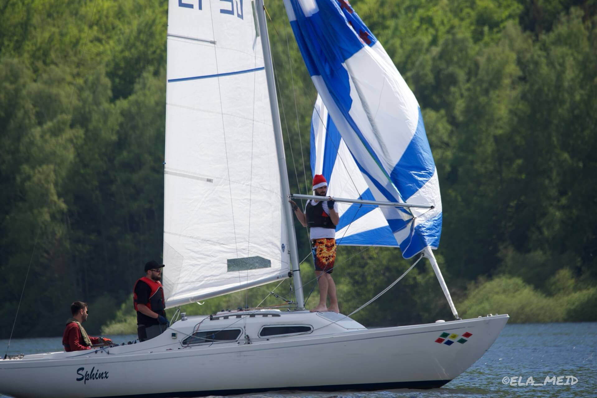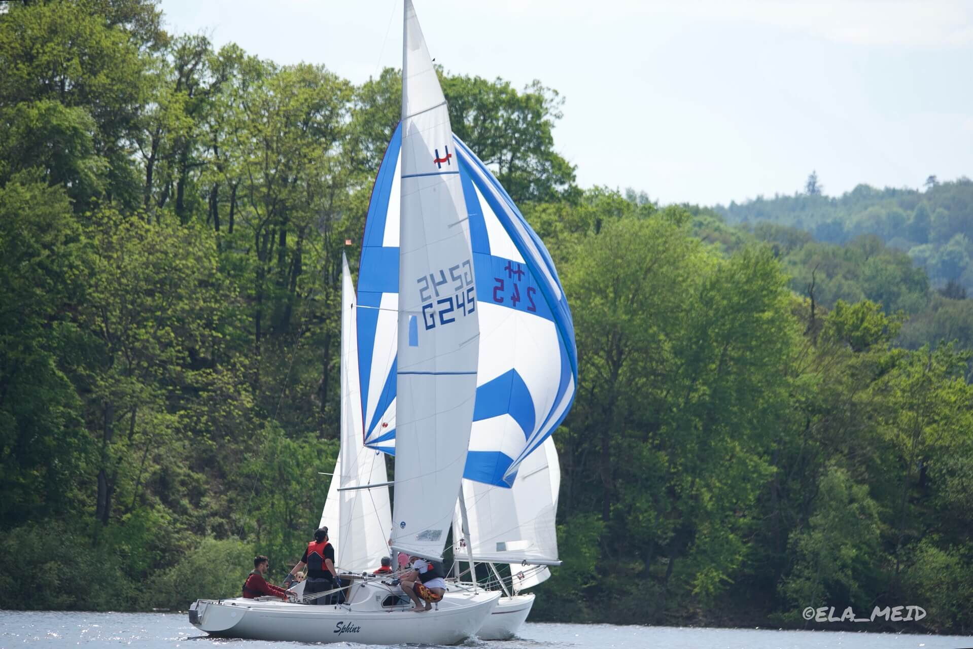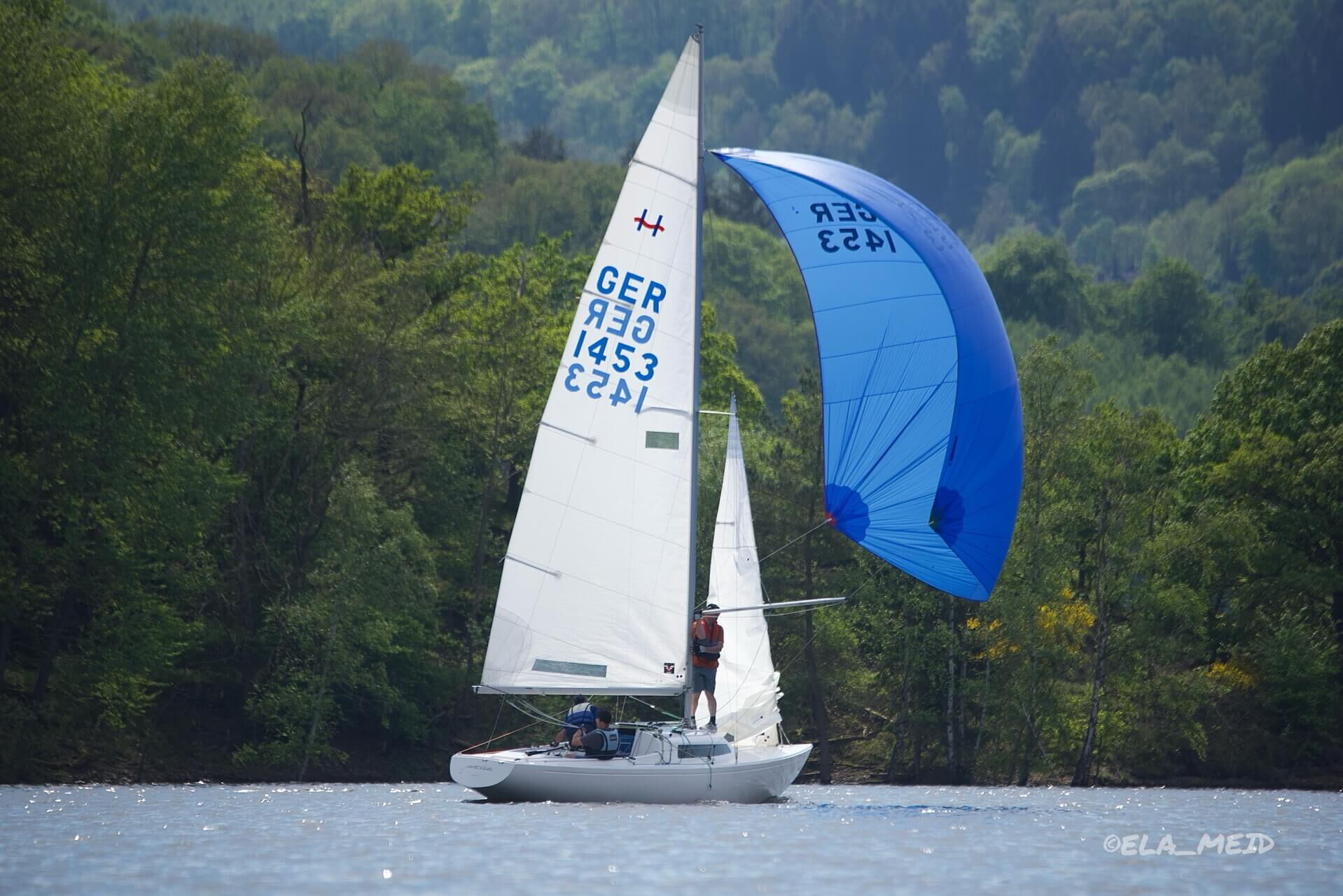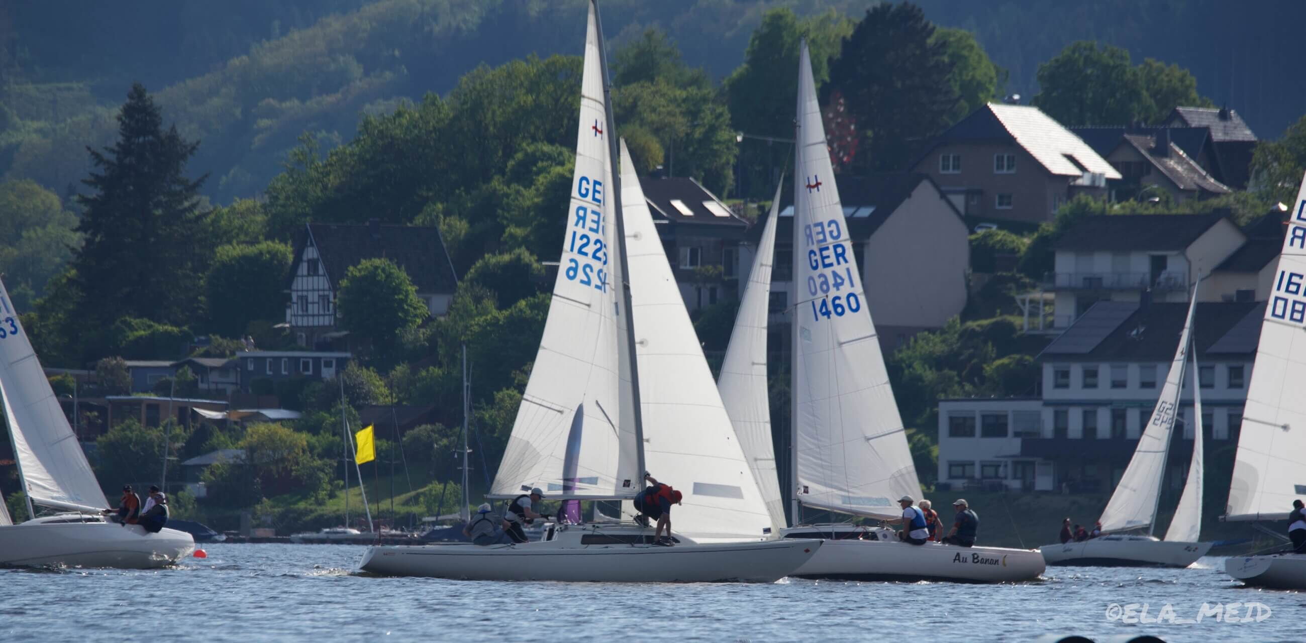 Am Sonntag drehte der Wind leider auf Südost, eine Richtung, bei der am Rursee der Berg „Kermeter“ im Wege steht und für unstete Windbedingungen sorgt, so dass keine Wettfahrt mehr zu Stande kam. Dies tat der guten Laune der Teilnehmer aber keinen Abbruch.