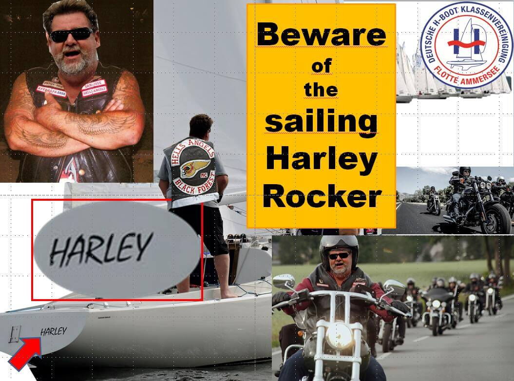Auch die gefürchtete Warnweste „Beware of…“ nach der berüchtigten EU –Richtlinie EU ISPLR 2014-007, nach der bestimmte Segler mit einer Warnweste segeln müssen, auf deren Rückseite der Warngrund vermerkt ist, warum man sich vor ihnen in Acht nehmen muss, wurde wieder unter tosenden Beifall vergeben. Dieses Jahr schon wieder an den erfolgreichen Neukapitän Helmut Settele der mit seinem neuen H-Boot namens HARLEY ja offensichtlich als Hell Angel Rocker die H- Boot Szene brutal aufmischen möchte.