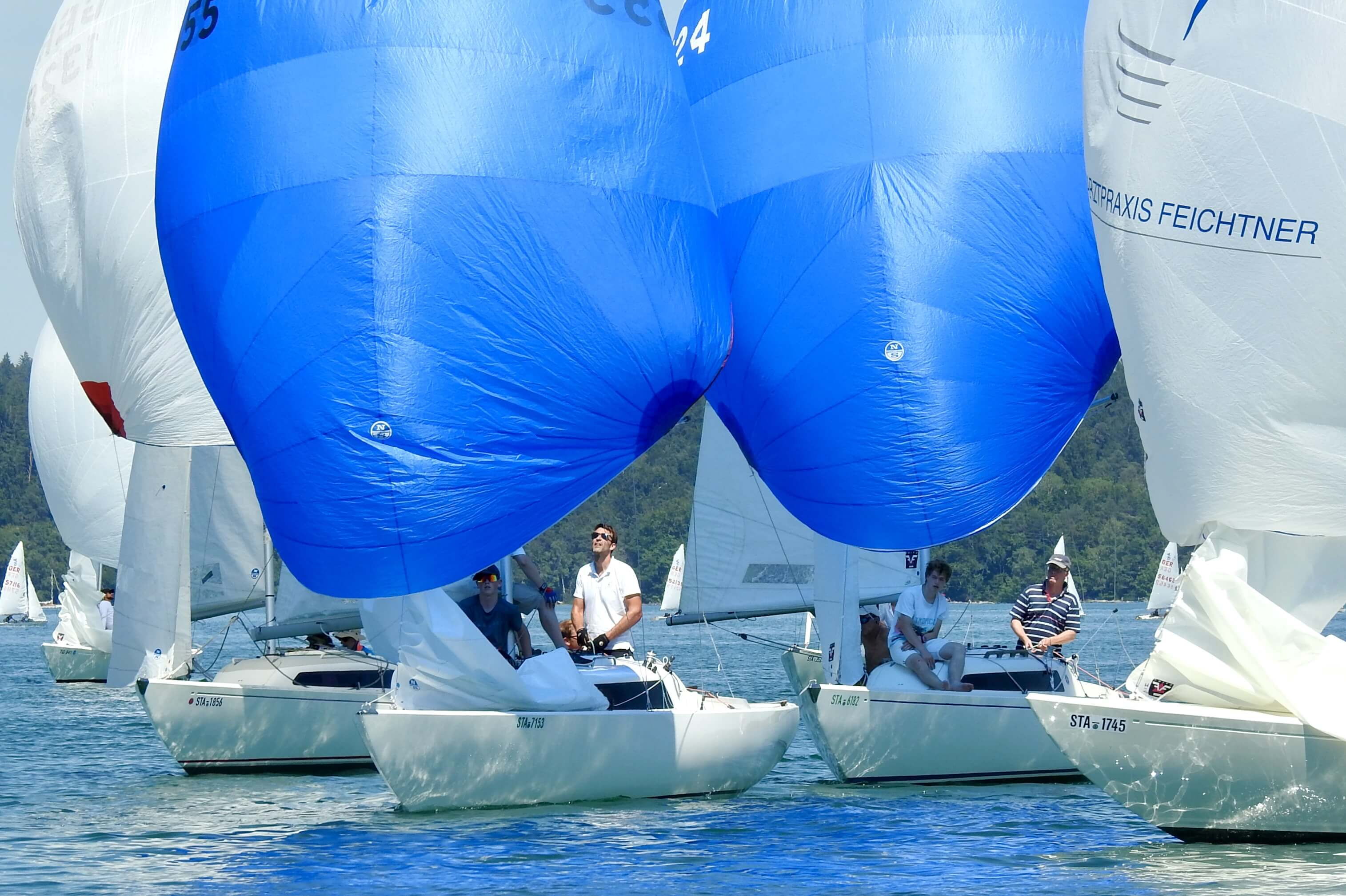 Es sollte der heißeste Tag der Woche werden, Temperaturen bis 36° waren vorhergesagt. Bereits beim traditionellen Weißwurstfrühstück der H-Boot-Klasse im DTYC waren insbesondere die Schattenplätze heiß begehrt. Dazu herrschte erbarmungslose Flaute. Dennoch fanden insgesamt 22 Boote mit ihren Mannschatten ihren Weg in den DTYC, mit der weitesten Anreise wohl Knut und Sabine Viehweger vom Rhein, Jörg Bleiholder aus Pforzheim und Gerhard Fuchs aus Überlingen. Der zeitgleich stattfindende Starthauspreis im BYC hielt wohl einige H-Bootsegler davon ab, zum Robert-Huber-Preis in den DTYC zu kommen und stattdessen bei einer internen Yardstick-Regatta mitzusegeln. In 2024 soll versucht werden, die beiden Termine zu entzerren und dadurch wieder mehr Teilnehmer zu einer Ranglistenregatta zu bekommen.