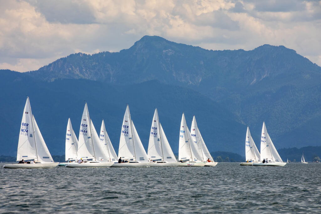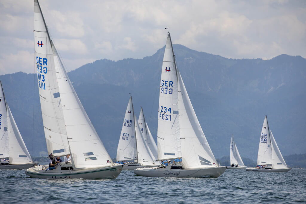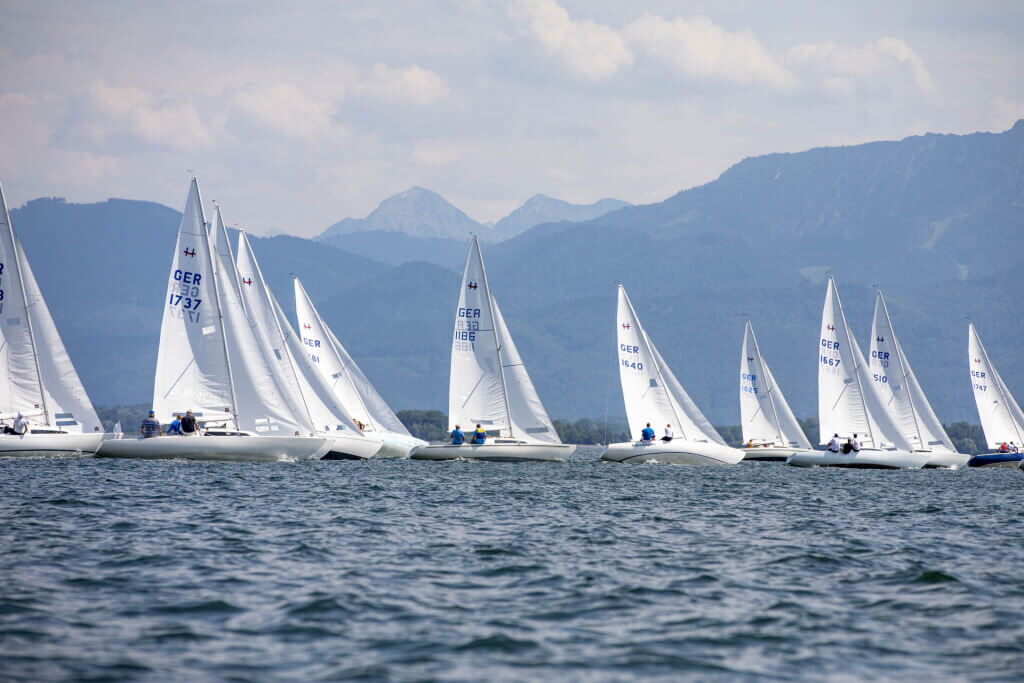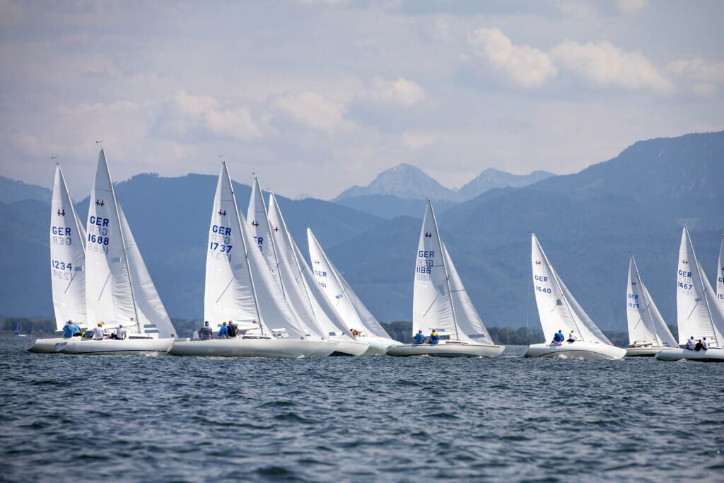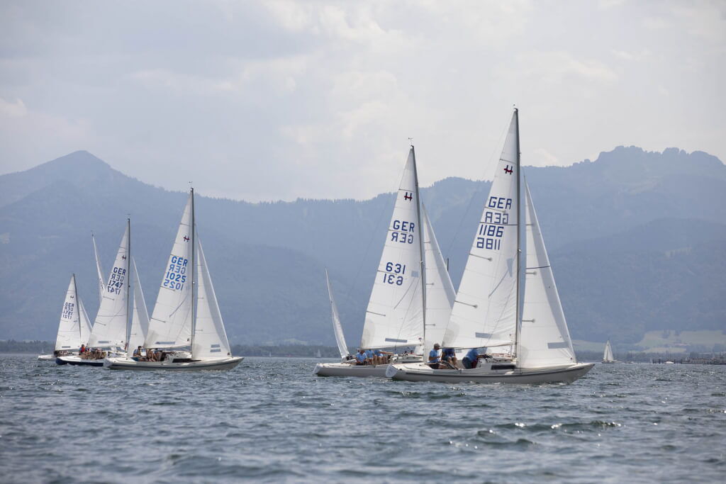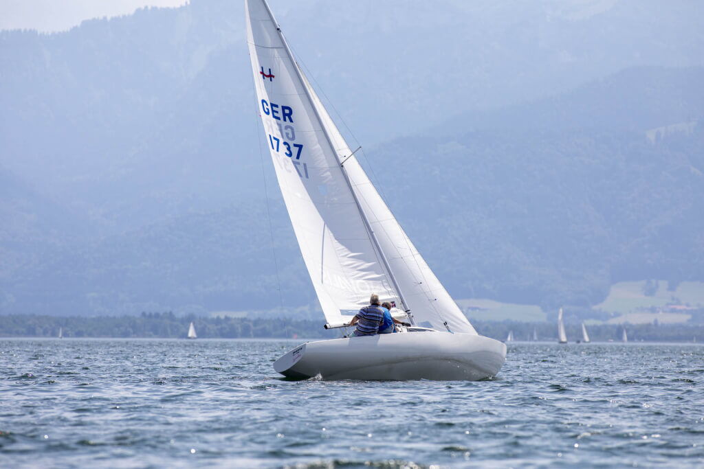 Am Samstag traten von den gemeldeten 23 H-Booten 20 an, zwei H-Boote waren auf der Autobahn liegen geblieben. Die Boote wurden von Wettfahrtleiter Frank Stracke und seinem Team zur ersten Wettfahrt auf den Kurs geschickt. Leider hatte sich der Wind, der seit Wochen über den Chiemsee blies, ziemlich abgeschwächt und kam zeitweise aus allen Richtungen so dass es wirklich nicht leicht zu segeln war. Das setzte sich dann bei der zweiten Wettfahrt am Samstag fort, da waren alle froh, dass zwei Wettfahrten durchgezogen waren und der erste Wettkampftag zu Ende war.
