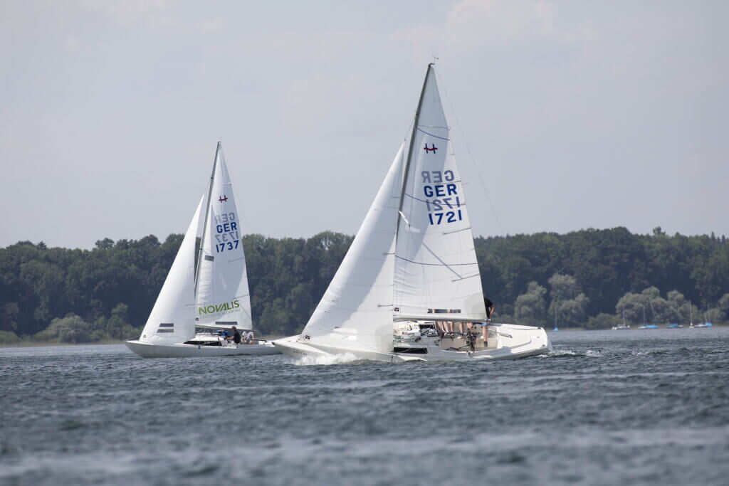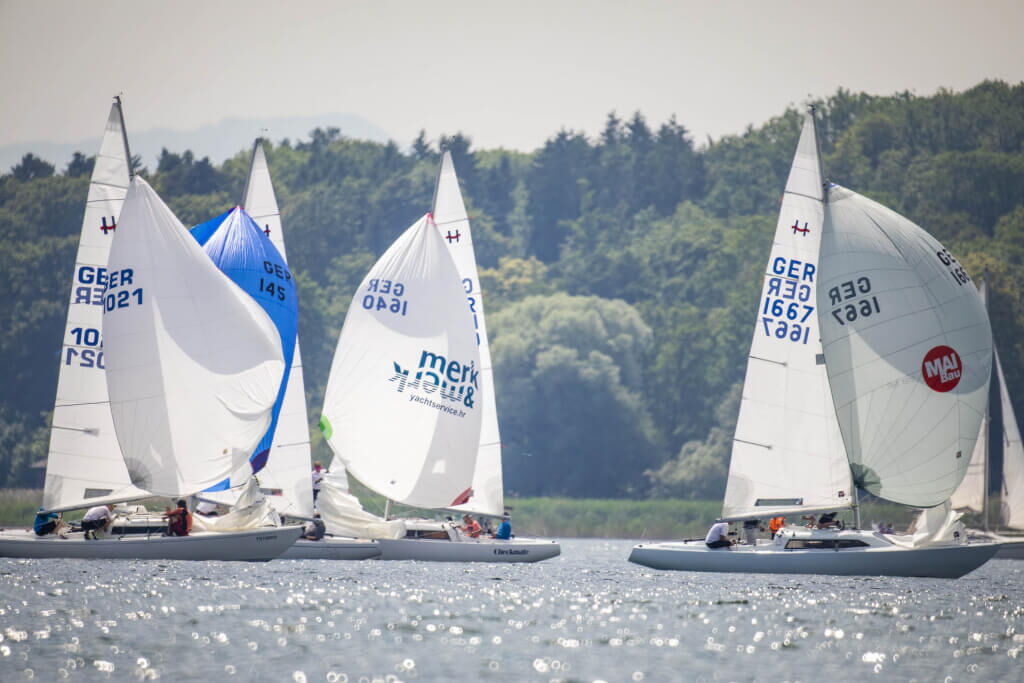 Doch wie immer setzten sich auch bei diesen widrigen Windverhältnissen die stärksten Segelmannschaften durch. Knut Viehweger (YC Löricke-Düsseldorf) mit den Vorschotleuten Peter Zauner/Timo von Schorlemer (YC Seeshaupt-Starnberger See) zeigte sich, wie schon vorher, bei der Harrasser Kanne des Chiemsee YC, überlegen und siegte zweimal. Stark präsentierte sich auch Stefan Freitag, der für den verhinderten Philipp Ullherr das Steuer übernahm, mit dem Team Peggy Freitag und Bernd von Hoermann vom Chiemsee YC. Nach den gesegelten 4. und 2. Plätzen, lagen sie auf dem zweiten Platz im Zwischenergebnis. Dritte waren vorerst Helmut Settele/Daniel Settele/Matthias Settele vom Herrschinger SC-Ammersee. Einen sehr guten vierten Platz im Zwischenergebnis ersegelten sich auch Hans Haberstock/Kai Mardeis/Sarah Holzner vom Chiemsee YC. Auf Zwischenplatz fünf platzierte sich der beste Simsseer, Dirk Stadler mit den Vorschotleuten Christian Wöhrer/Loiba Rimmele vom SR Simssee.