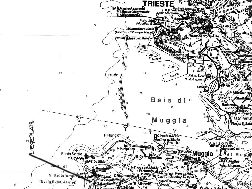 Mein Liegeplatz befindet sich in Triest, genauer gesagt im letzten Fischerhafen im Golfo di Trieste vor der heutigen Grenze zwischen Italien und Slowenien, in San Bartolomeo. In diesem Hafen bin ich durch glückliche Umstände an einen Liegeplatz gekommen, der allerdings die Einschränkung bezüglich der Breite hat. Meine Verbindung zu Triest rührt daher, dass meine Großmutter dort gelebt hat und unsere Familie heute dort ein Haus hat.