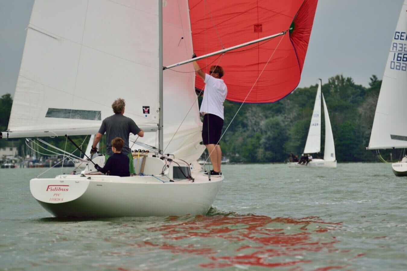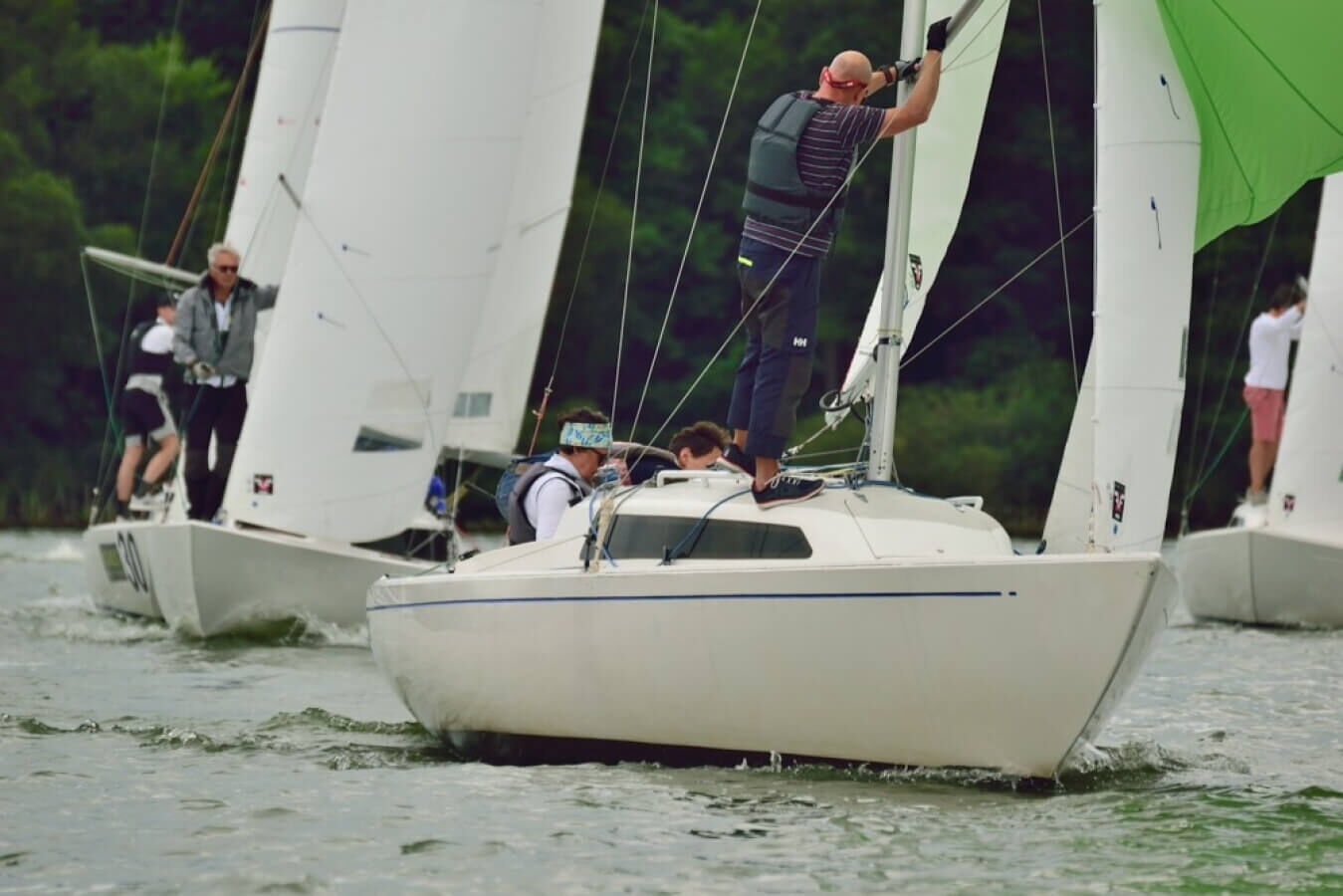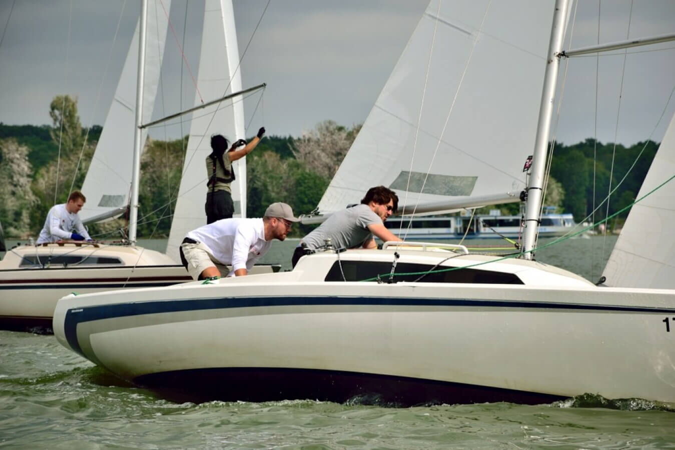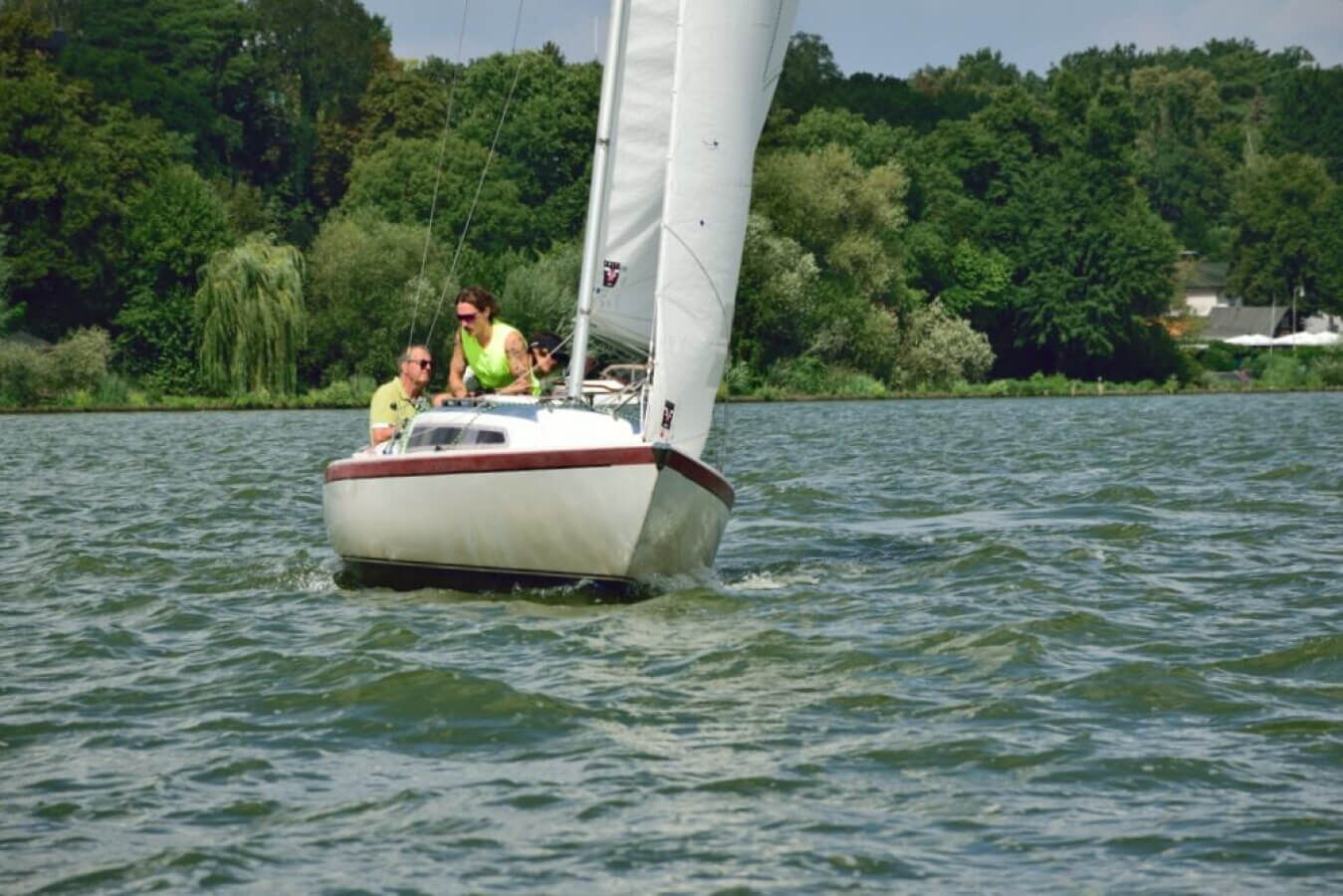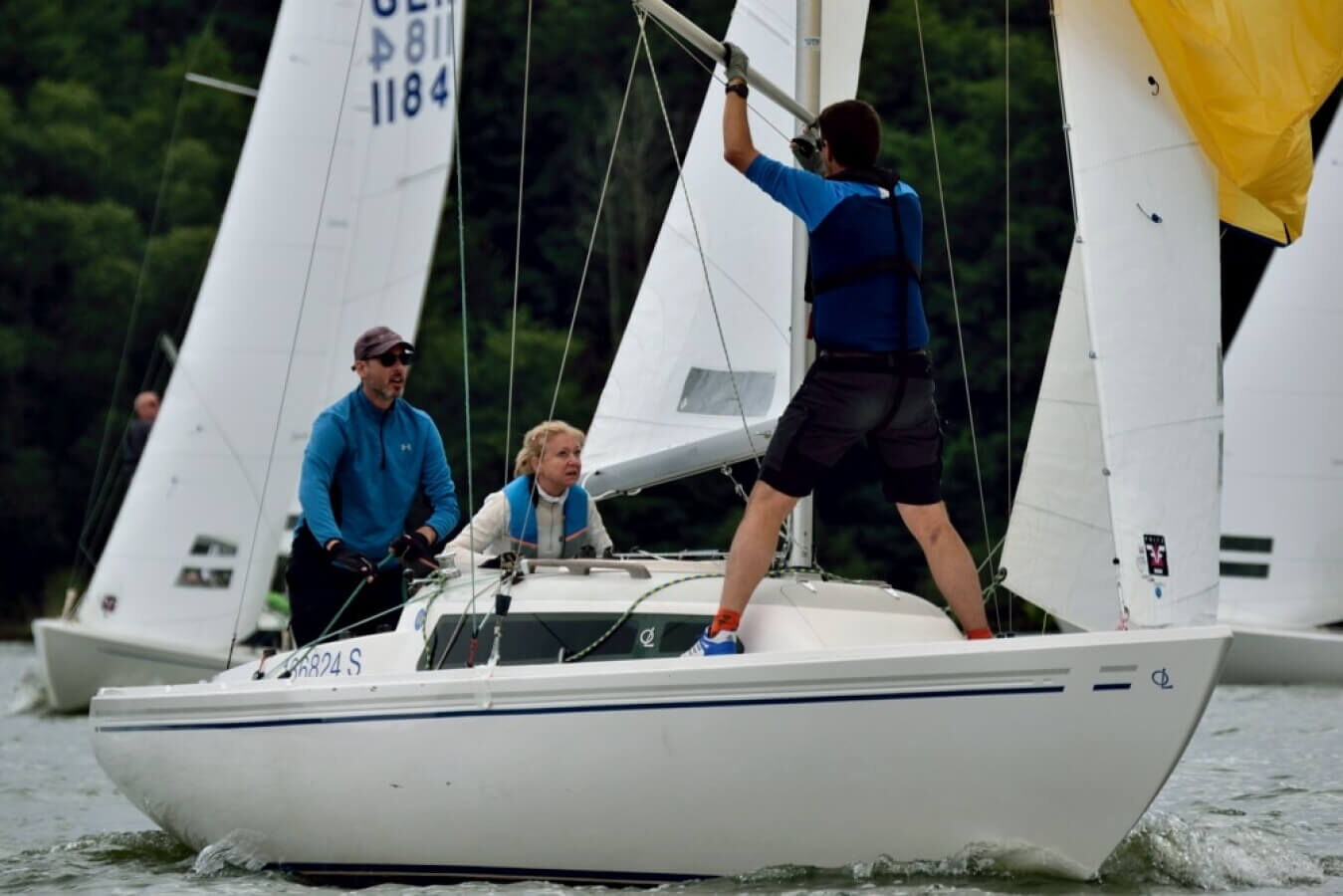 Am Samstag fanden insgesamt vier Wettfahrten bei gemütlichen 2 bis 3,5 Windstärken statt. Der Wind wehte aus Südwest mit einer doch recht bevorteilten rechten Seite, die wir aber im ersten Rennen nicht nutzten. Gewinner des ersten Laufes war Thomas Kausen mit Thomas Drtina und Theresa Böttger gefolgt von Holger und Jan Köhne mit Sven Ulrich, die dann auch das zweite Rennen gewannen.