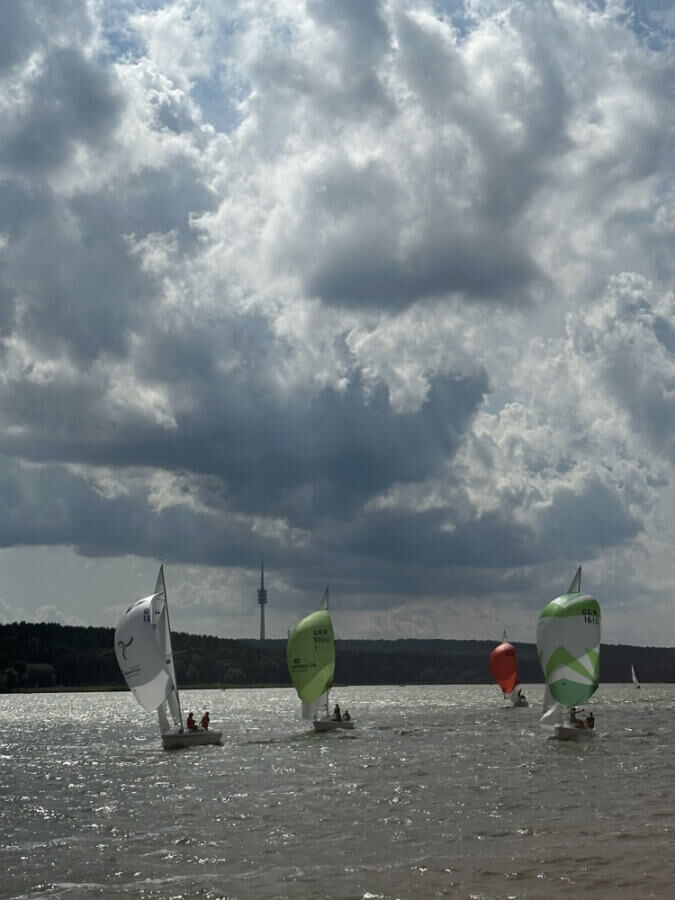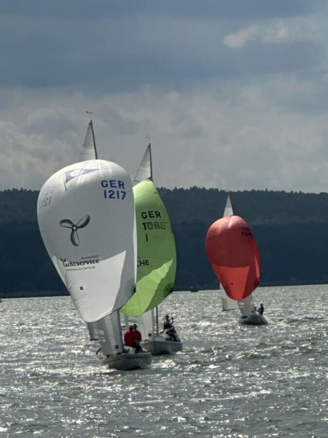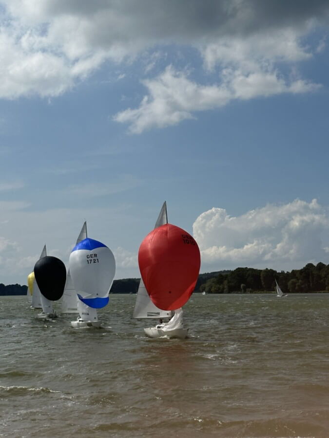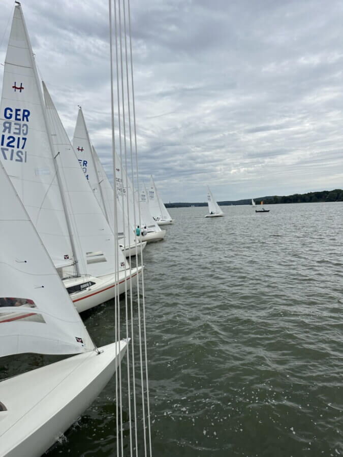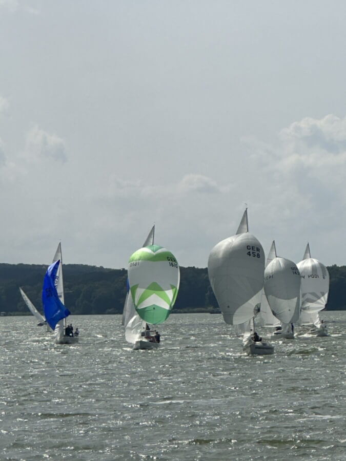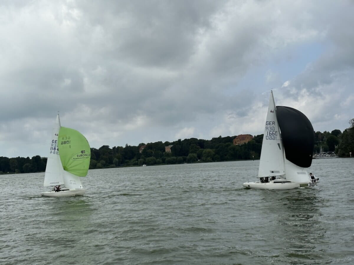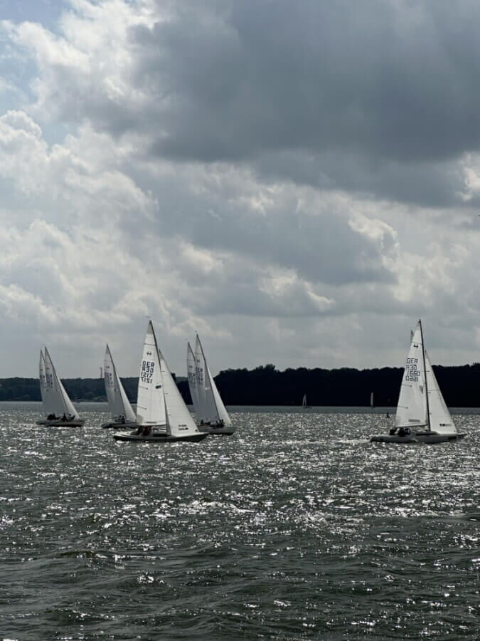 Am letzten August-Wochenende fand in Berlin auf dem legendären Wannsee die Regatta um die Potsdamer Kanne beim PYC (Potsdamer Yacht Club) statt, was dieses Jahr zugleich auch die Ostdeutsche Meisterschaft war. Mit 15 Booten war das Feld recht überschaubar, jedoch qualitativ gut besetzt, weil einige Teams wie auch wir (GER1456) Die Regatta als Training für die kommende IDM nutzten.