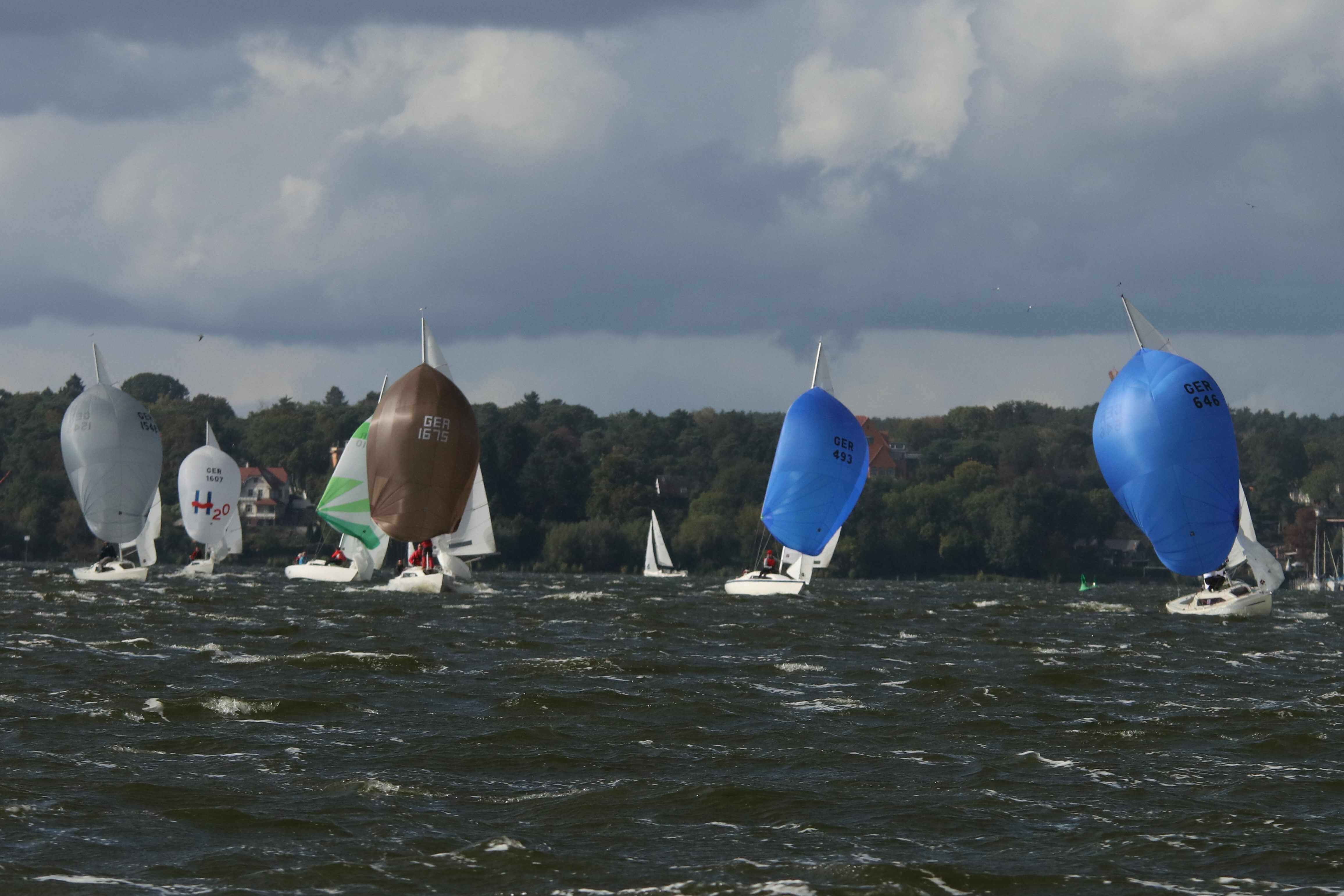 Die erste Wettfahrt zum diesjährigen Berliner Fawellpreis startete am 28. September gegen 11 Uhr bei bestem Segelwetter. Durch einen kräftigen Wind von 4-6 Beaufort und strahlendem Sonnenschein waren die Crews der teilnehmenden 18 Boote motiviert ihr Bestes zu geben. Die strikte Startkontrolle der Jury gewährleistete faire Wettkämpfe. Am ersten Tag wurden drei Wettfahrten gesegelt. Der gleichmäßige Wind machte dass taktisches Geschick und Erfahrung zu kritischen Faktoren. Doch wurde durch den starken Wind Ausdauer ebenfalls essenziell.