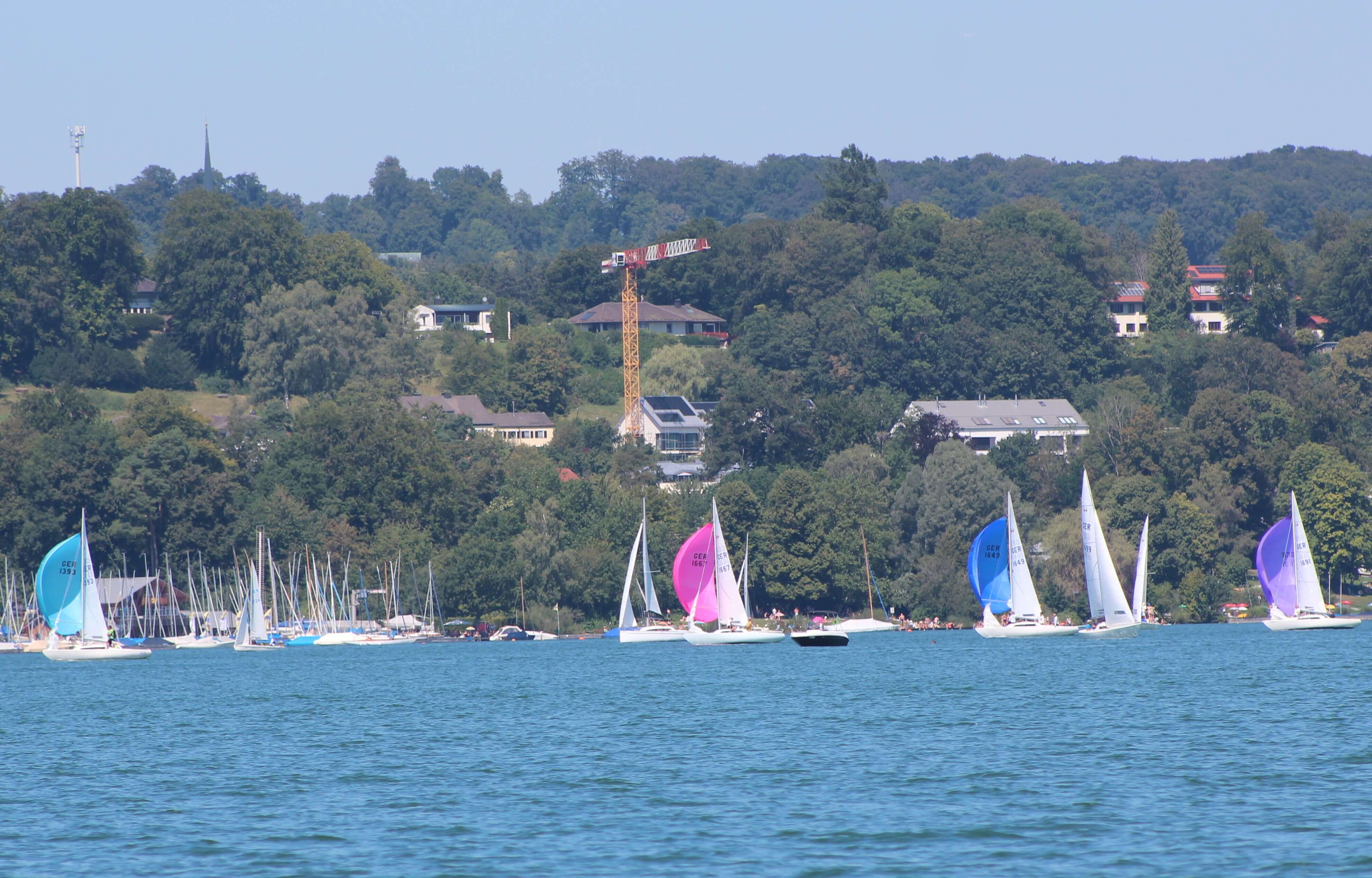 Hochsommerliches Flautenwochenende am Starnberger See. Am Ende gewann eine 2-Mann-Crew.