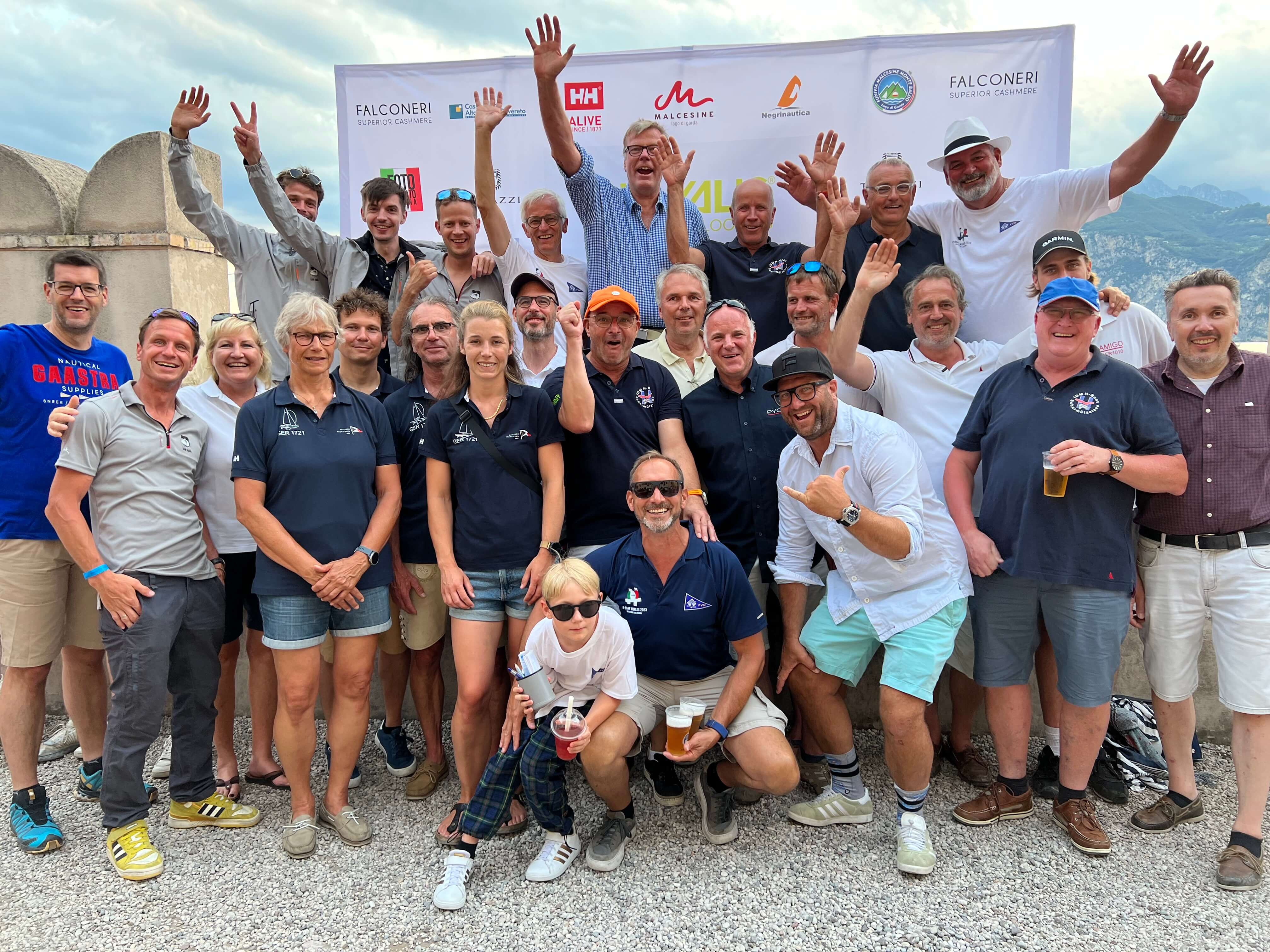 Anschließend führte Sven einige Filme vom H-Boot-Segeln vor, die Lust auf die neue Saison machten. Hierzu gehörten der H-Boot-Image-Film, ein Fernsehbericht des RBB über die IDM am Müggelsee und mehrere Filme, die Svens Mitsegler Kyaw Soe mit einer 360° Kamera der Klassenvereinigung aufgenommen und produziert hat. Diese Kamera kann man für sein Boot ausleihen (es gibt auch ein Erklärvideo dazu). Die gezeigten Filme findet man größtenteils auf YouTube. Ein Gruppenfoto vom Gardasee zeigte, dass die WM dort ein schönes Ereignis war. Man sieht sich hoffentlich bald wieder auf dem Wasser.